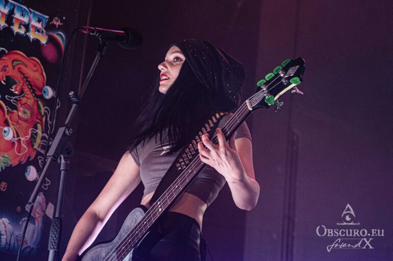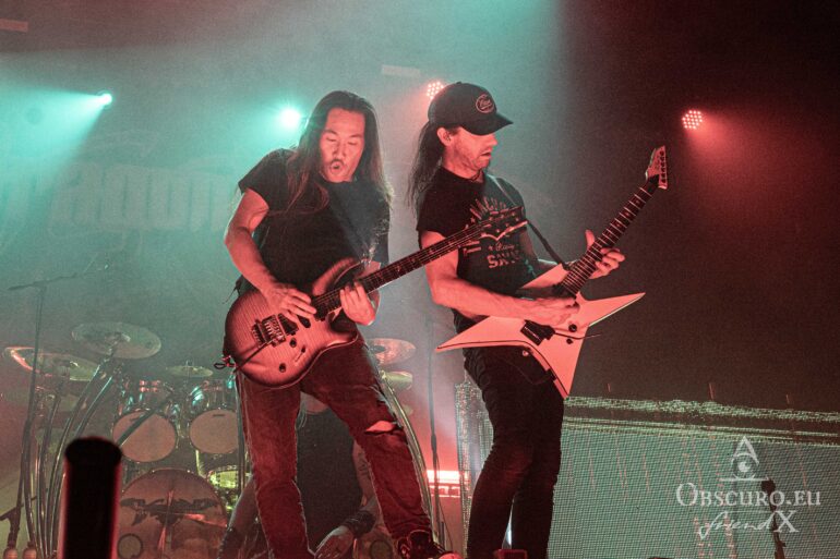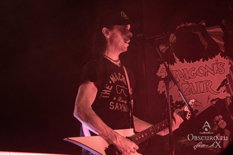 When you entered the venue, from the look of the stage set-up, it was quite clear, that the second band tonight will be London based DragonForce. DragonForce come along with the two guitarists Herman Li and Sam Totman, Marc Hudson on vocals, drummer Gee Anzalone and Alicia Vigil on bass. She was the last member to join the band. Keep an eye on her own band Vigil Of War. On this tour DragonForce are completed by an additional third guitarist as guest musician.