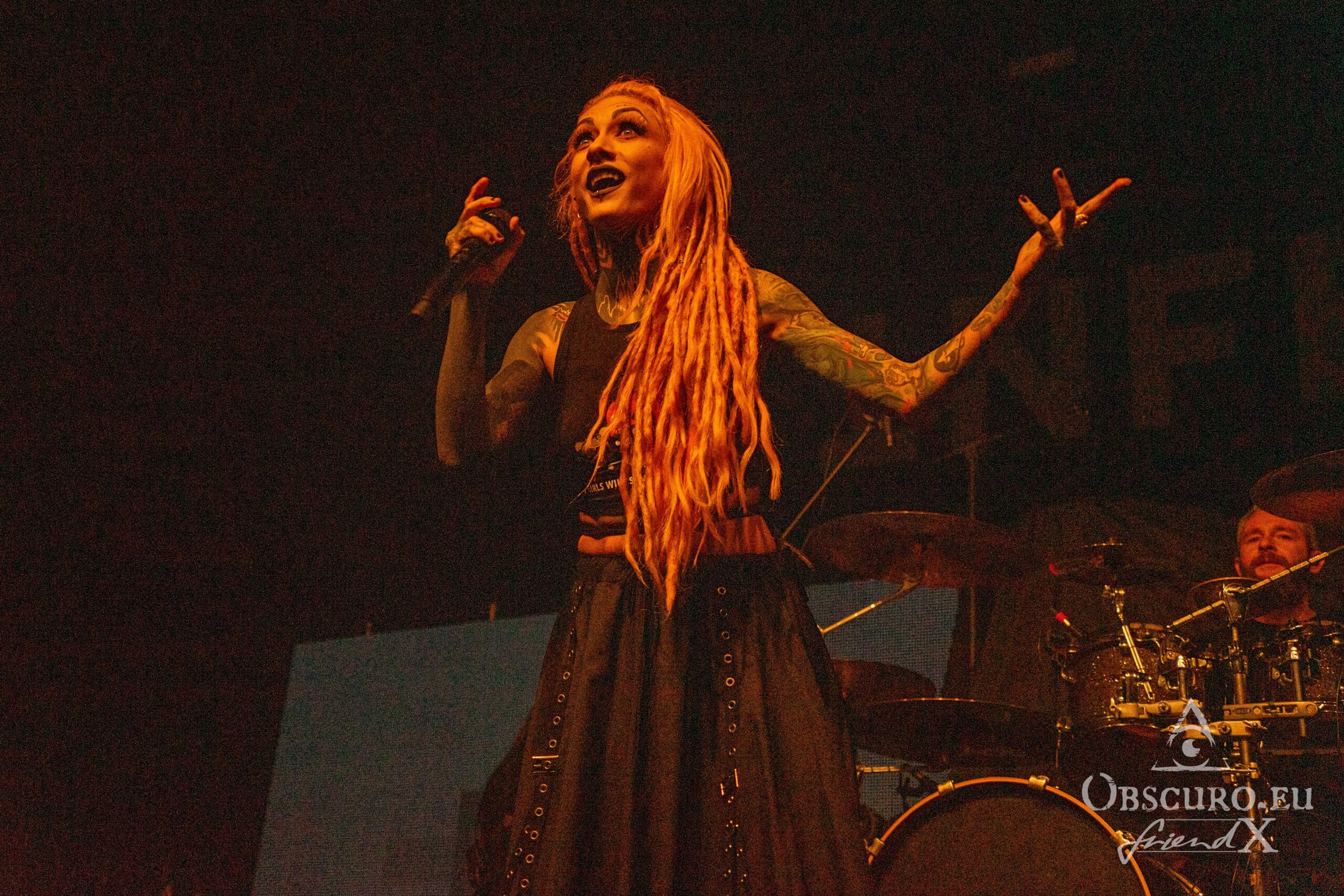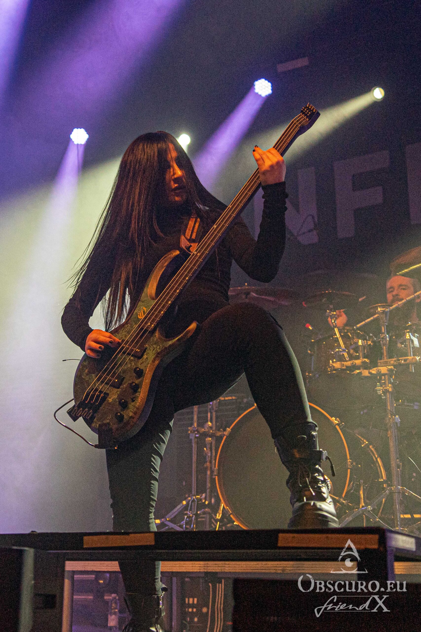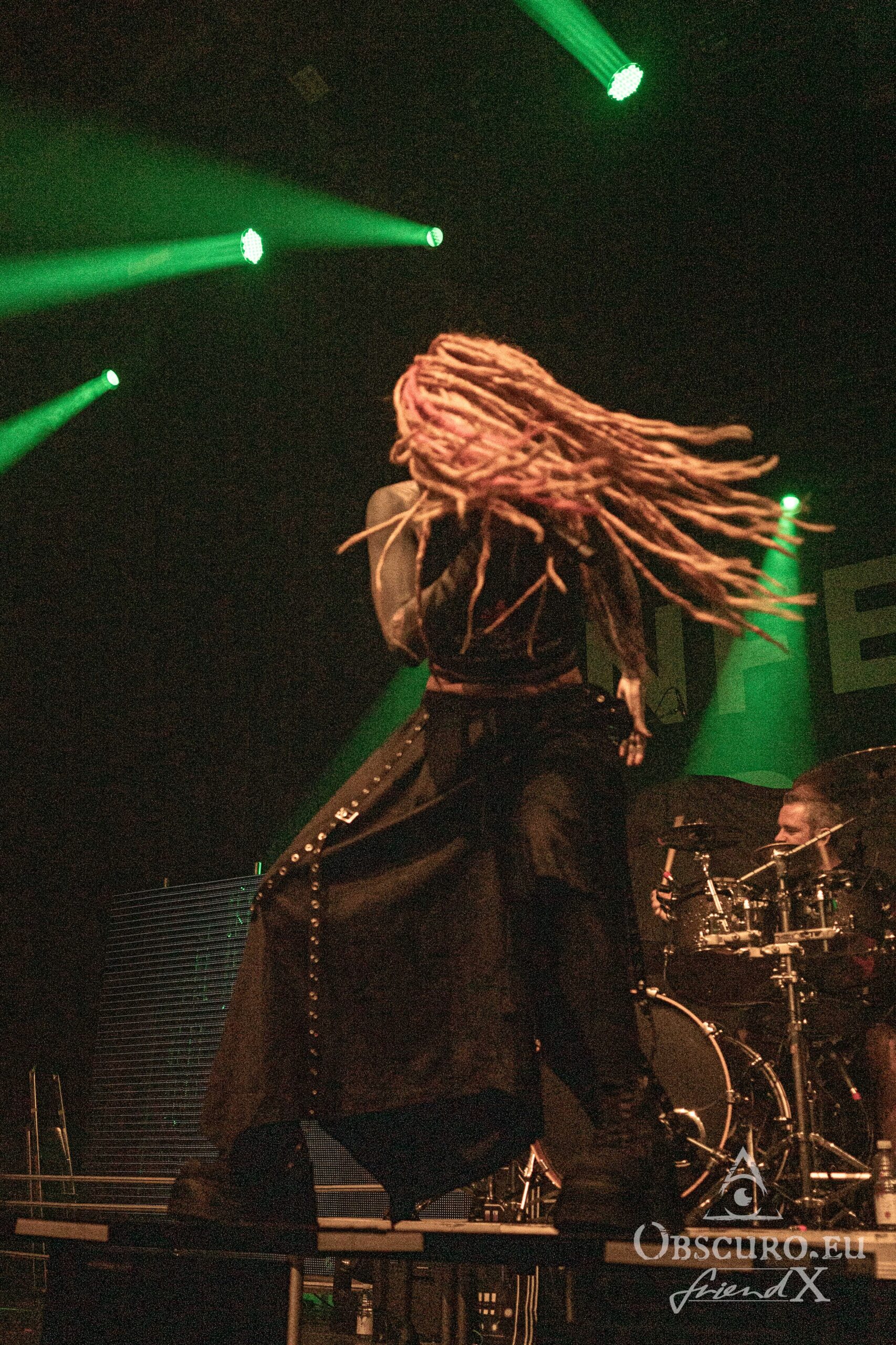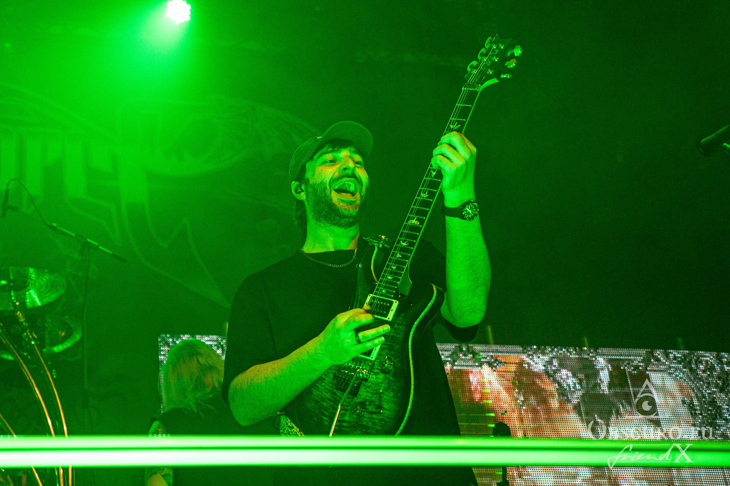 Vidick doesn’t stand back a lot. I wonder, how he manages to dance around like crazy with his dreadlocks and still hits the notes on his guitar. Alice on bass is much calmer and it is pure eye pleasure watching her fingers rushing over the fretboard. The real backbone is Eugene on drums with his precise drumming style, he steers the band from the back while the three front musicians command the audience. Sadly, Infected Rain’s set is “just” barely 45 minutes long. I can only recommend looking out for their next headline tour and a full set!