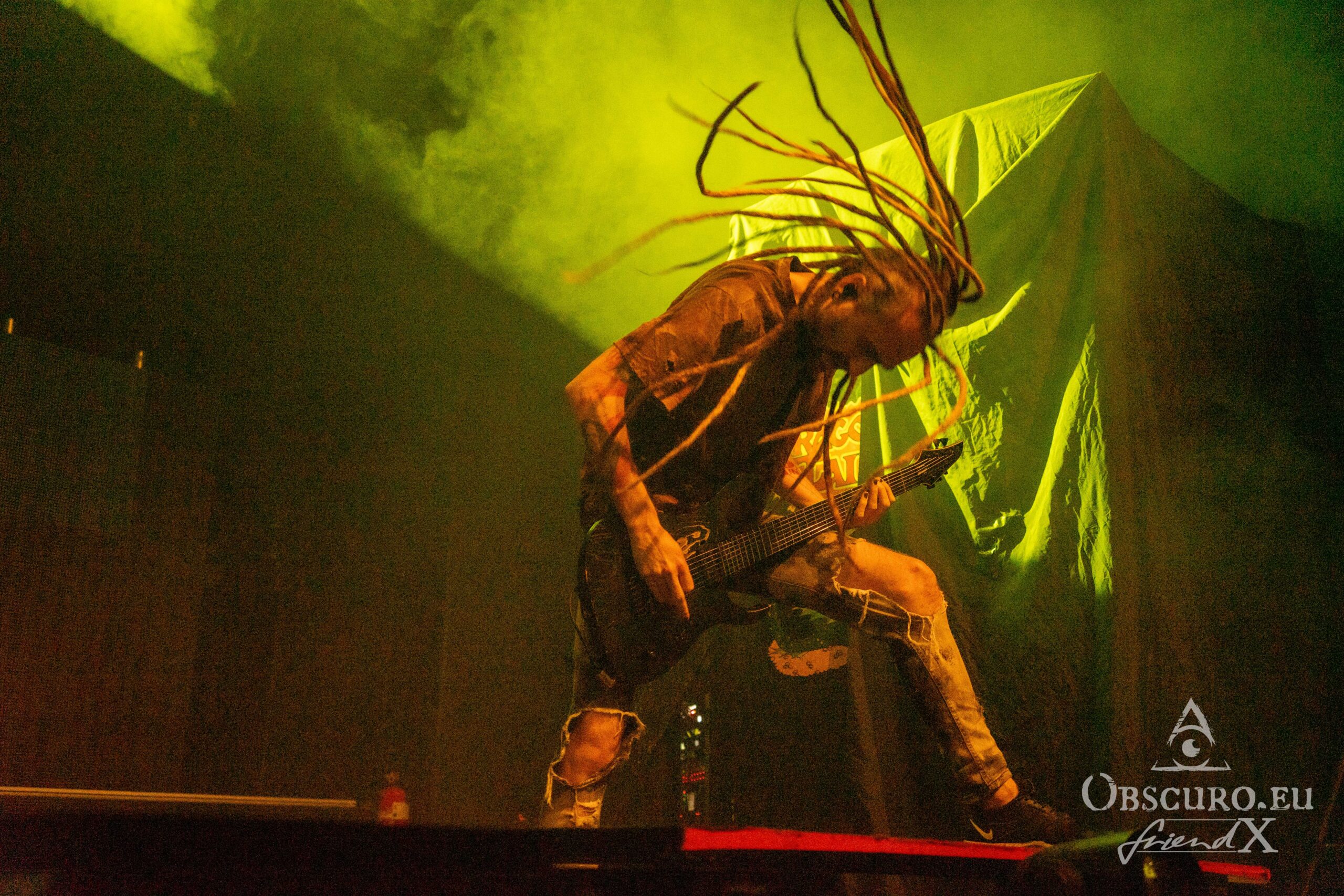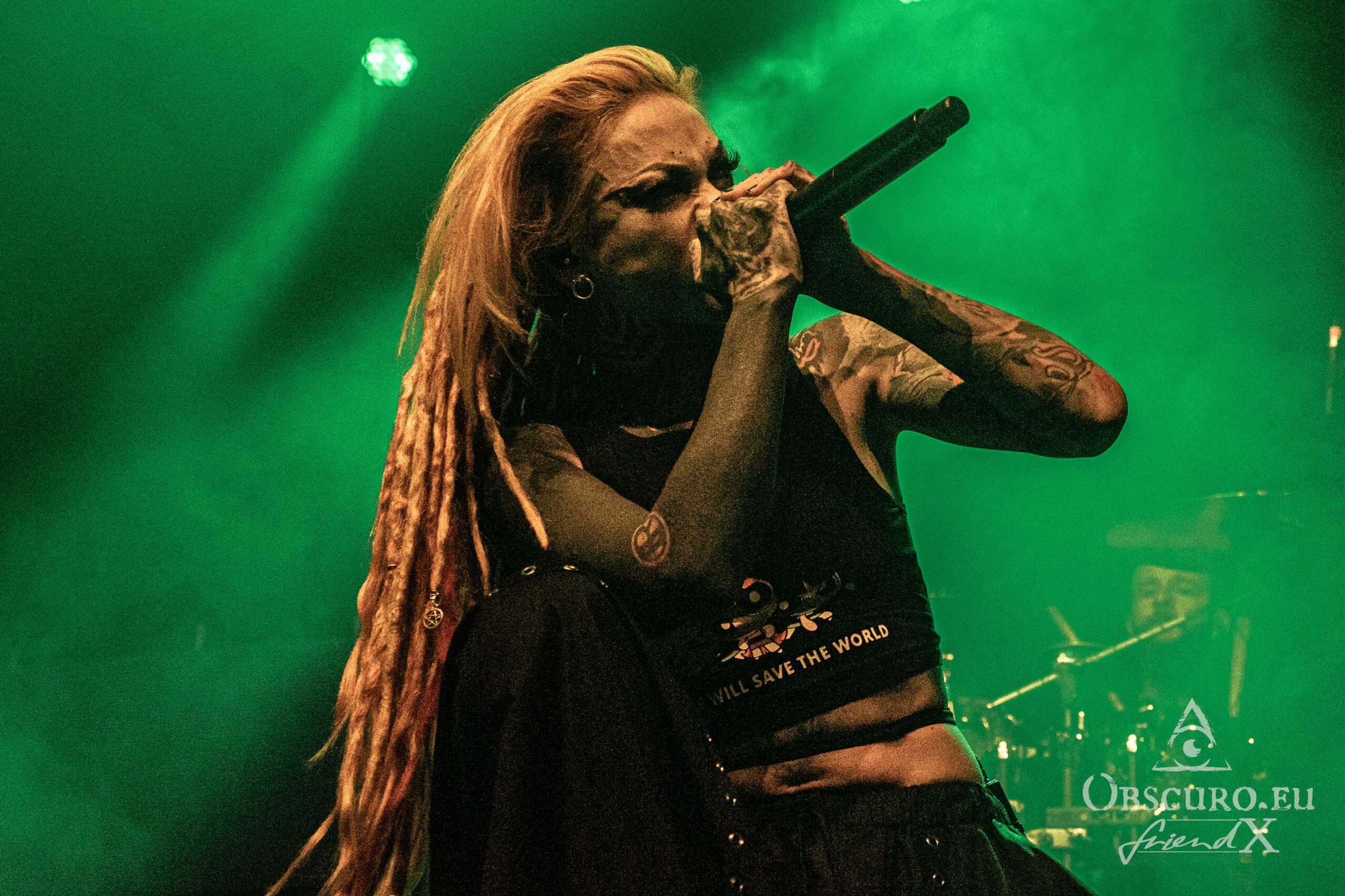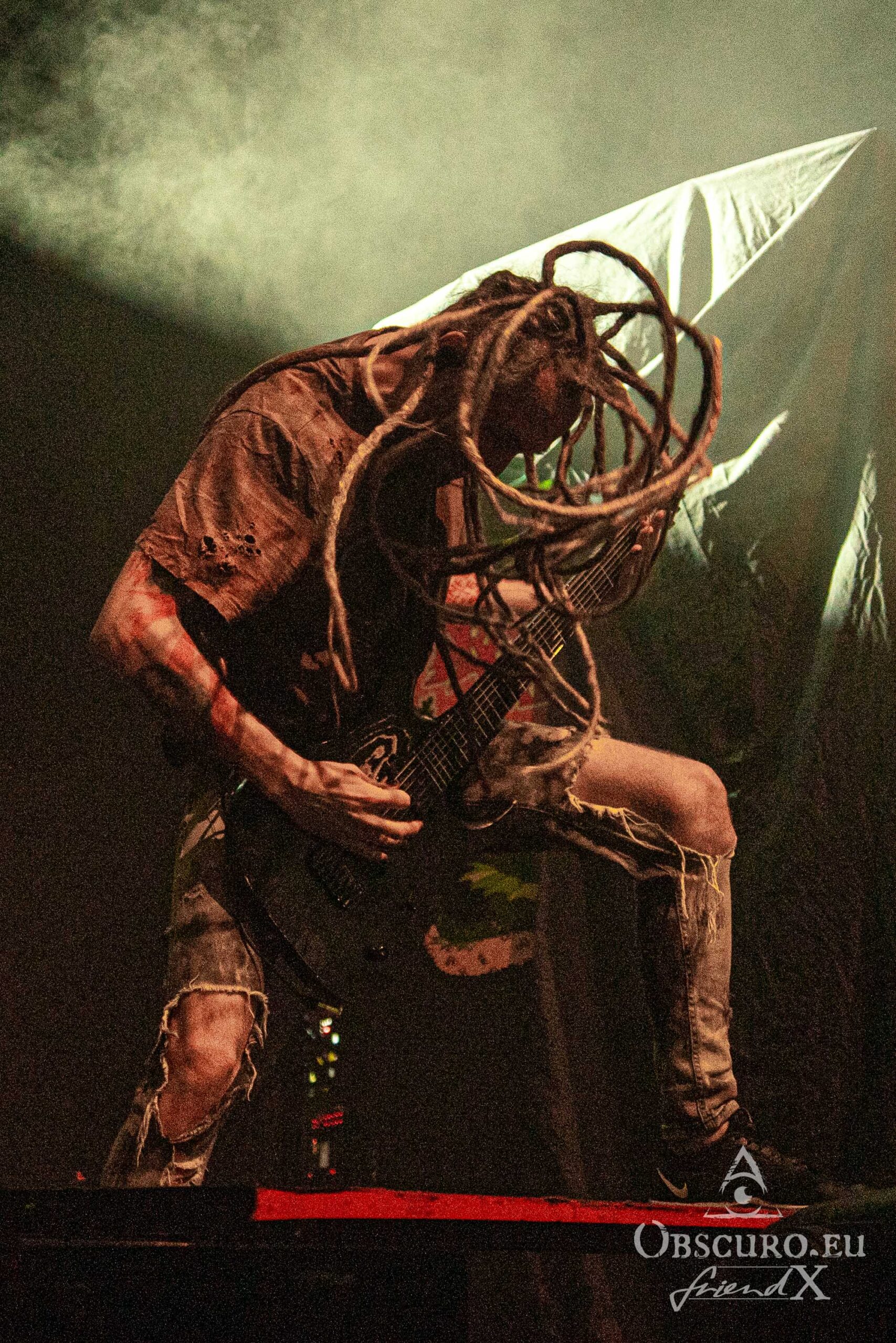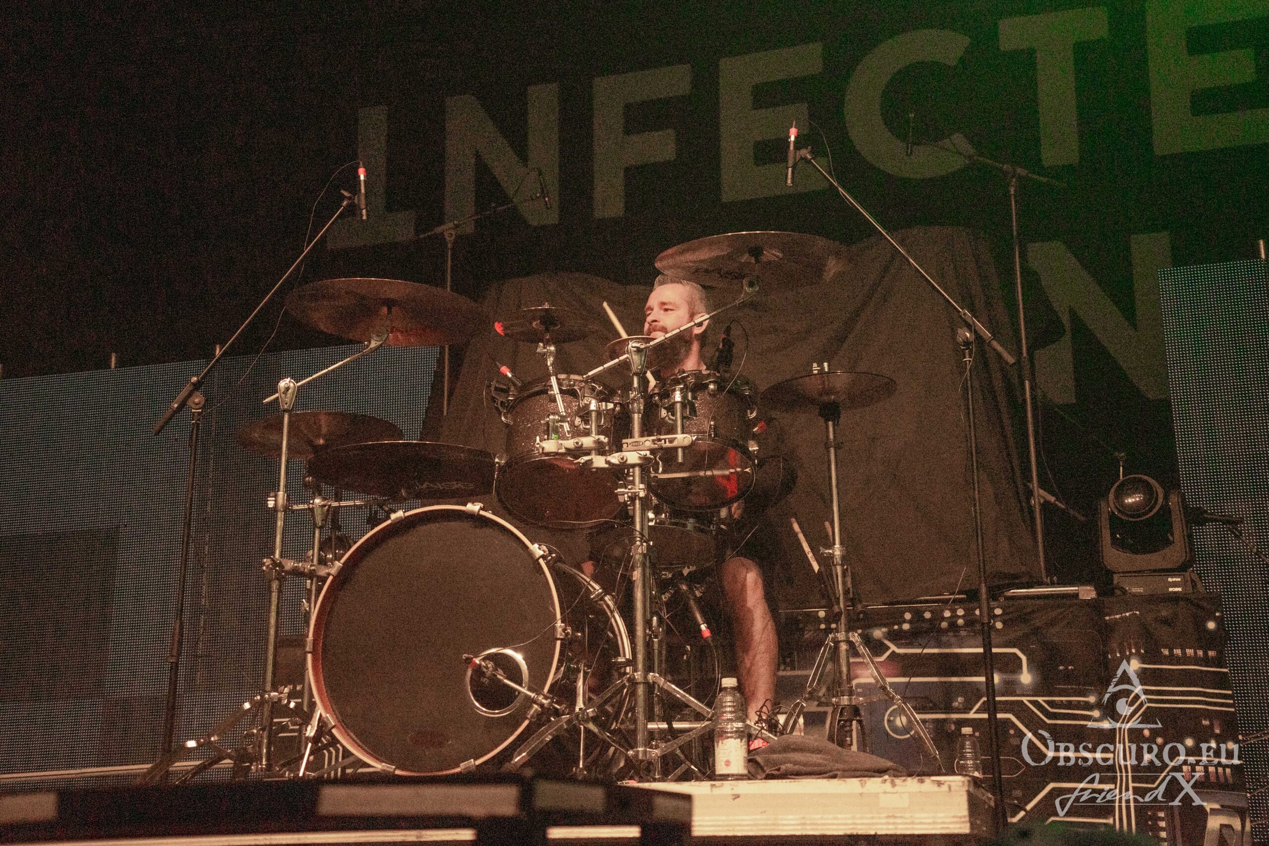 Vidick doesn’t stand back a lot. I wonder, how he manages to dance around like crazy with his dreadlocks and still hits the notes on his guitar. Alice on bass is much calmer and it is pure eye pleasure watching her fingers rushing over the fretboard. The real backbone is Eugene on drums with his precise drumming style, he steers the band from the back while the three front musicians command the audience. Sadly, Infected Rain’s set is “just” barely 45 minutes long. I can only recommend looking out for their next headline tour and a full set!