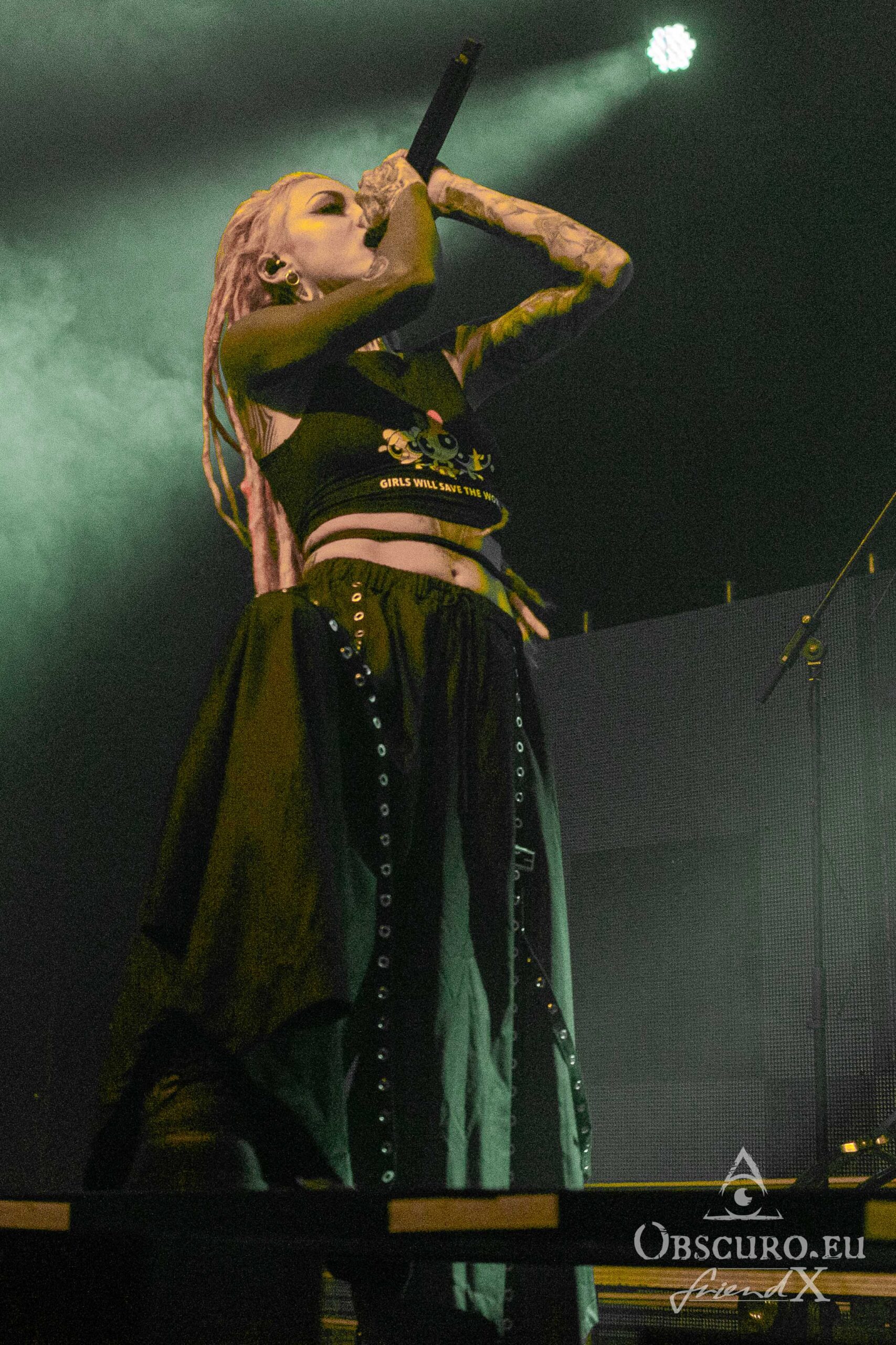 Needless to say, Amaranthe present a mix of old and well-known hits and songs of “The Catalyst”, their 2024 release. These songs rush through the time and out of a sudden the clock strikes for the last round, the last song. Of course, it is a sing-along of “This Song” together with the audience of the sold-out show.