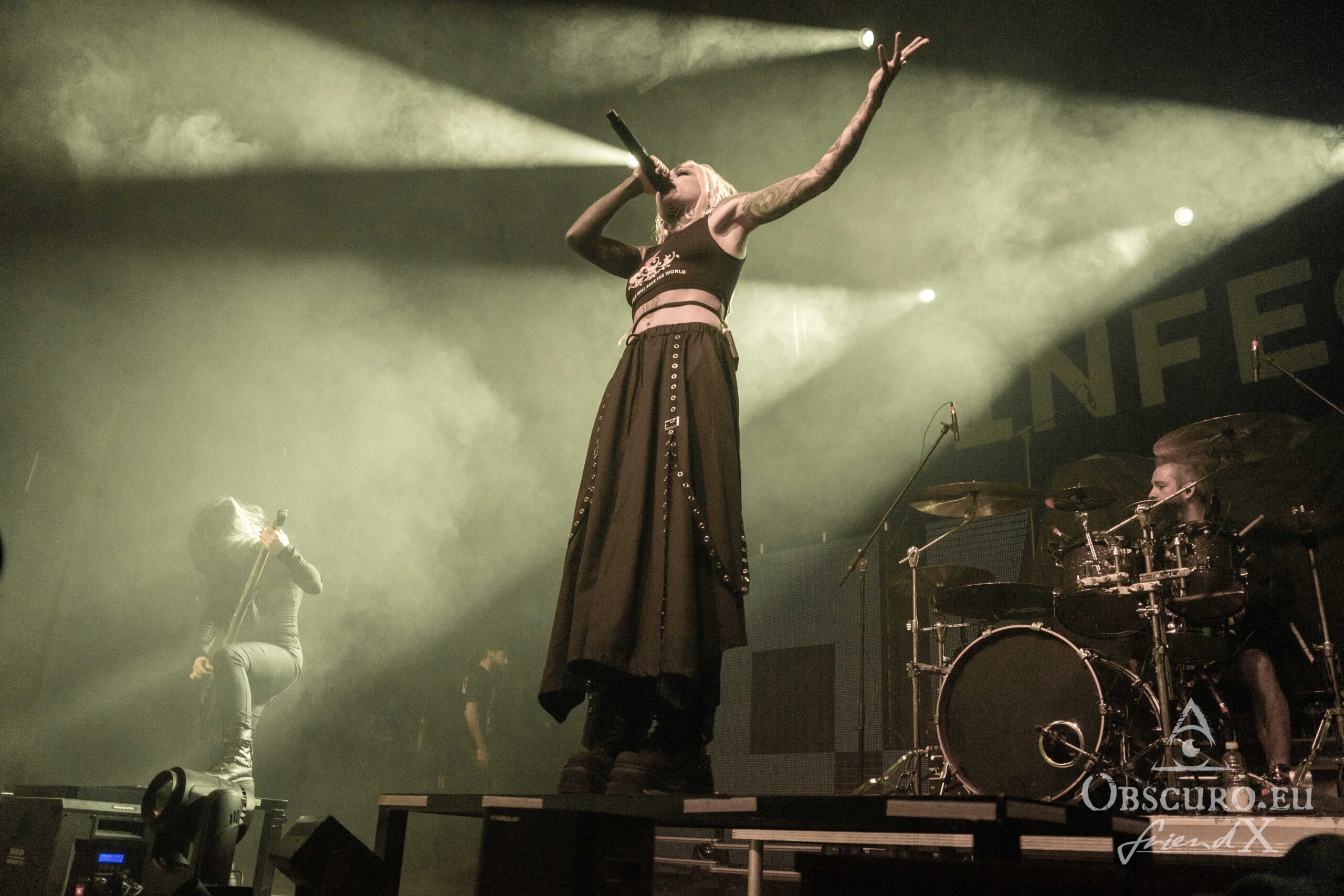 Infected Rain is maybe best described as Progressive Groove Metal, but in fact the band doesn’t fit in one genre only anymore. It is amazing how the individual skills of the musicians developed over the years. Of course, the vocalist, better known as Lena Scissorhands stands out as the front woman. She switches between harsh growls and clean vocals with ease as if it is nothing.