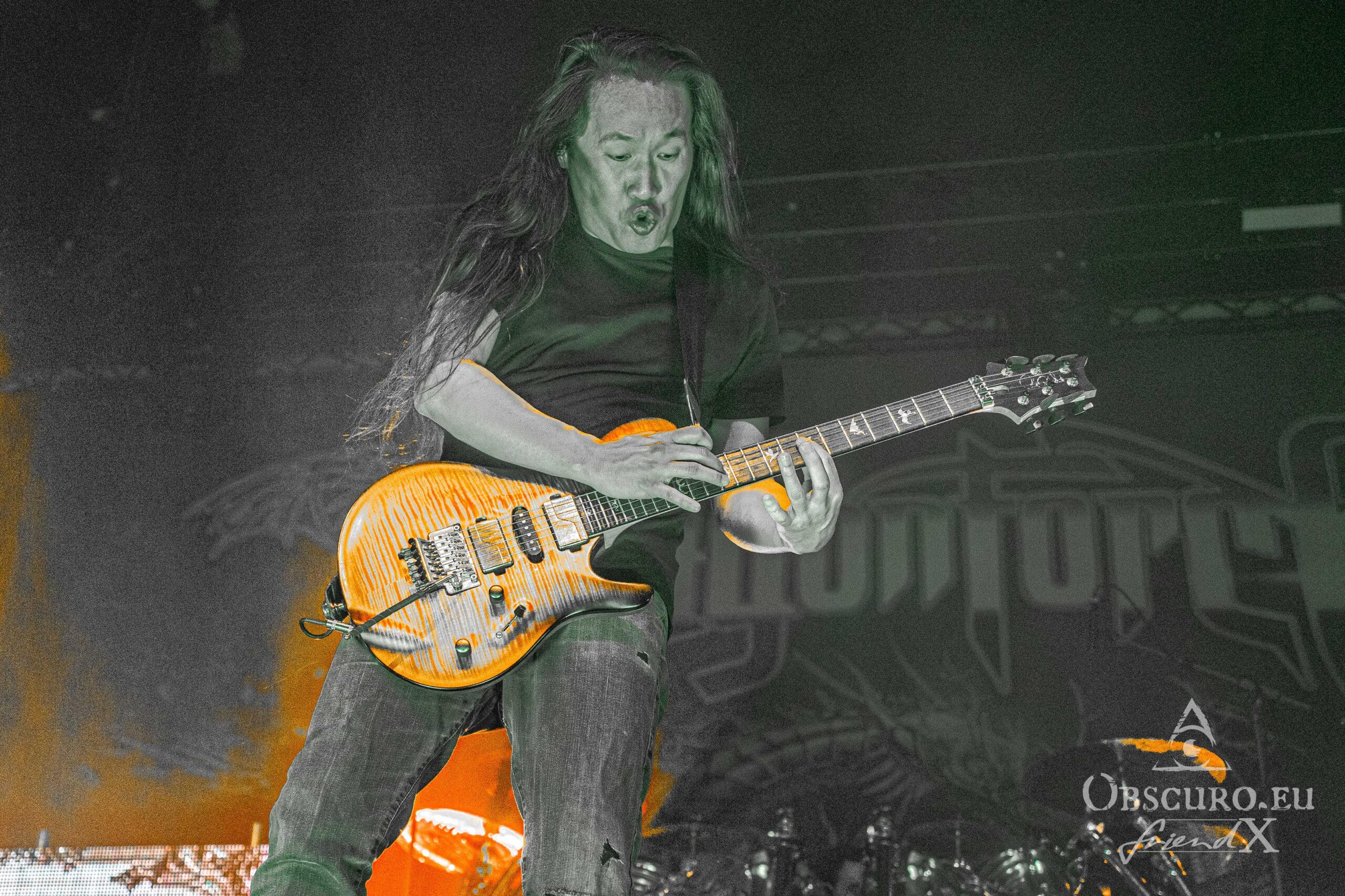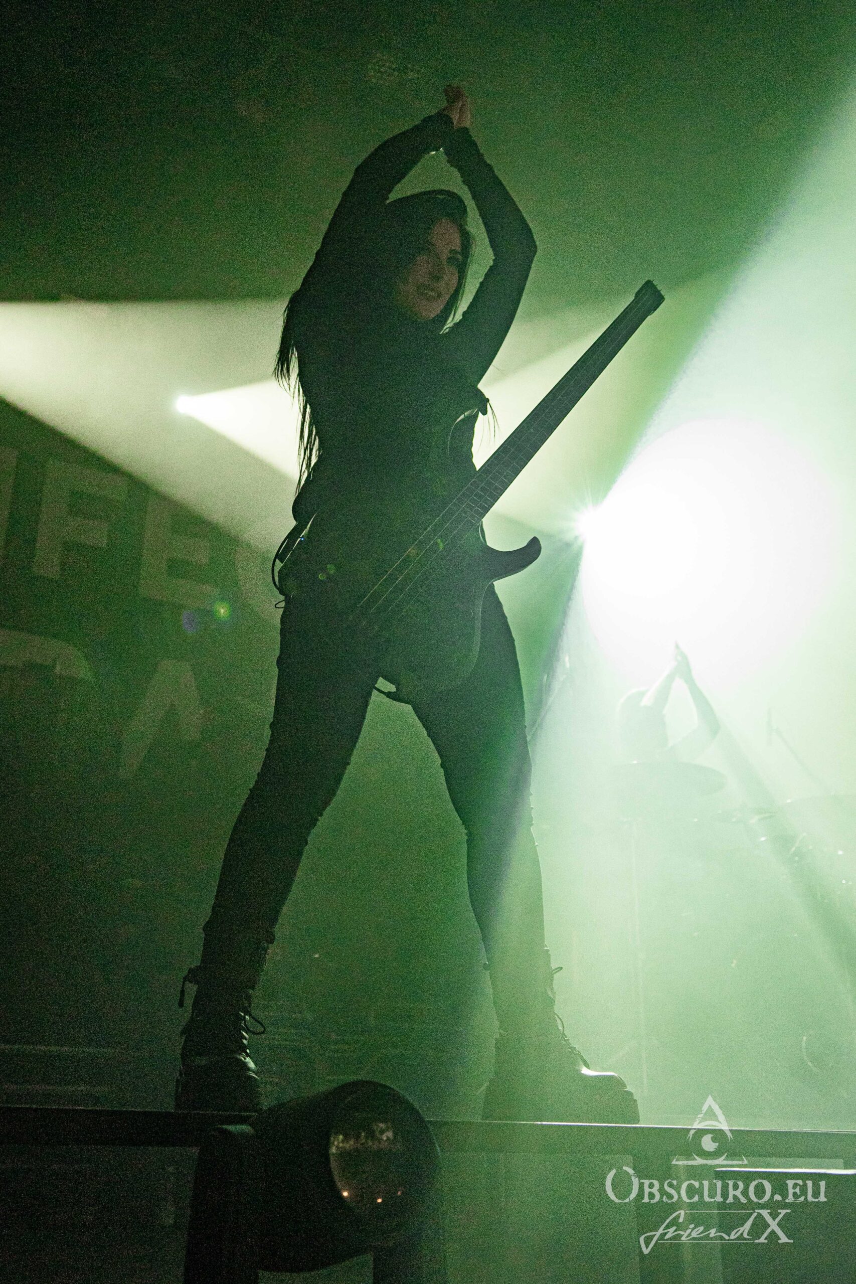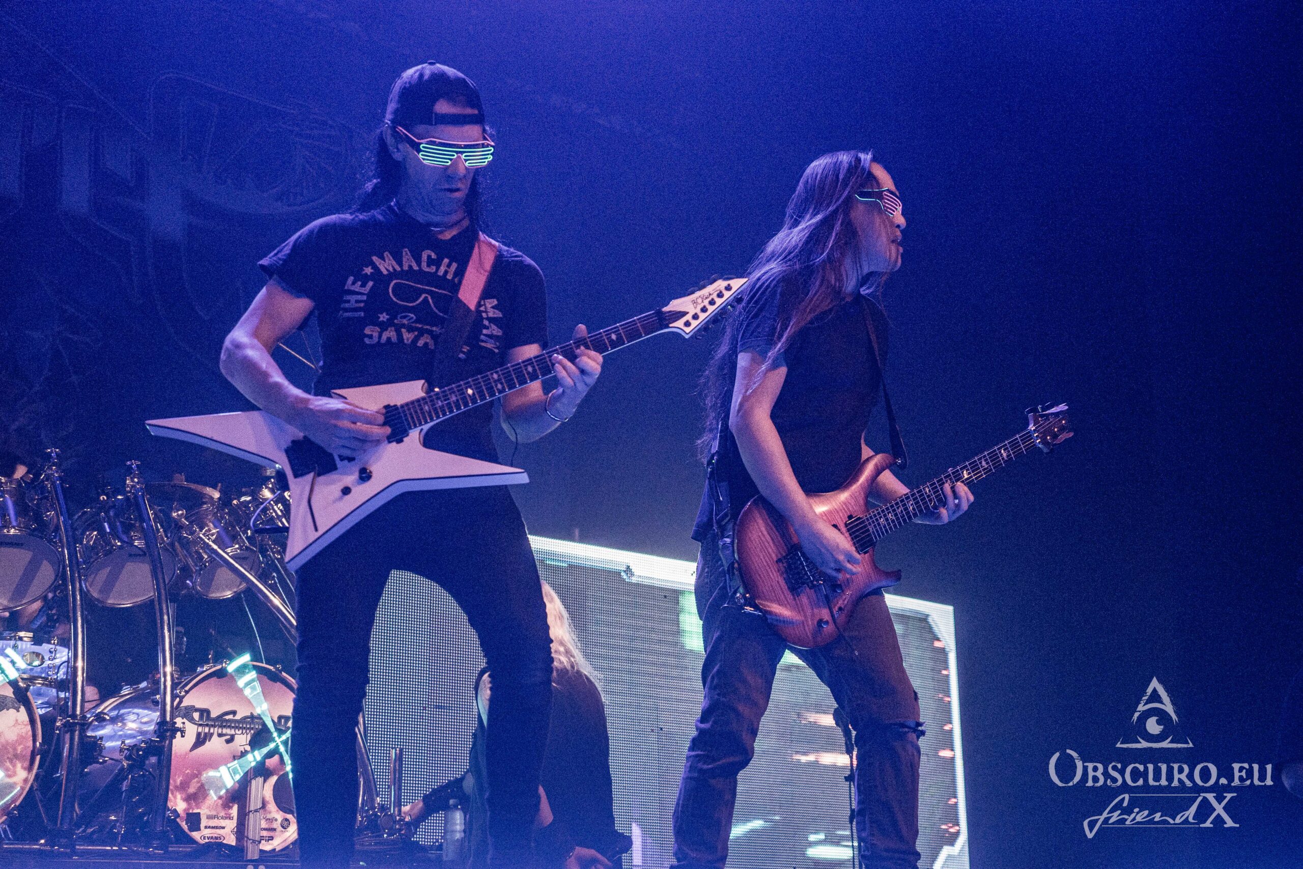 When you entered the venue, from the look of the stage set-up, it was quite clear, that the second band tonight will be London based DragonForce. DragonForce come along with the two guitarists Herman Li and Sam Totman, Marc Hudson on vocals, drummer Gee Anzalone and Alicia Vigil on bass. She was the last member to join the band. Keep an eye on her own band Vigil Of War. On this tour DragonForce are completed by an additional third guitarist as guest musician.