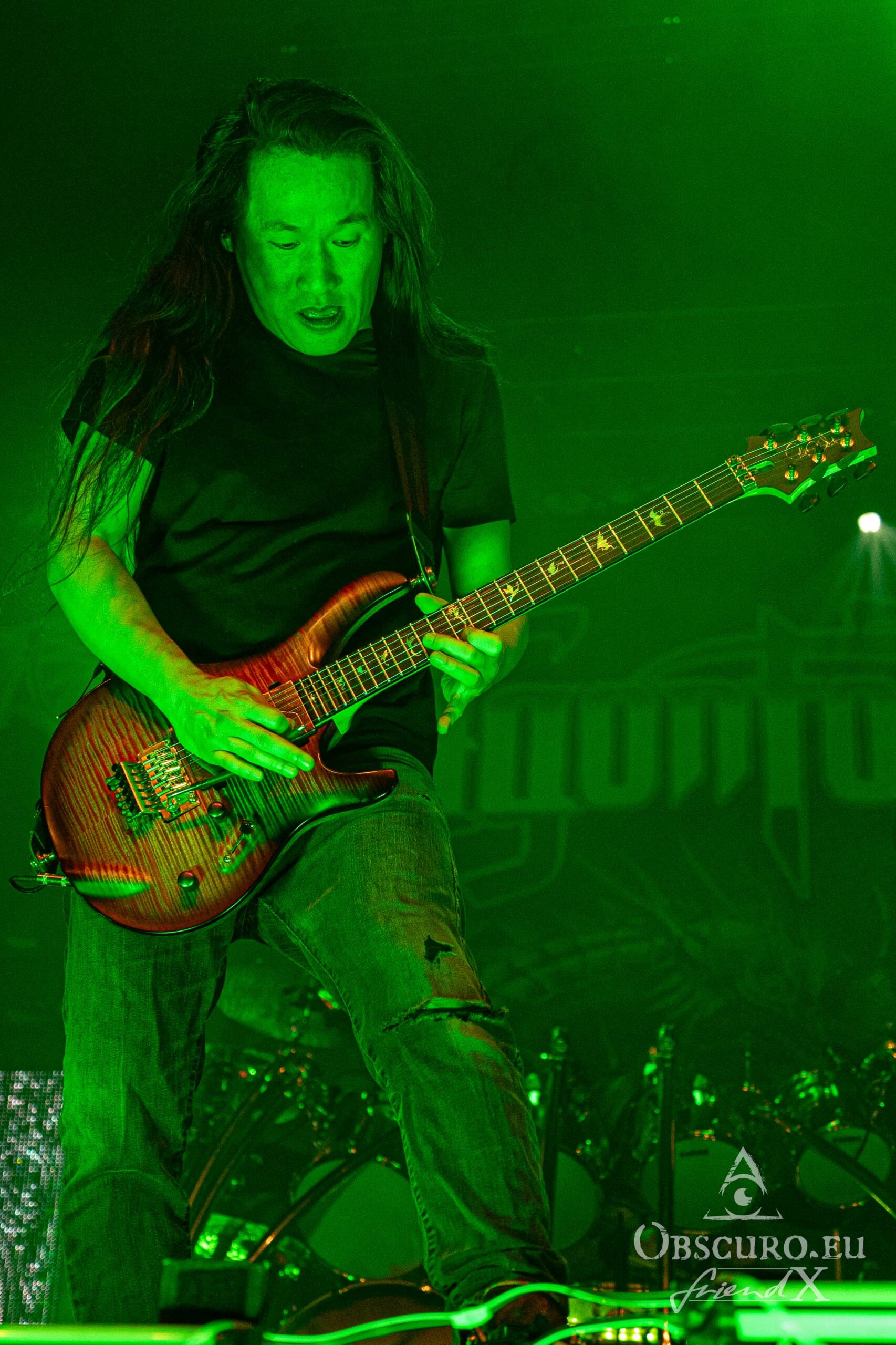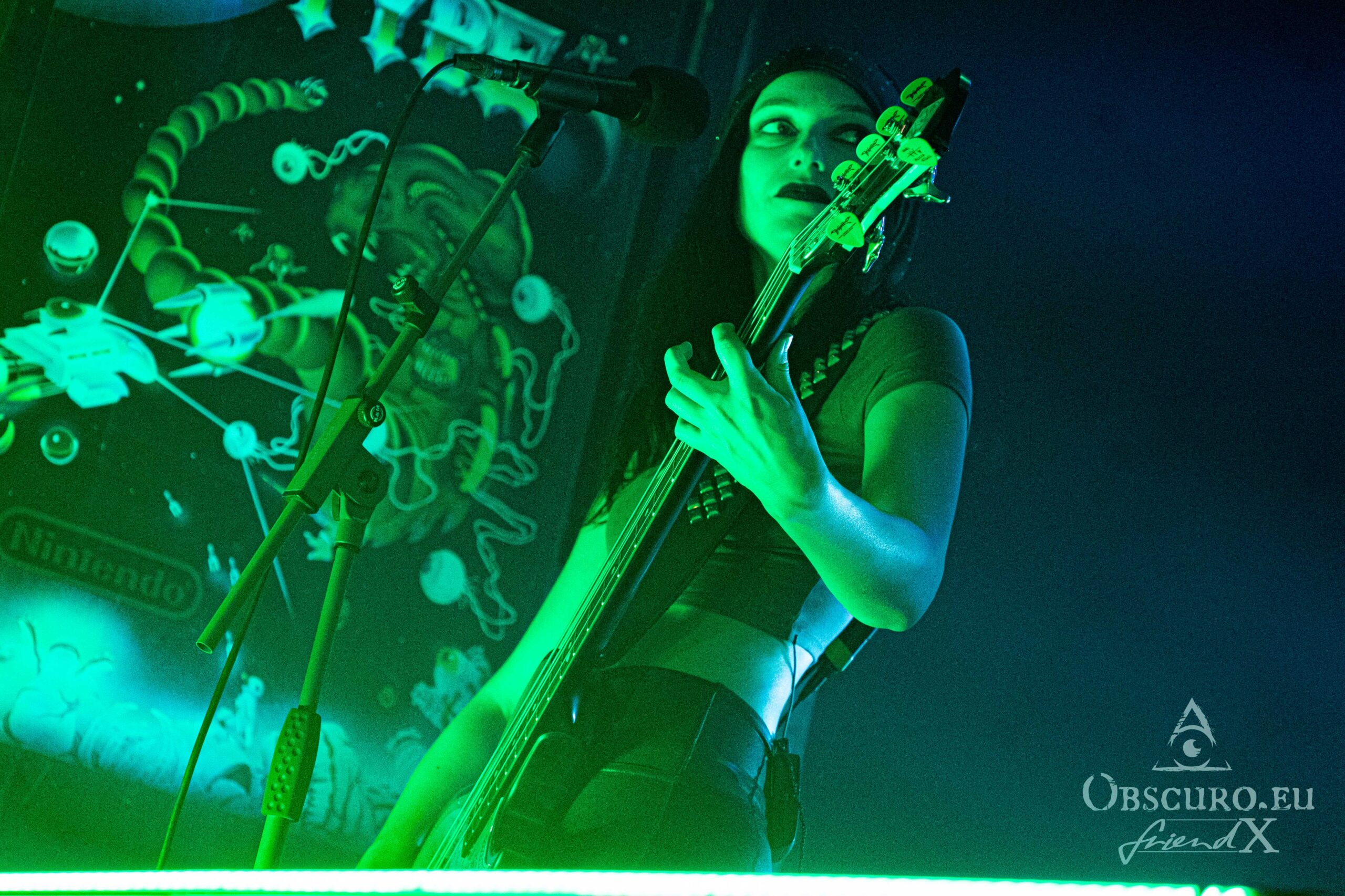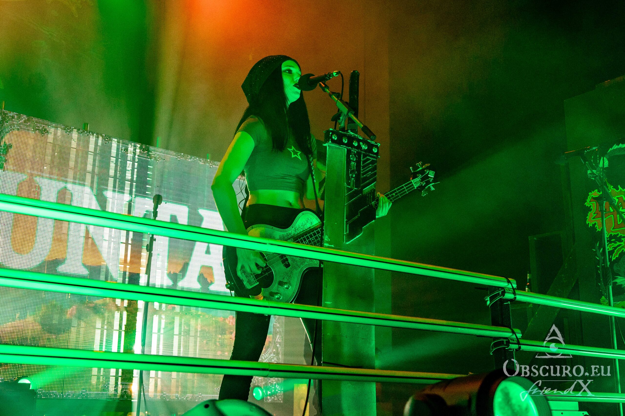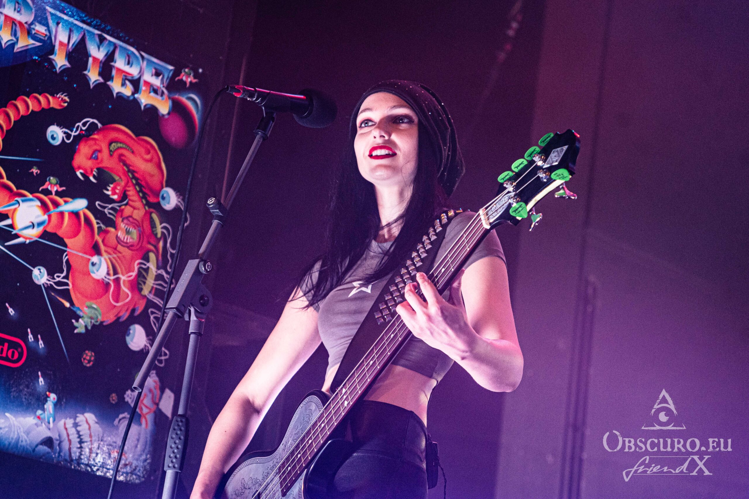 When you entered the venue, from the look of the stage set-up, it was quite clear, that the second band tonight will be London based DragonForce. DragonForce come along with the two guitarists Herman Li and Sam Totman, Marc Hudson on vocals, drummer Gee Anzalone and Alicia Vigil on bass. She was the last member to join the band. Keep an eye on her own band Vigil Of War. On this tour DragonForce are completed by an additional third guitarist as guest musician.
