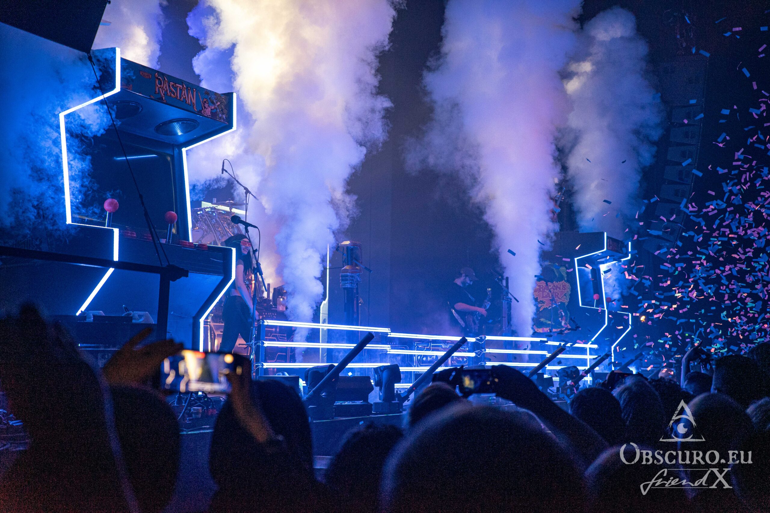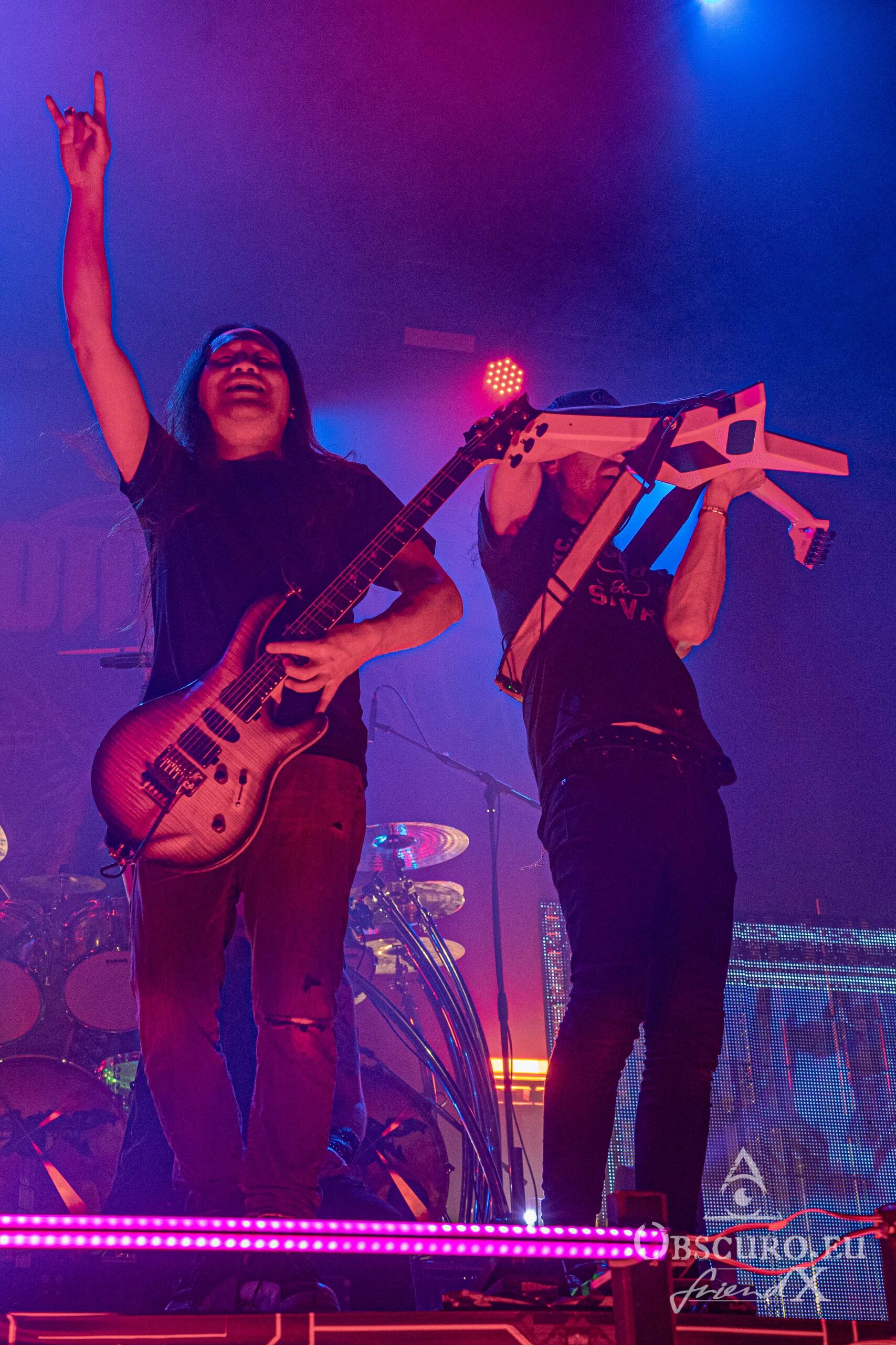 Being computer game nerds themselves means, the whole stage and the whole show of DragonForce is set up up as one itself. What follows, as soon as all six musicians enter the stage, is nothing but a high-speed firework of guitar solos, confetti rain, flashes, laser rays and all you need to pump your blood up with pure adrenaline.