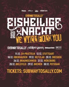 This was the Eisheilige Nacht tour kick-off. What makes the Eisheilige Nacht tour so unique is that it is much more of a family gathering than a simple rock show. After the final song, it’s time to meet the bands at the merchandise stalls. The bands are more than happy to take pictures with everyone or share a drink, and the audience is more than happy to take this opportunity. At a certain point, the audience must finally go home, while Haggefugg, Kupfergold, Schandmaul and Subway to Sally travel to Im Wizemann in Stuttgart, the next stop of the tour. The three of us, of course, leave with smiles on our faces, knowing that more adventures await us on Saturday in Basel and Sissach. Read more soon.