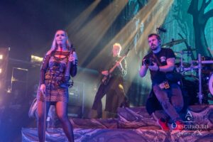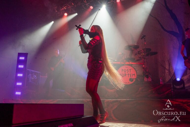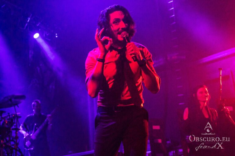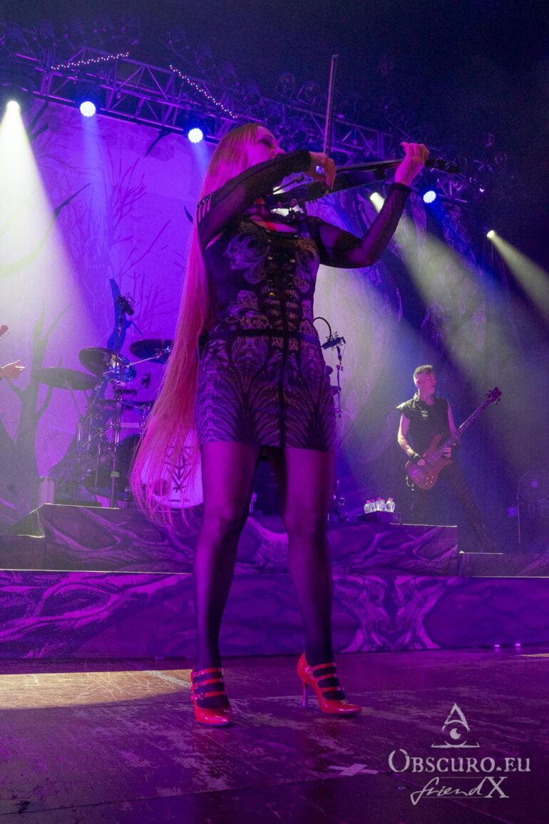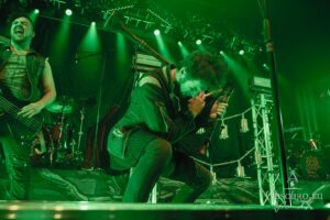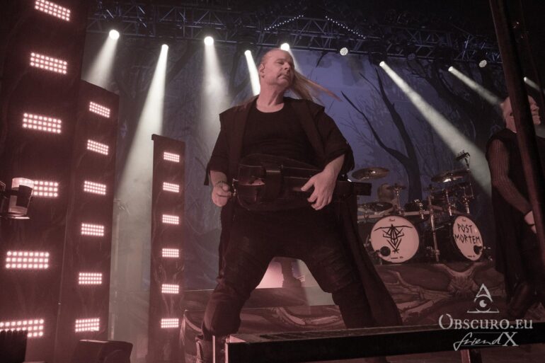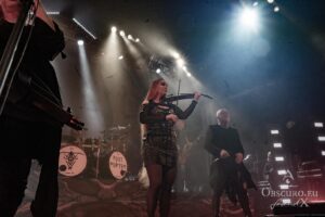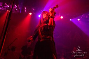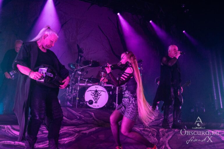 Then it is time for the band that has hosted Eisheilige Nacht since 2009. A fantasy bird, perhaps inspired by the phoenix, dances in front of the drum kit until the band members join the stage one by one. We are, of course, more than happy to welcome Eric Fish and Subway to Sally to the stage. They are the longest-running band on the tour, having been active since 1992 — although the original members have known each other for 12 years longer than that. Subway to Sally is the heaviest band on the tour, although they are still far from bands like Metallica or Slayer. Medieval instruments take centre stage for the next 90 minutes of the finest German folk metal. The show is great and entertaining; everyone in the audience can sense the fun on stage and the excitement of being back at Z7. For the finale, all three previous bands are invited to join Subway to Sally on stage, creating one big family.