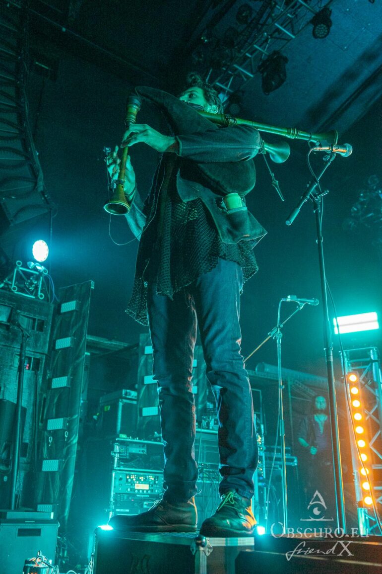 As soon as we arrive at the venue, we will check out the merchandise stalls and, of course, the bar. Z7 has its own brew, so if you go there, be sure to try it — it’s a tasty, not too heavy IPA. After a while, the lights dim and a man carrying a bagpipe enters the stage. This guy is, of course, Eric Fish, the leader of our hosts tonight, Subway to Sally. He plays the intro to one of their oldest songs, explains a little about Eisheilige Nacht, and introduces the bands who will be performing over the next five hours.