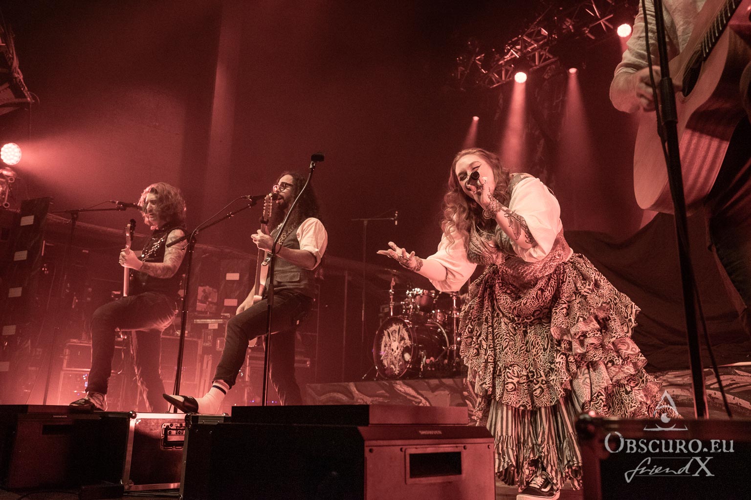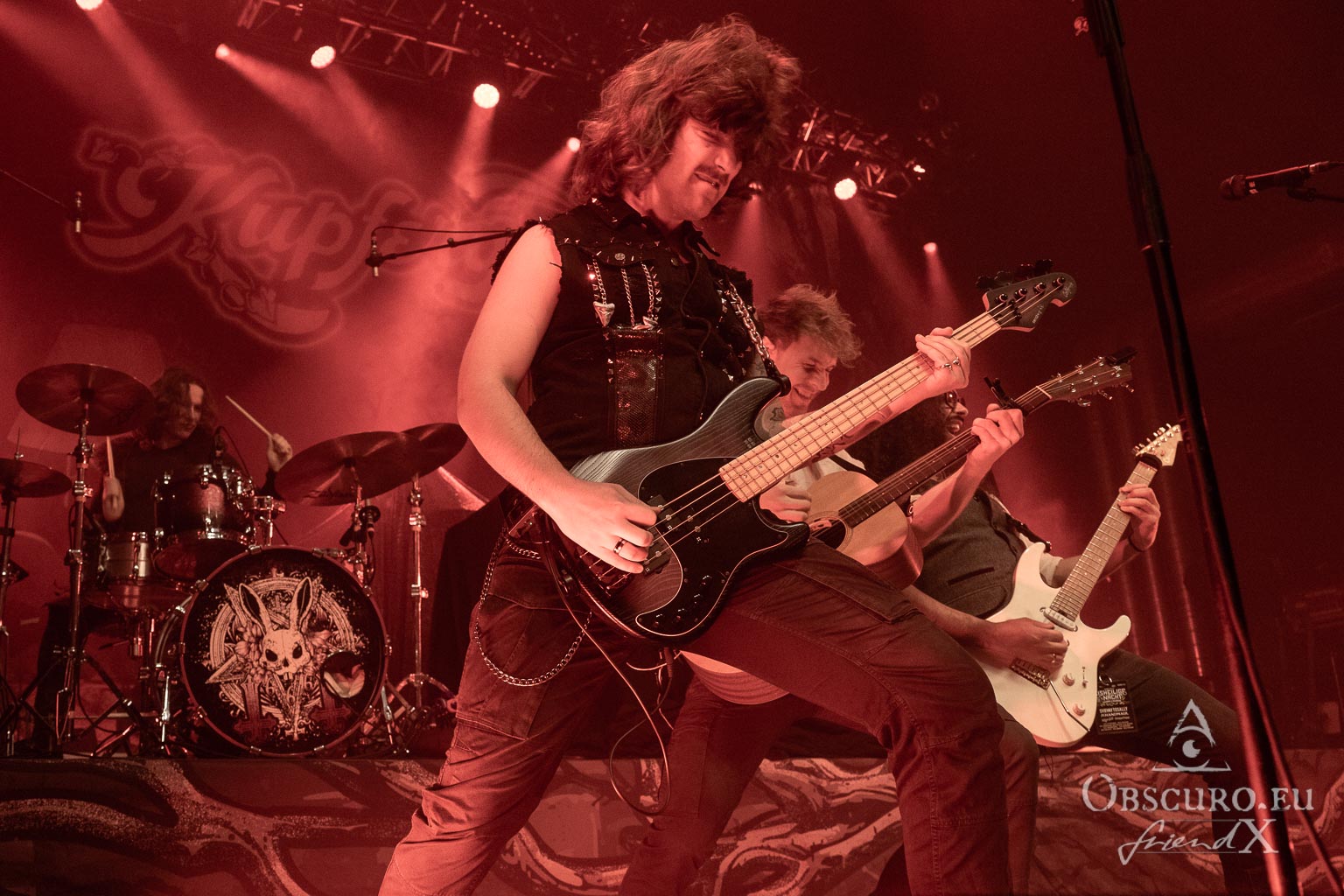 The first band is from Cologne, and their musical style is best described as medieval folk rock. You might already have heard of them – please welcome Haggefugg! During their set, they take us on a journey through ten years of the band’s evolution, performing in front of a highly enthusiastic audience. After Haggefugg‘s short set, when I look around, I see only happy faces — no one seems disappointed! Well done, Haggefugg, very well done!