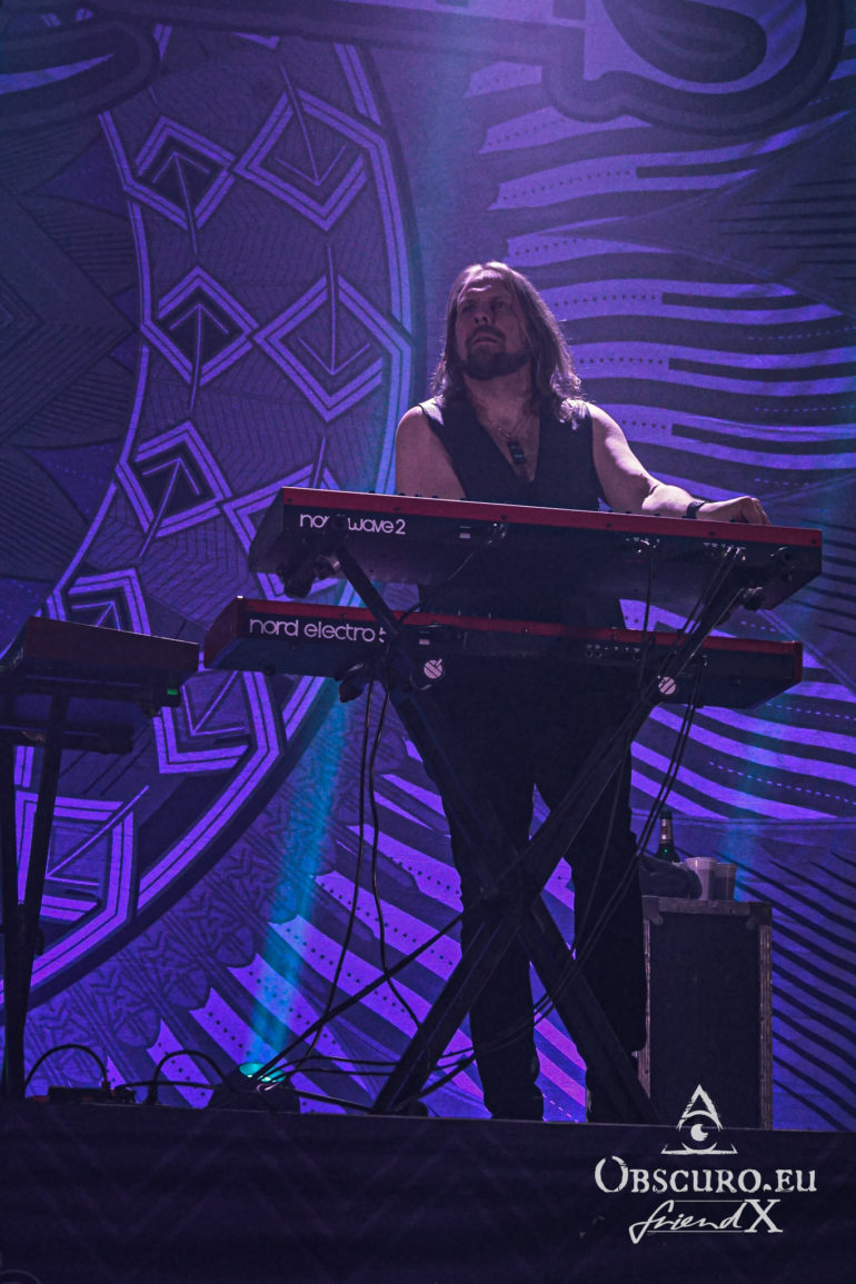 The closer of the meanwhile indeed late evening is Finnish Amorphis. After a complete change of stage set-up their show starts short before 22:00 which is quite a good time for a headliner. We have already reported in detail about their show in Berlin a few days earlier so I don’t need to repeat what has already been written. Nevertheless, they did well, very well! Amorphis showed the audience what real live music is all about. Amorphis is one of those bands who can jump from genre to genre with ease, who even combines these genres. So no matter if it is earlier Death-Metal, Prog Metal or a song influenced by traditional Finnish elements, Amorphis make it their very special and unique song.