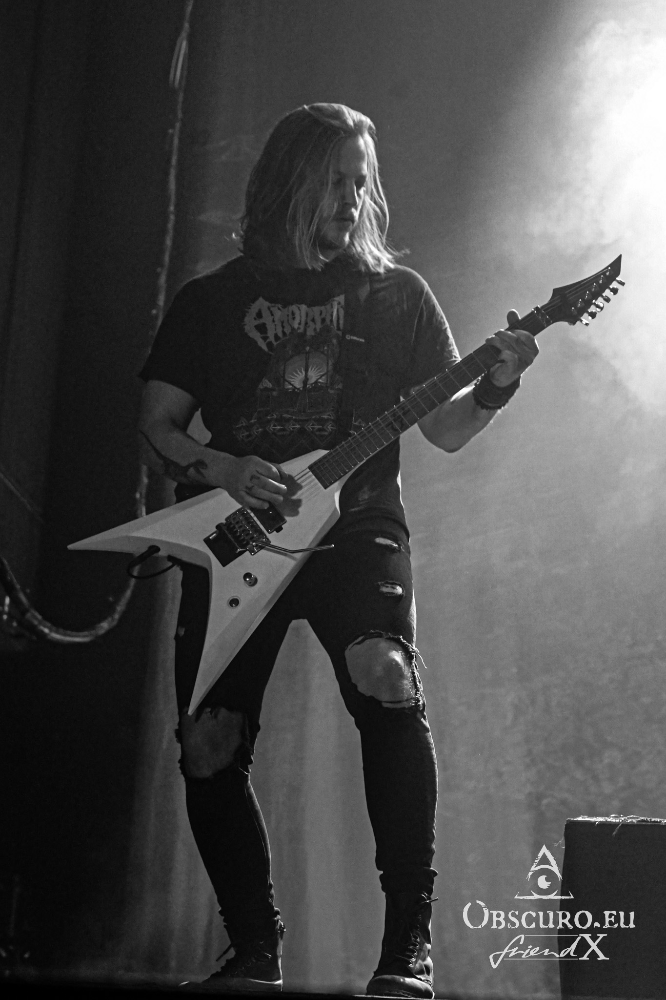 The first band of the, I hesitate to call it “evening”, more or less a “late afternoon” is Nailed To Obscurity. Sadly, the four East Frisians are not Nailed to Obscurity so their slot already starts at 18:05. I’ve seen them several times over the last couple of years, either as support band of bigger names, or on festivals. But I have never seen them perform as well as today! Nailed to Obscurity have a slot of little more than 30-35 minutes and their songs are quite long so their set consists only of five or six songs. Gone are the times of The Ramones’ songs barely longer than two minutes. Complex Melodic-Death-Doom-Metal rules.