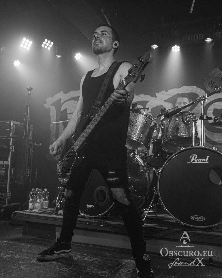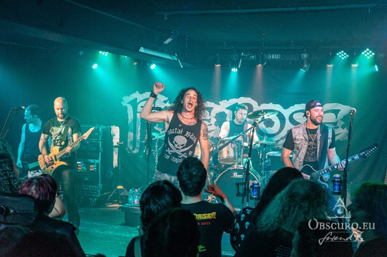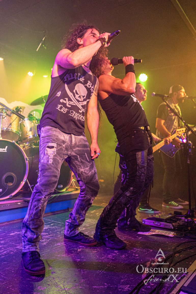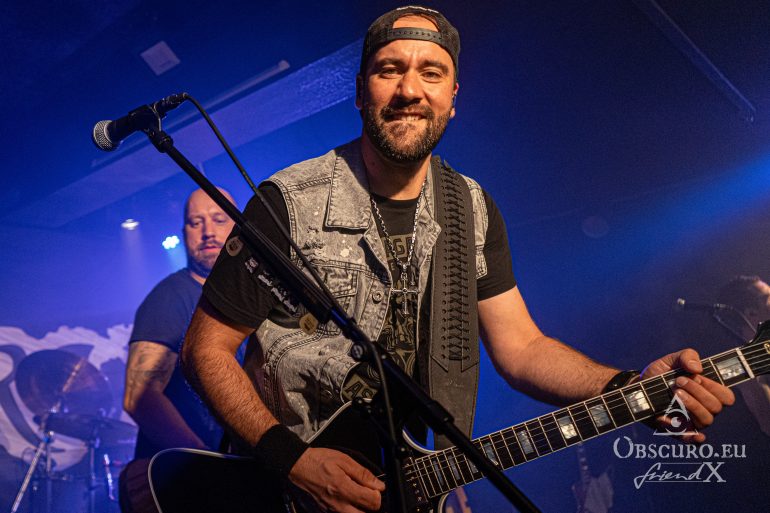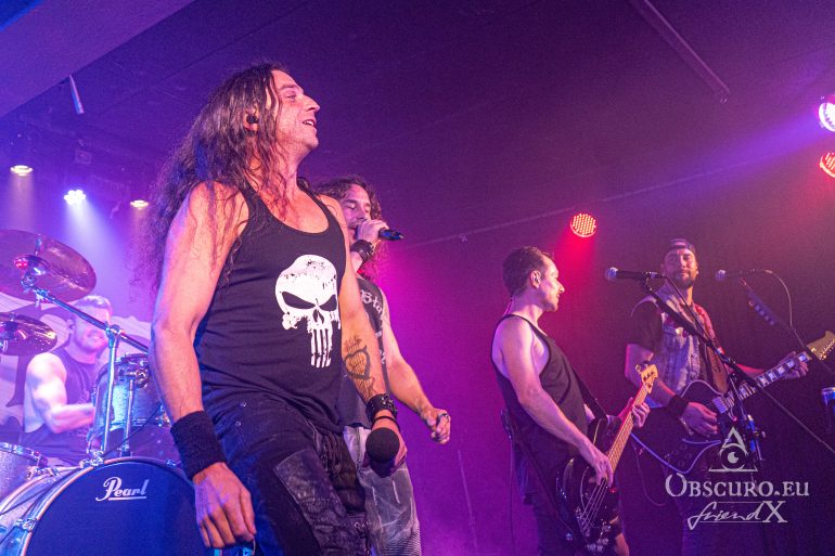 In a different venue I would have written something like ‘and then the lights go out, dry ice mist billows over the stage, some spherical sounds can be heard as a sprawling intro for the headliner’, but not this time and not with Fire Rose. Simon/drums, Janick/bass, Flo/guitar and Simi/guitar enter the stage and start playing the first chords of the opener “Heroes”. A perfect start of a live show can be so easy… Vocalist Phil joins the four with the first lines of the song “From day to day, always the same”, but nothing is like ‘always the same’. From the first second on Fire Rose reign the audience. Song follows after song, Philipp even excuses for his “Hochdeutsch this time so our German guests understand what I am saying”. Good laughter, as if his speeches needed translation. Metal is international and our language is music and friendship.