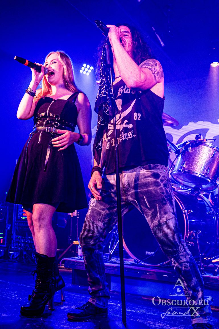 Songs of the previous album “Devil On High Heels” alternate with the songs of “Blood On Your Hands” including both title tracks. The devil on high heels this time is blonde and none less than Andrea Böll, former vocalist of Infinitas. She shares the stage with Fire Rose for the song of the same title. As a duet it turns into a completely different song than the usual and honestly sounds so much better than on the record. That’s the difference which live music makes.