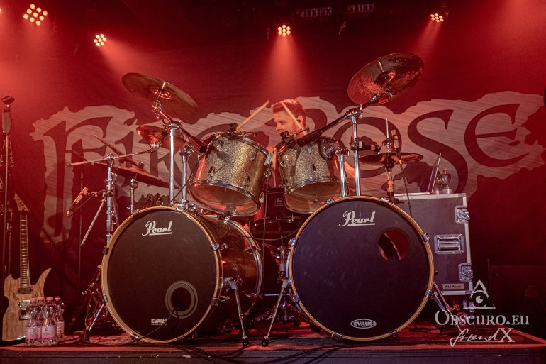 In modern times of Metal it came a bit out of fashion to give the drummer some space. Together with the bassist, the drummer is the backbone of the rhythm, either pushing or pulling the band on stage. The drummer must function as a metronome, precise to the millisecond on one side but on the other side flexible enough to speed up or slow down to the demands of the performance. Fire Rose are different, they are more than happy to give drummer Simon his space so he can perform his very own and unique solo.