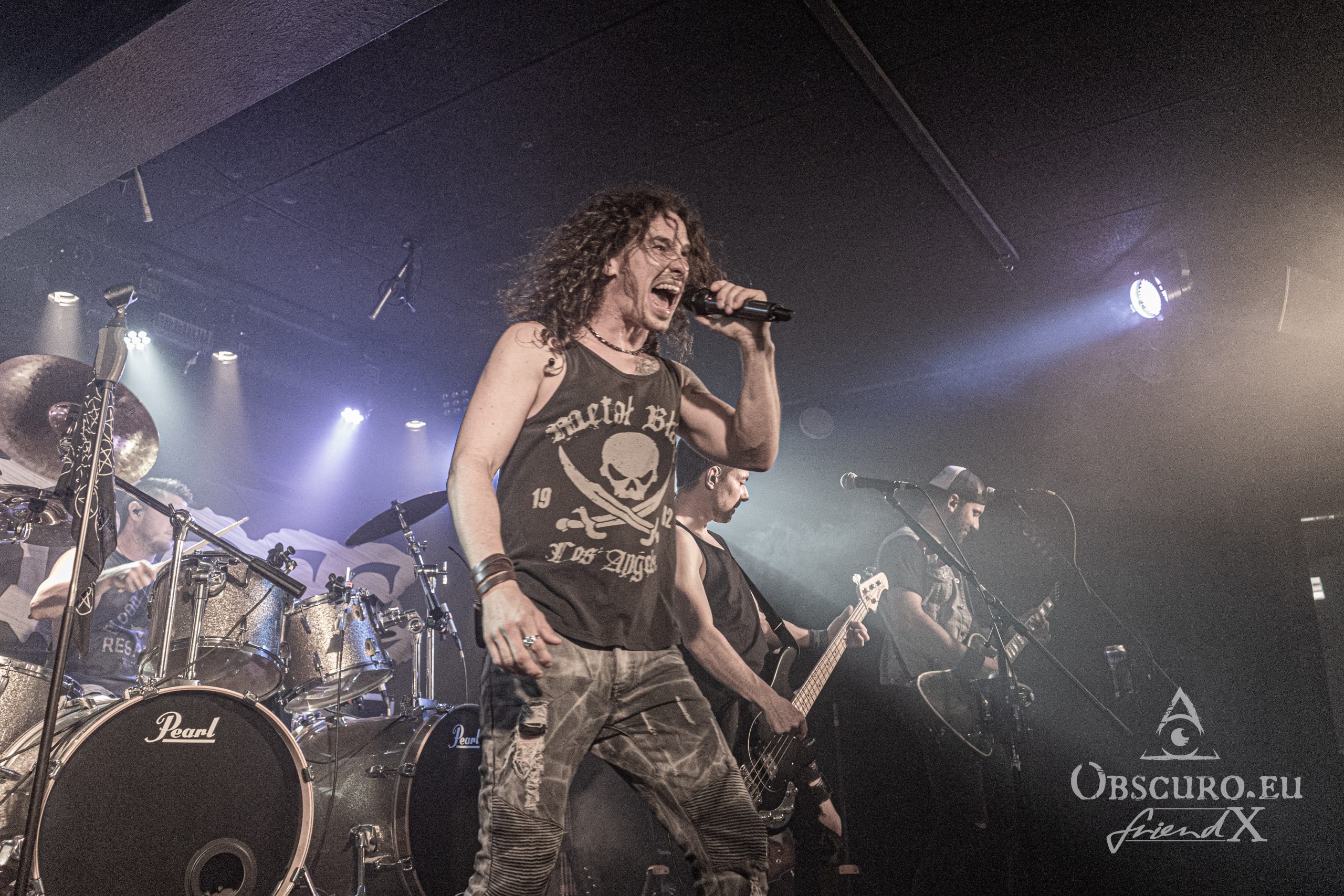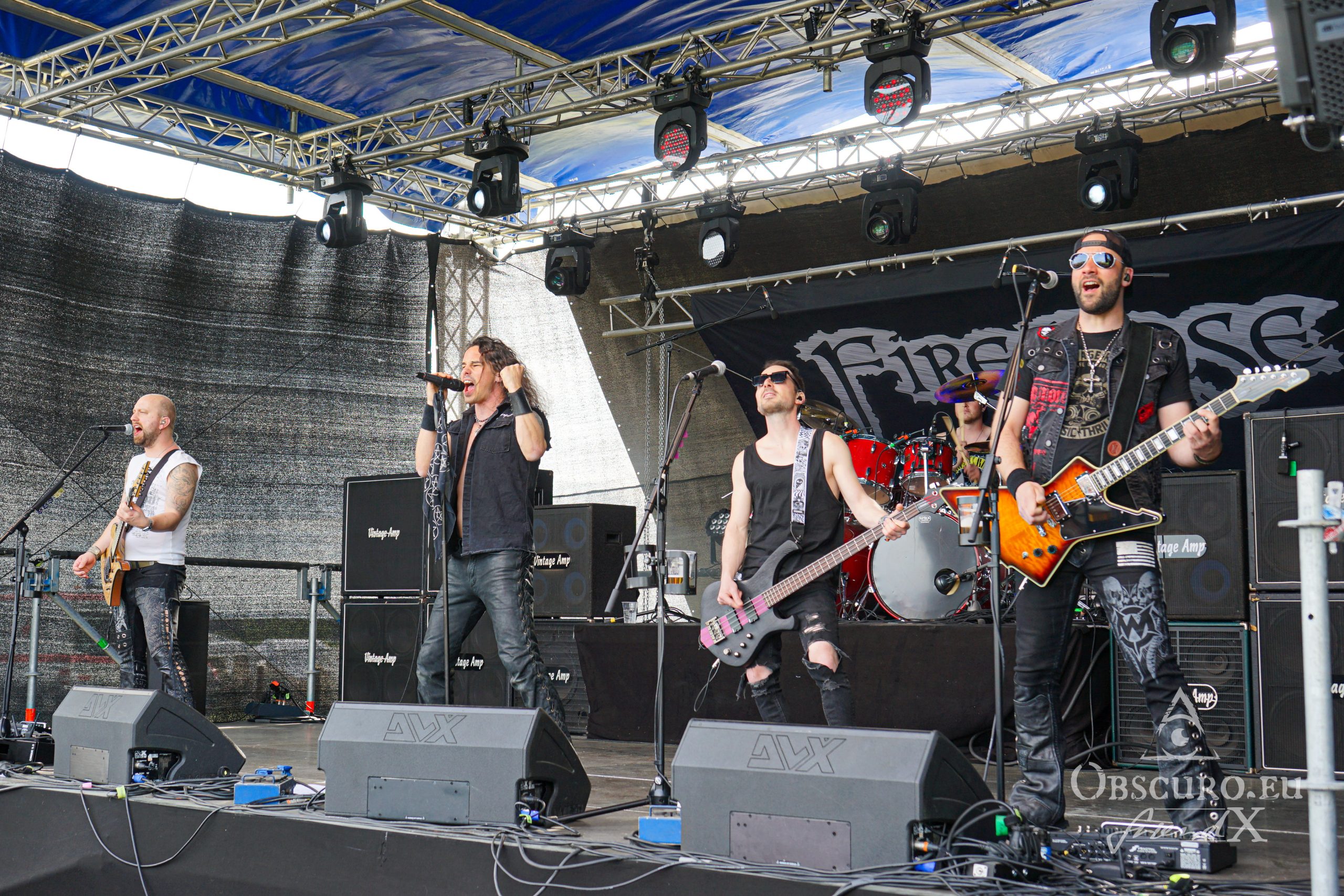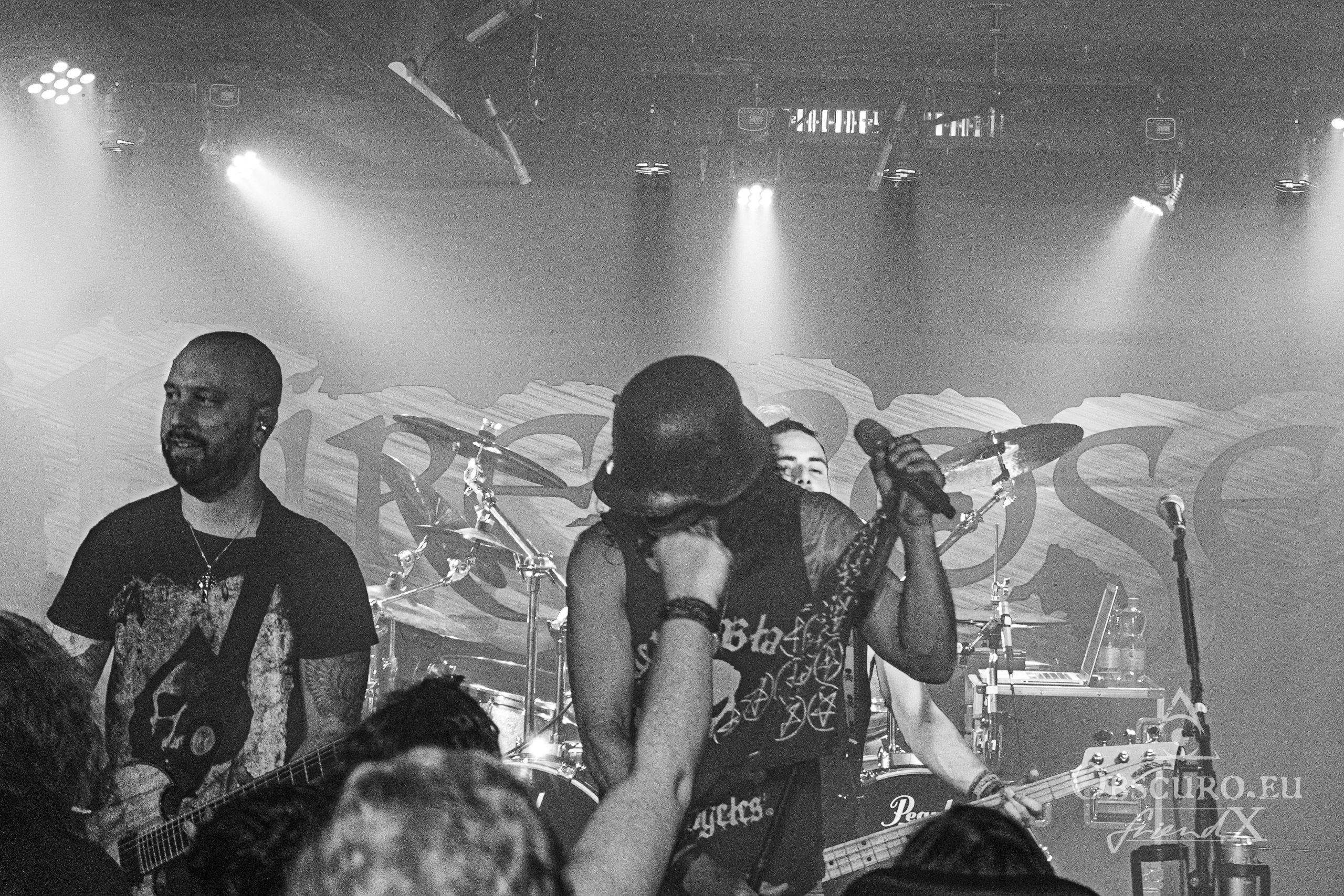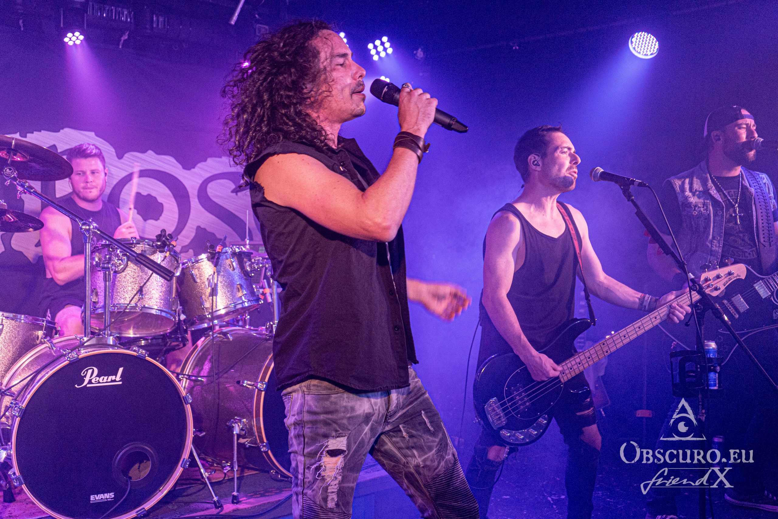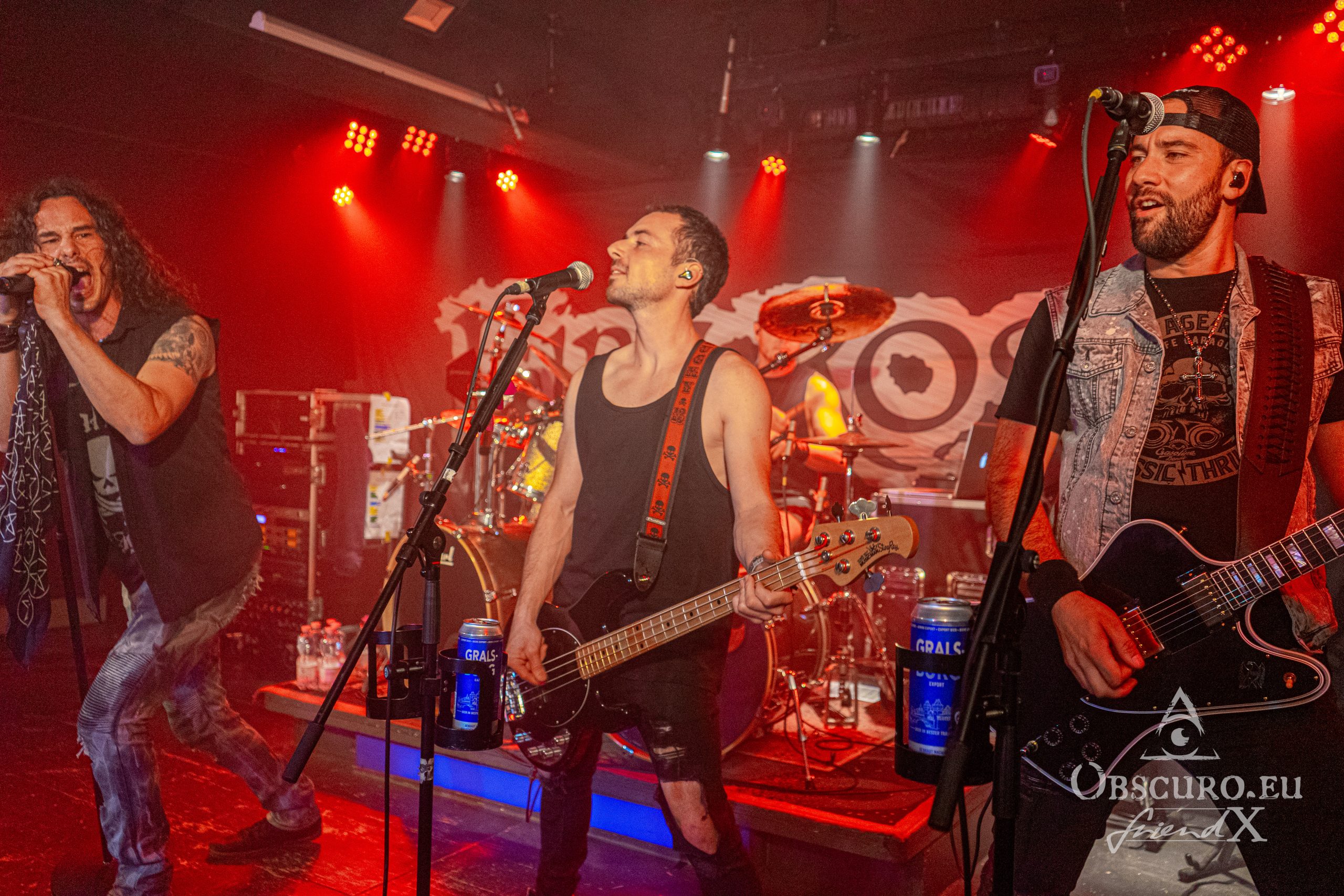 In a different venue I would have written something like ‘and then the lights go out, dry ice mist billows over the stage, some spherical sounds can be heard as a sprawling intro for the headliner’, but not this time and not with Fire Rose. Simon/drums, Janick/bass, Flo/guitar and Simi/guitar enter the stage and start playing the first chords of the opener “Heroes”. A perfect start of a live show can be so easy… Vocalist Phil joins the four with the first lines of the song “From day to day, always the same”, but nothing is like ‘always the same’. From the first second on Fire Rose reign the audience. Song follows after song, Philipp even excuses for his “Hochdeutsch this time so our German guests understand what I am saying”. Good laughter, as if his speeches needed translation. Metal is international and our language is music and friendship.