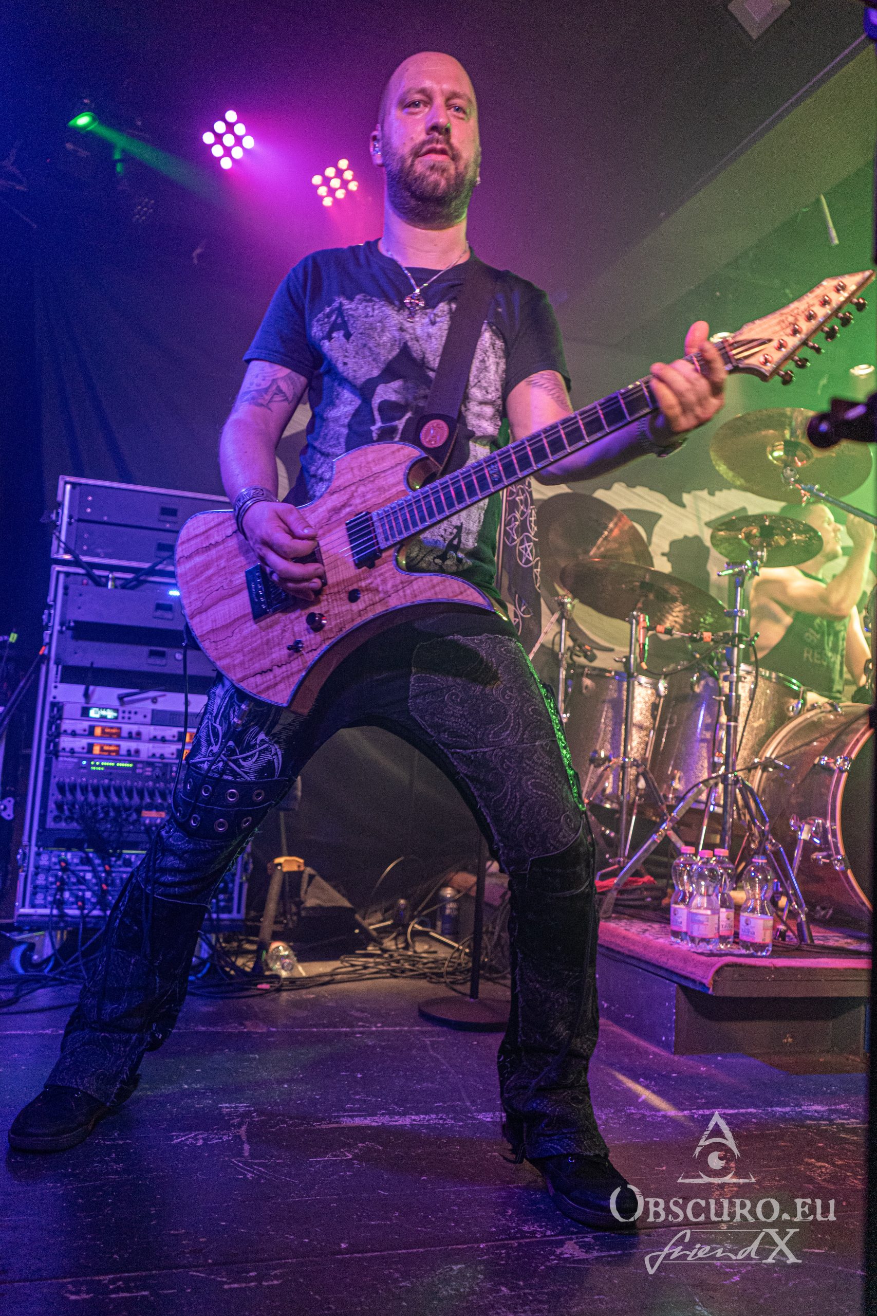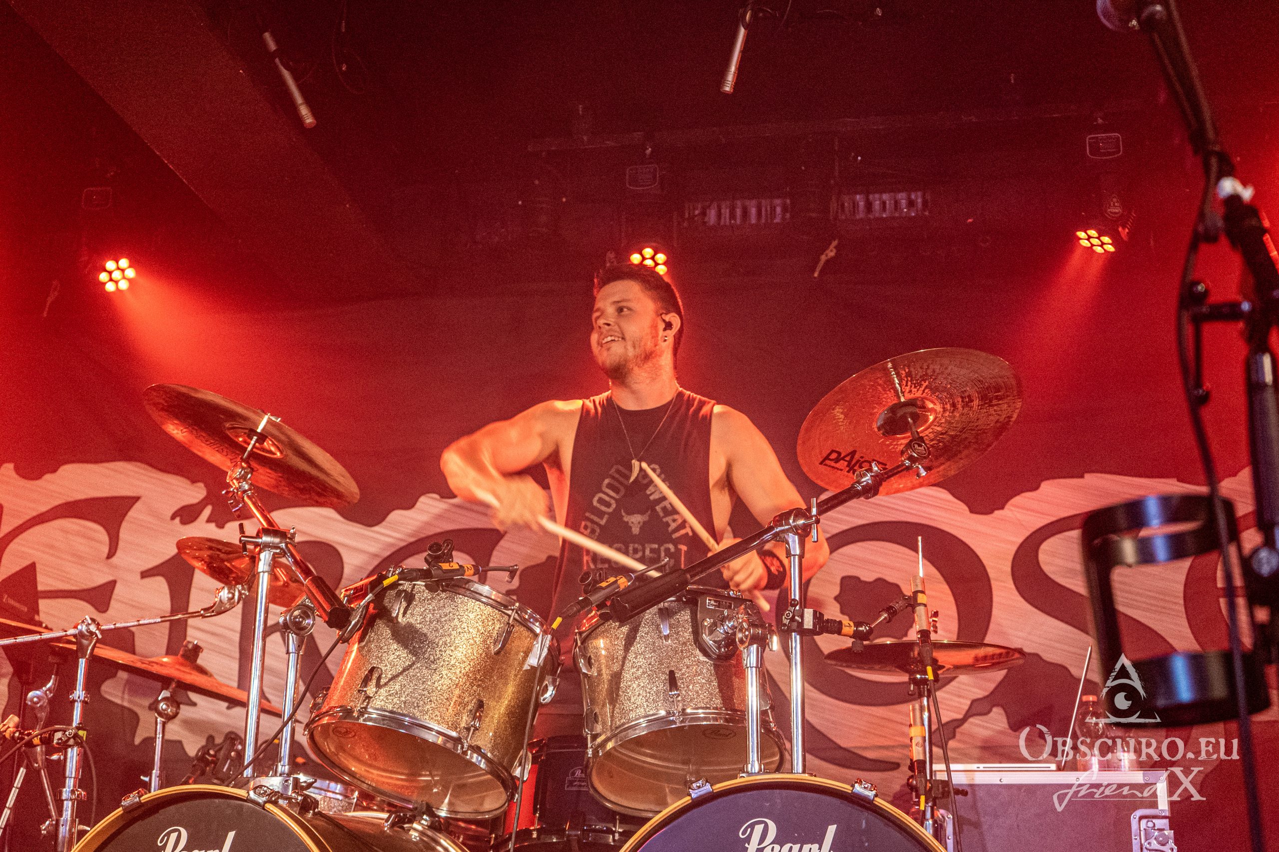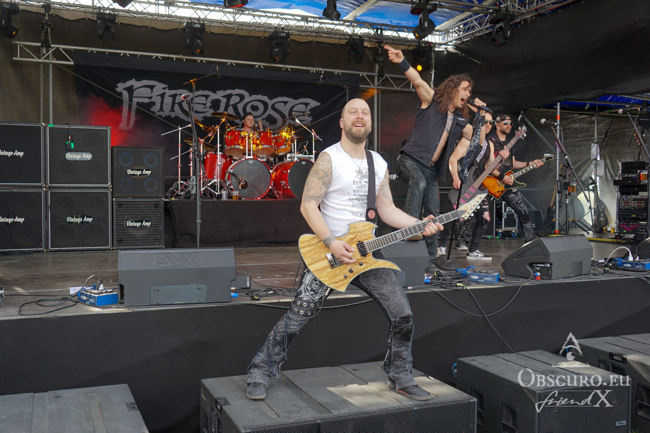 In modern times of Metal it came a bit out of fashion to give the drummer some space. Together with the bassist, the drummer is the backbone of the rhythm, either pushing or pulling the band on stage. The drummer must function as a metronome, precise to the millisecond on one side but on the other side flexible enough to speed up or slow down to the demands of the performance. Fire Rose are different, they are more than happy to give drummer Simon his space so he can perform his very own and unique solo.