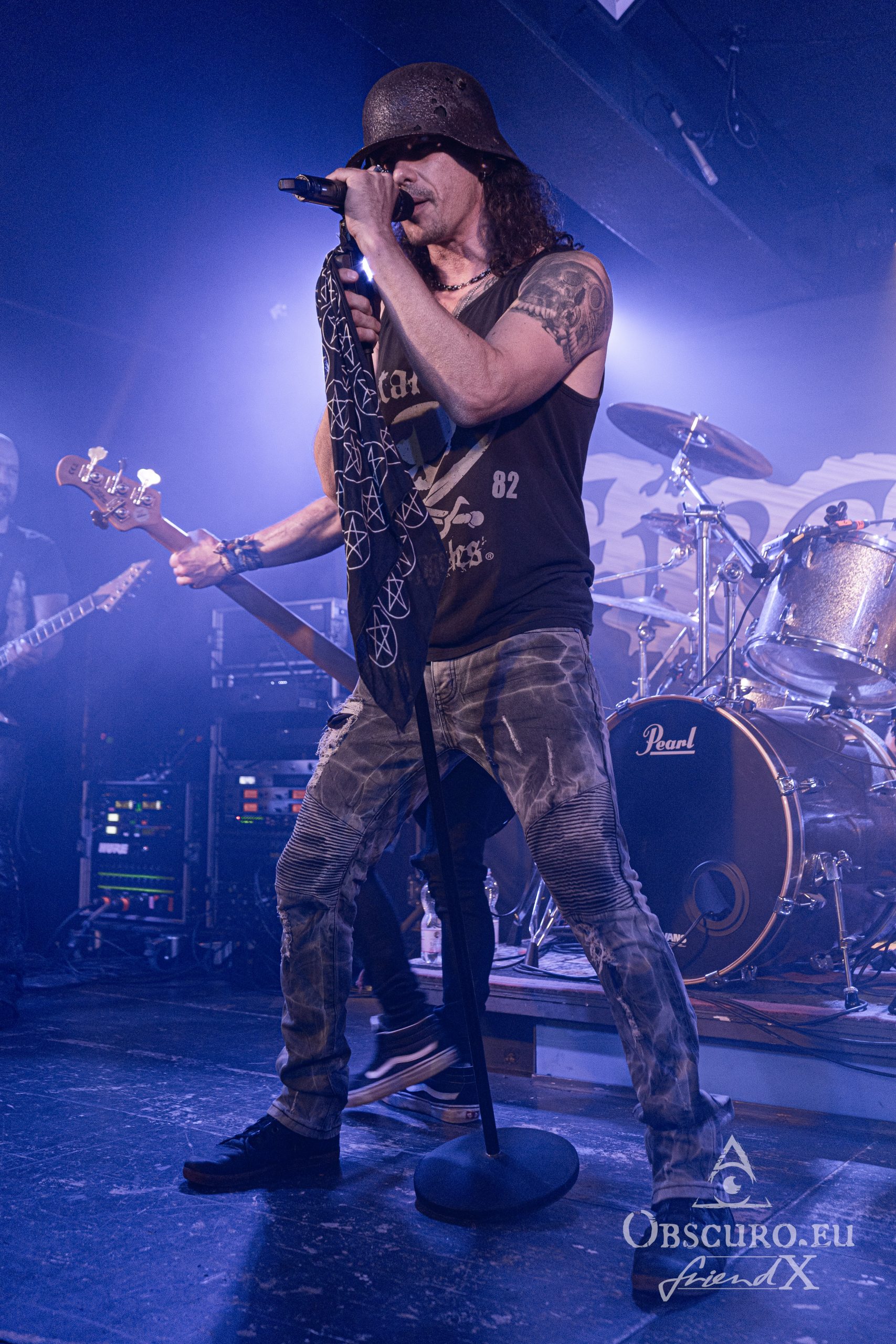 When the other four members join the stage again, we realise, it seems to be time for one of Fire Rose’ most serious songs. Philipp wears a German Stahlhelm M1916 of the Great War. It is his own property and an original from the battlefields of Verdun. There is a hole in the back of the helmet which indicates that the former owner who lost it in 1917 also lost his life. Remember, Philipp is a history nerd so he takes it very serious, there is no fun in these “Fields Of Honor”. There is no glory in any war and there are no winners but losers only. Not in the past, not nowadays and not in the future.