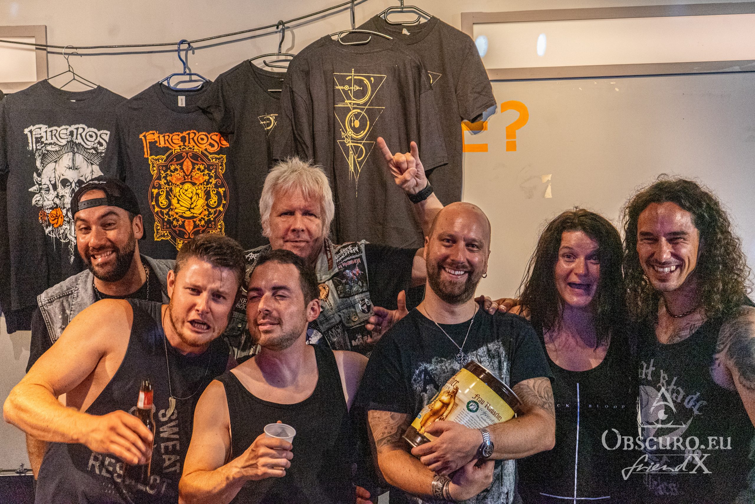 That is the perfect entertainment, a real Rock and Roll party with 17 songs including all of the new album . Usually, when a show is over and you got to go home, you leave after the last note or latest after buying your piece of merch or a CD. Not this time, Fire Rose join their audience immediately after the show. Of course they also sell their merch and the new album on CD and tape, but they also offer a free drink in form of a cask of apple wine to raise the glasses together for the sake of Rock and Roll music. It will take hours until the last guest leaves the venue.