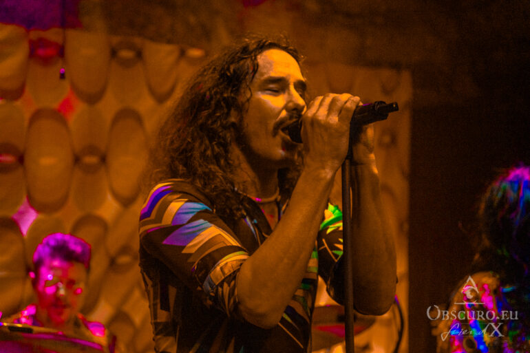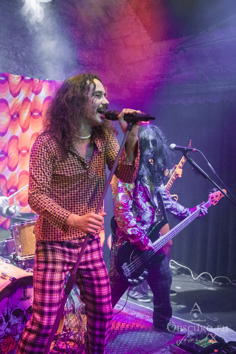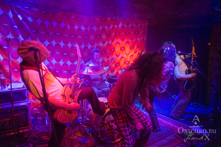 Fire Rose say hello to everyone, some of them are family members. All in all it is a funny, lovely and colourful bunch of friends. As soon as it is time for the band to change their outfits, the concert starts at 21:00.
