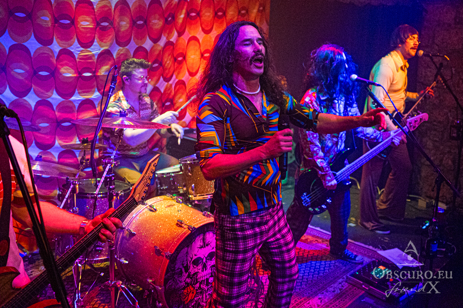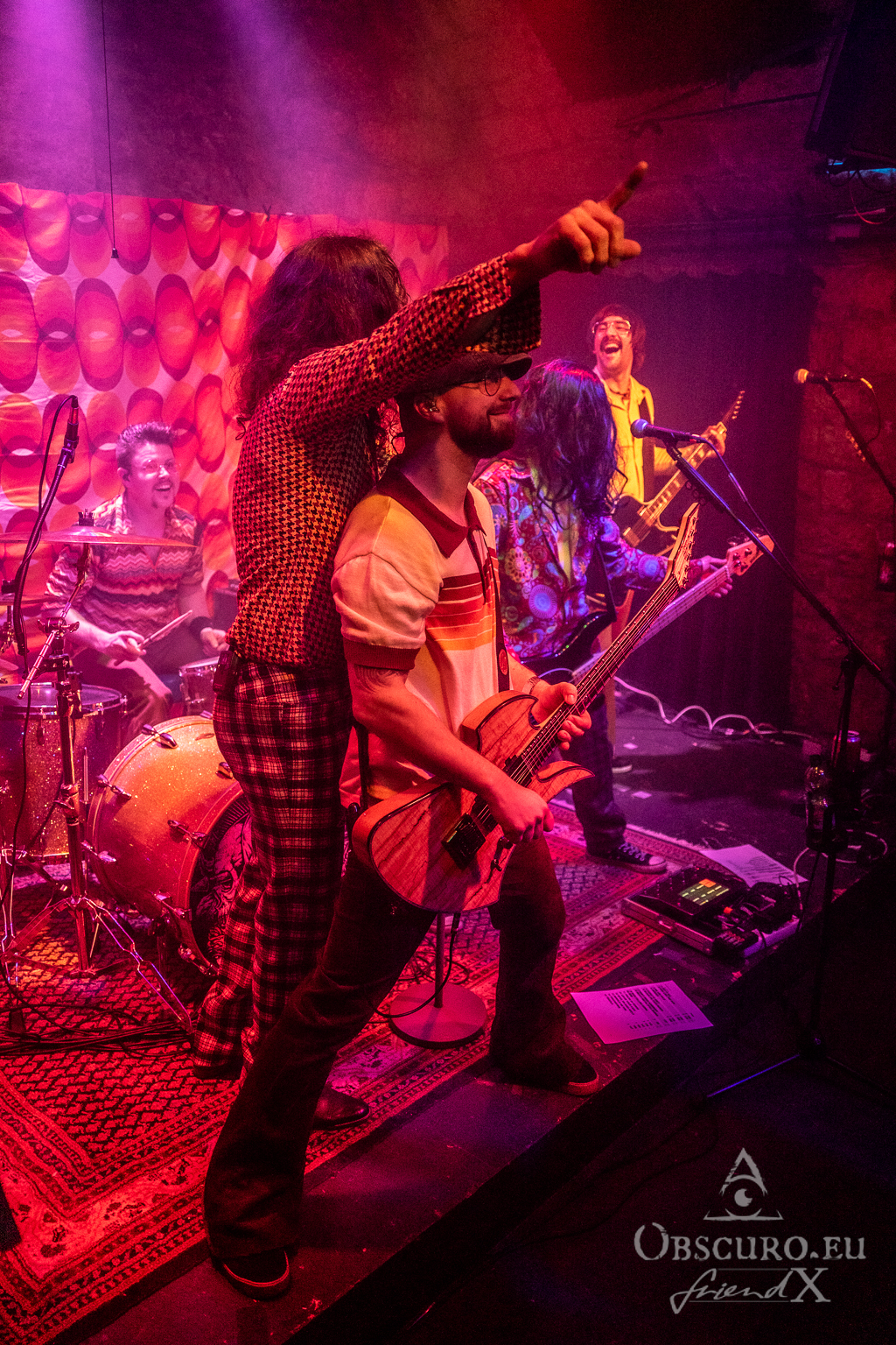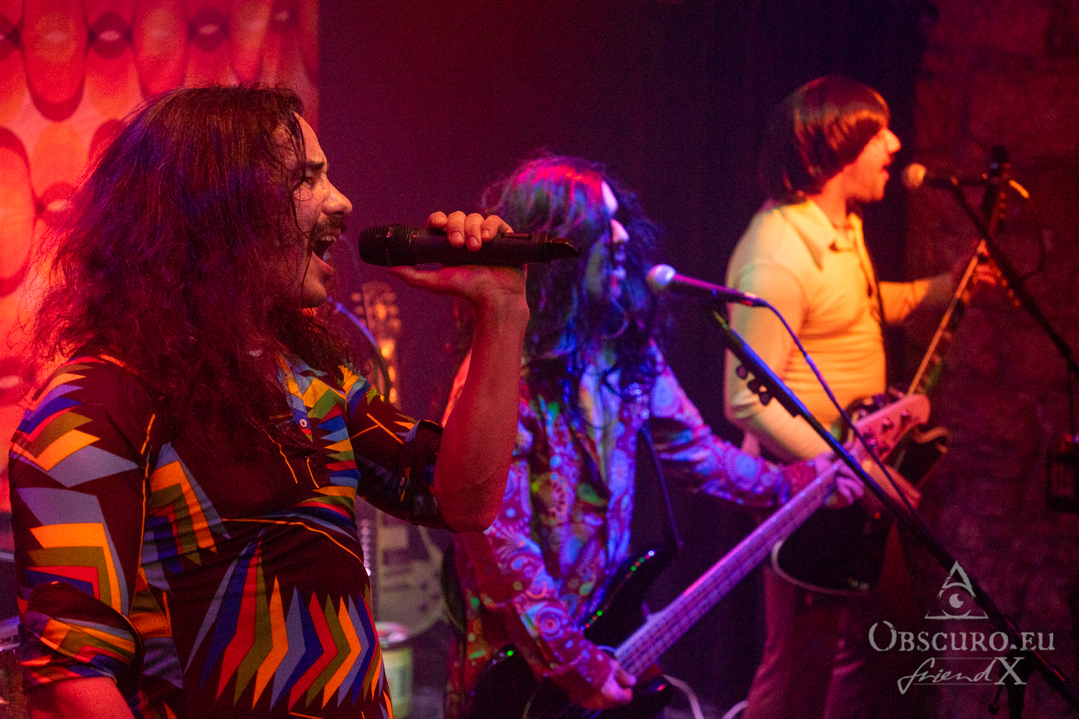 Fire Rose say hello to everyone, some of them are family members. All in all it is a funny, lovely and colourful bunch of friends. As soon as it is time for the band to change their outfits, the concert starts at 21:00.