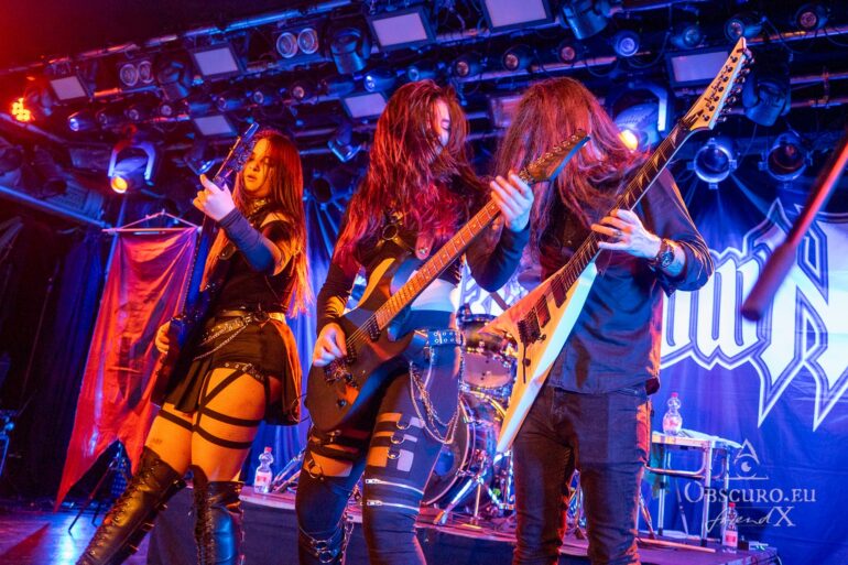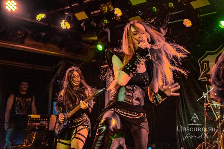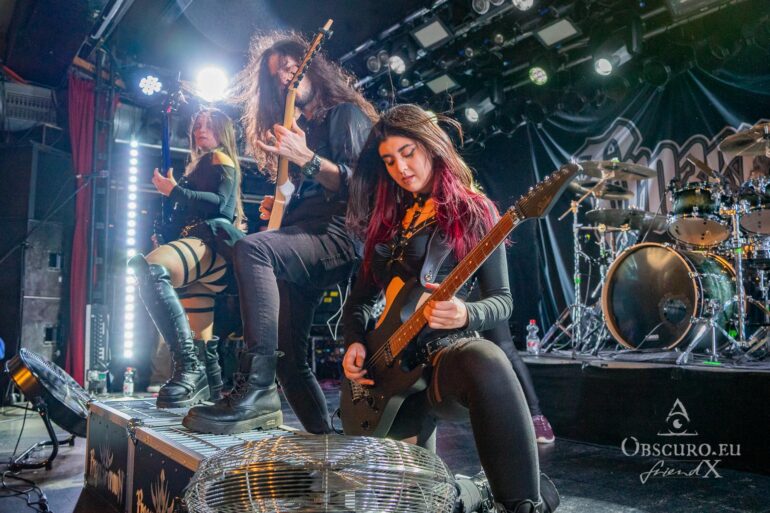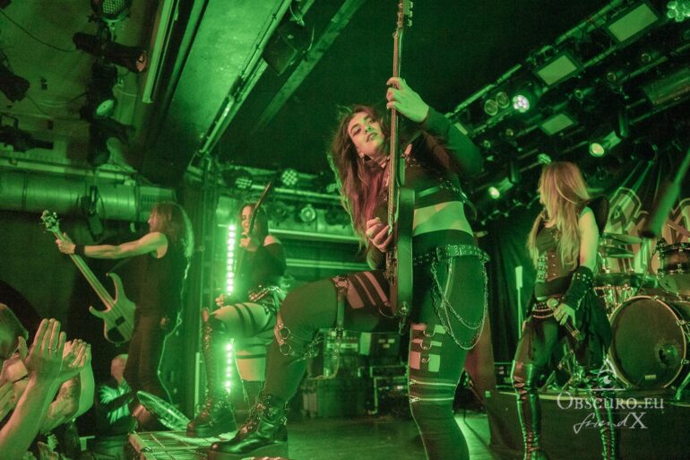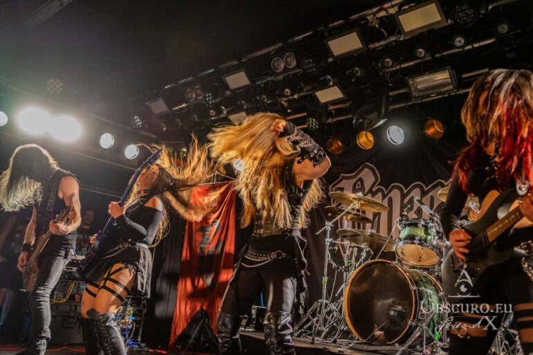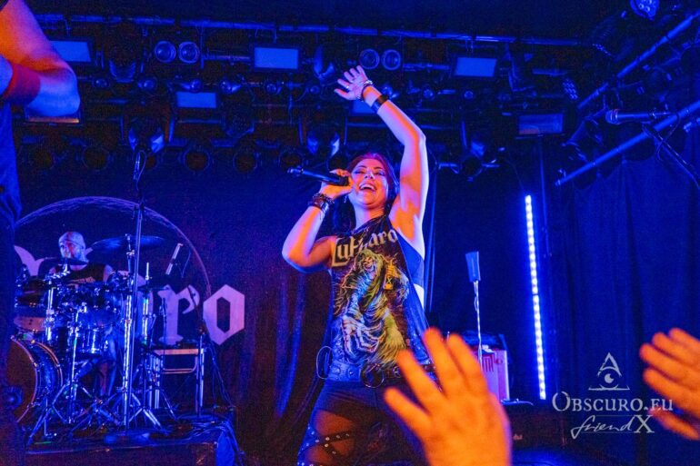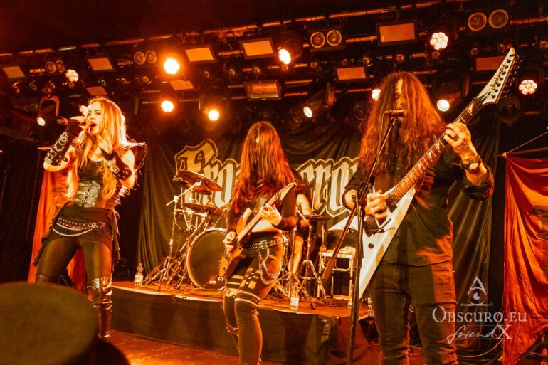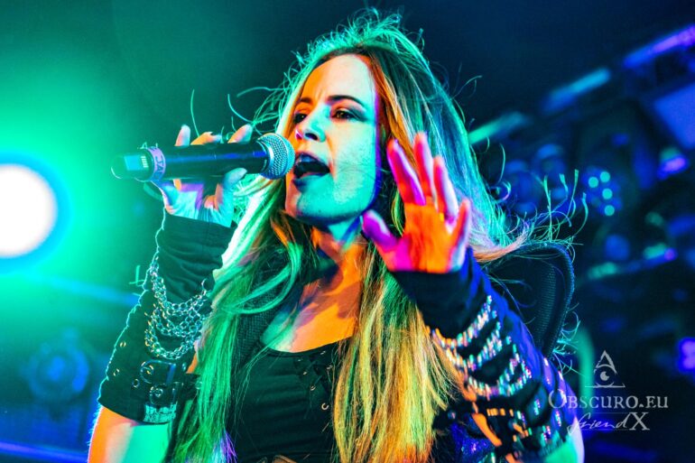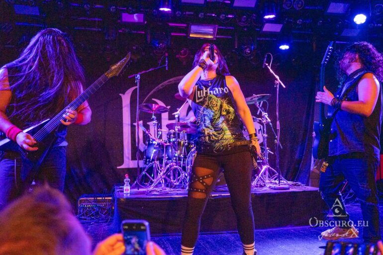 The first band of this April evening at Colos-Saal/Aschaffenburg is Lutharo from Canada. Lutharo is “female fronted” and consists of Krista Shipperbottom on clean and growled vocals, Victor Bucur on guitar, Chris Pacey on bass and last but not least Cory Hofing on drums. Their style is perhaps best described as a wild mix of melodic death, thrash and power metal. Long story short, here are some photos of their set.
