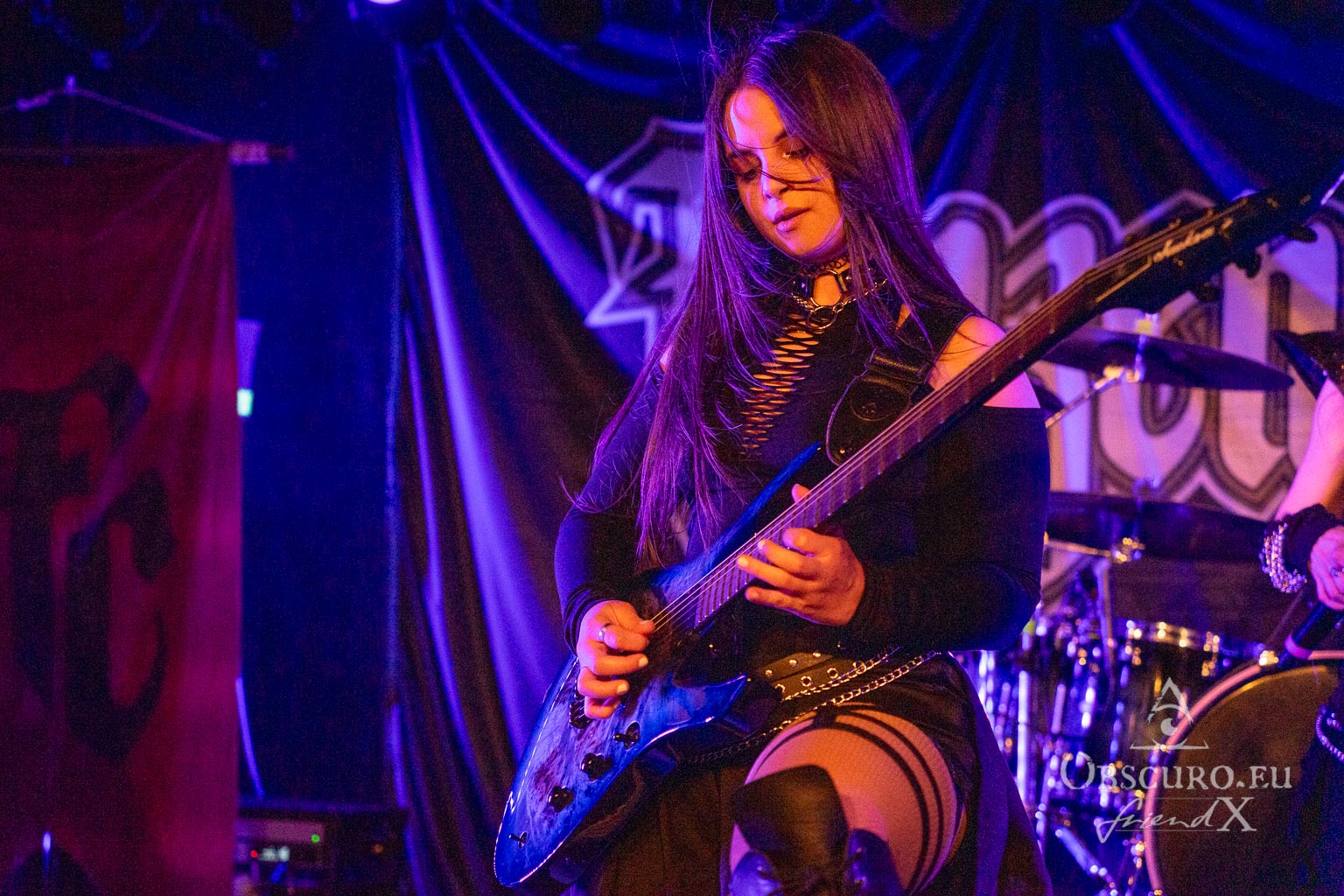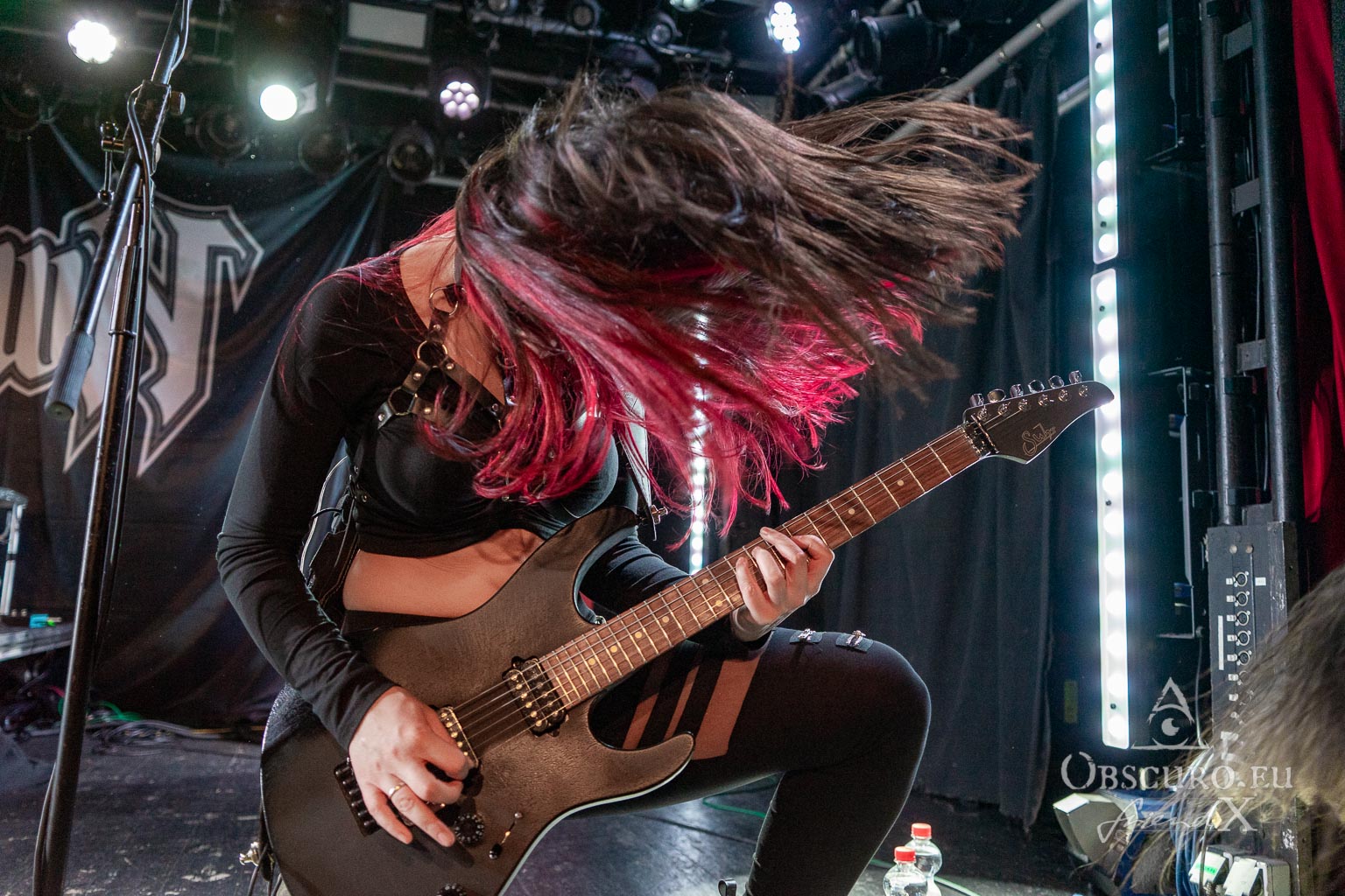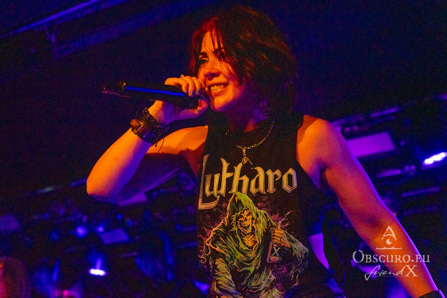 The first band of this April evening at Colos-Saal/Aschaffenburg is Lutharo from Canada. Lutharo is “female fronted” and consists of Krista Shipperbottom on clean and growled vocals, Victor Bucur on guitar, Chris Pacey on bass and last but not least Cory Hofing on drums. Their style is perhaps best described as a wild mix of melodic death, thrash and power metal. Long story short, here are some photos of their set.