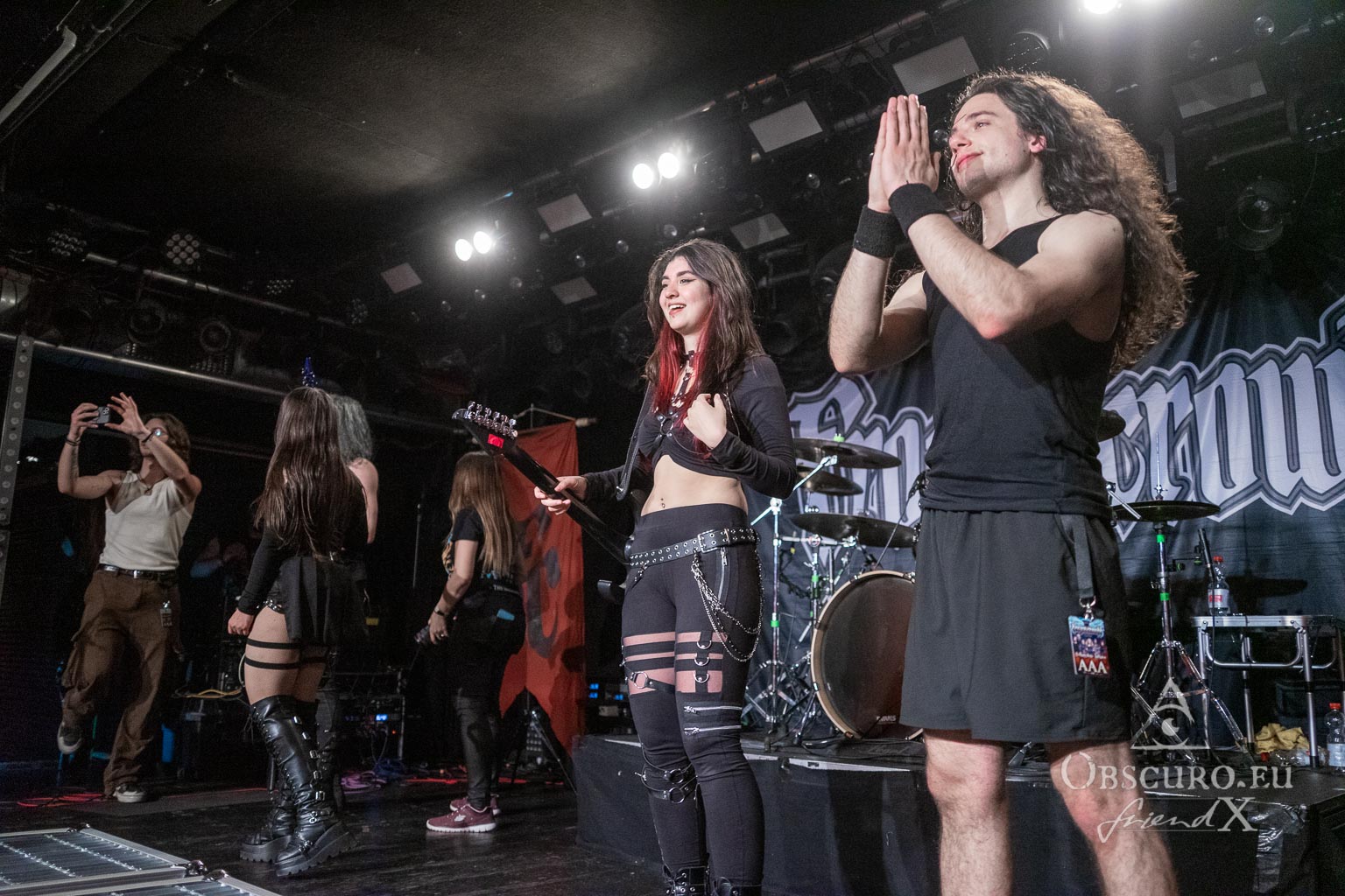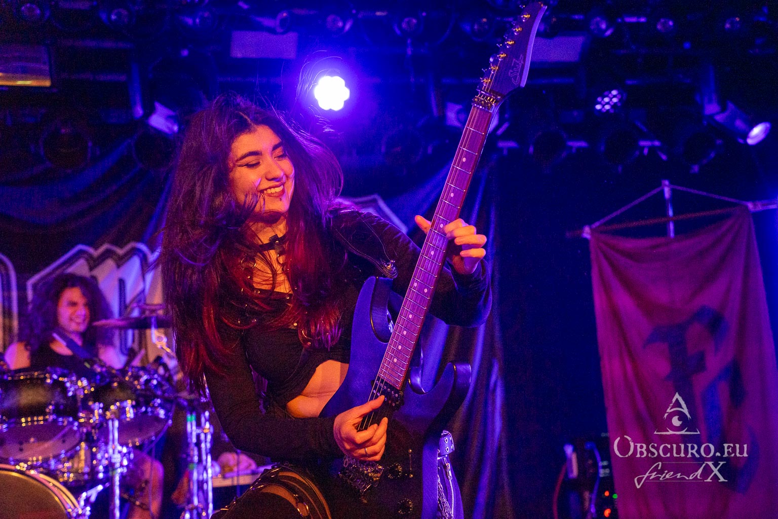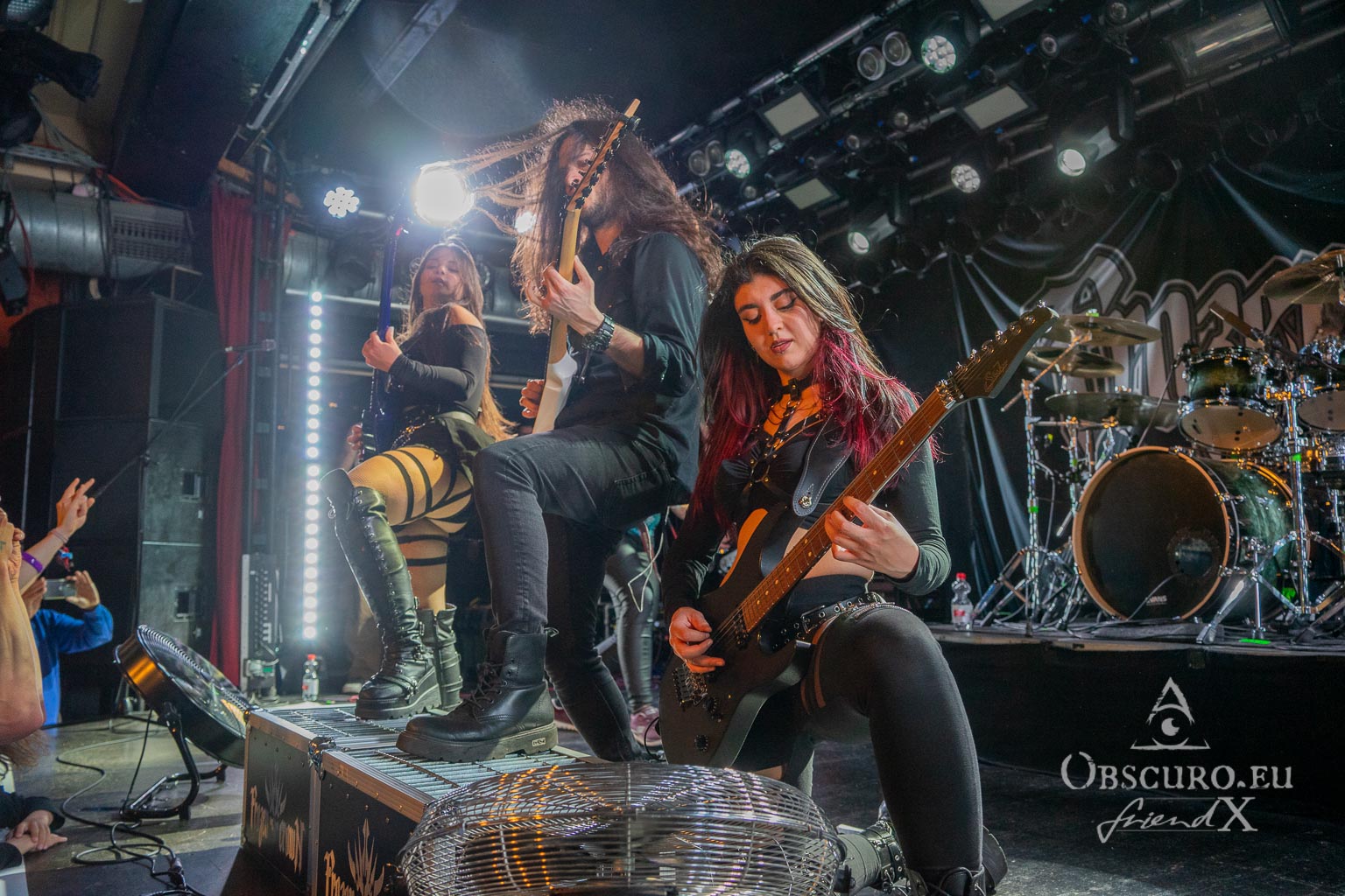 The third and final band tonight is of course Frozen Crown, the electrifying power metal sextet from Italy. Frozen Crown consists of Giada “Jade” Etro on vocals, Federico Mondelli on guitar and vocals, Fabiola Bellomo on guitar, Francesco Zof on bass, Niso Tomasini on drums and Alessia Lanzone on guitar. So three guitars, three men, three women and they like to call themselves a family and not just members of the same band.