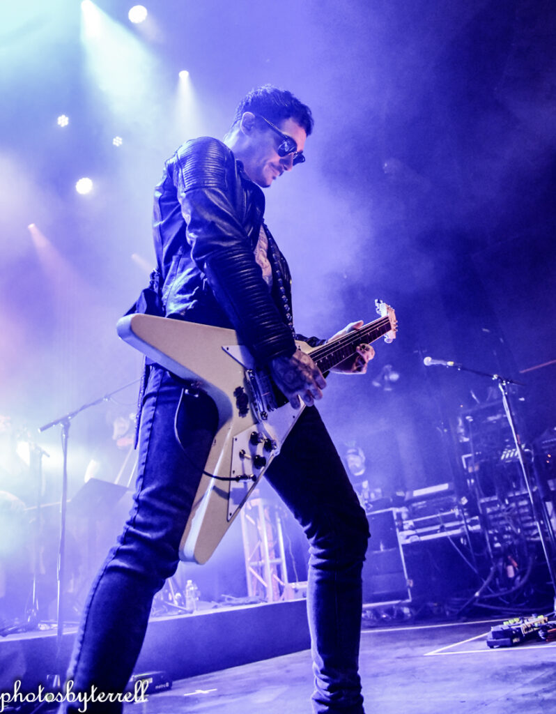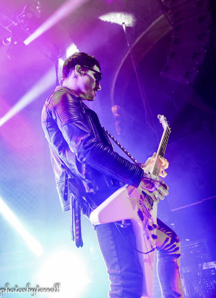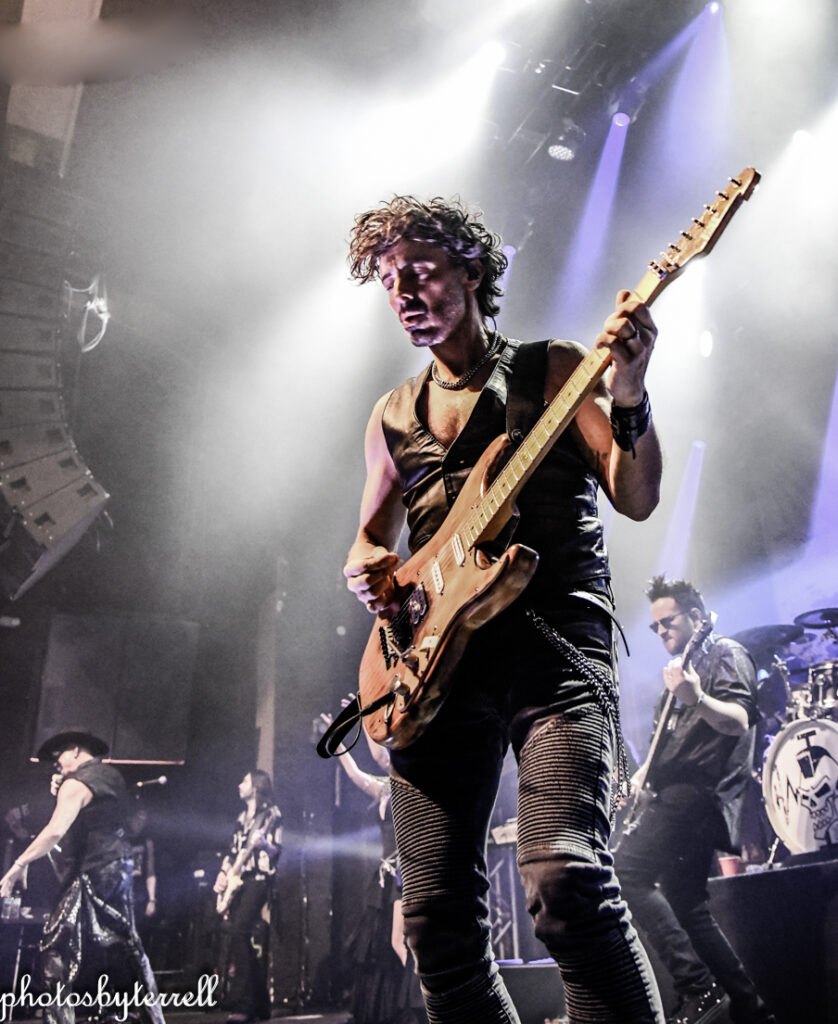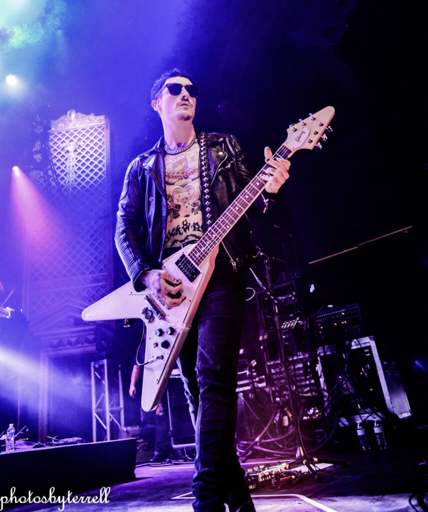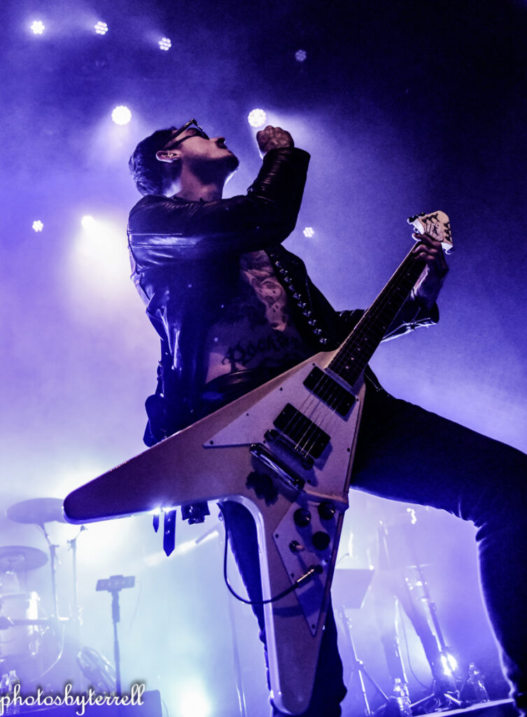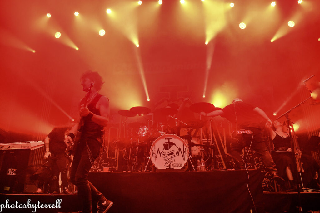 With the stage now set, the clock seemed to slow town. You could feel the anticipation throughout the venue, the fog poured out onto the stage as the wait continued. As the track, “I Remember Now” brought a roar from the crowd as the band members took their place on stage. The guitarists lined up facing the drummer as the fog moved across the stage. And then the explosion into “Anarchy-X”. The guitarists turned and moved to the front of the stage displaying their amazing skills as the crowd was roaring, arms in the air.