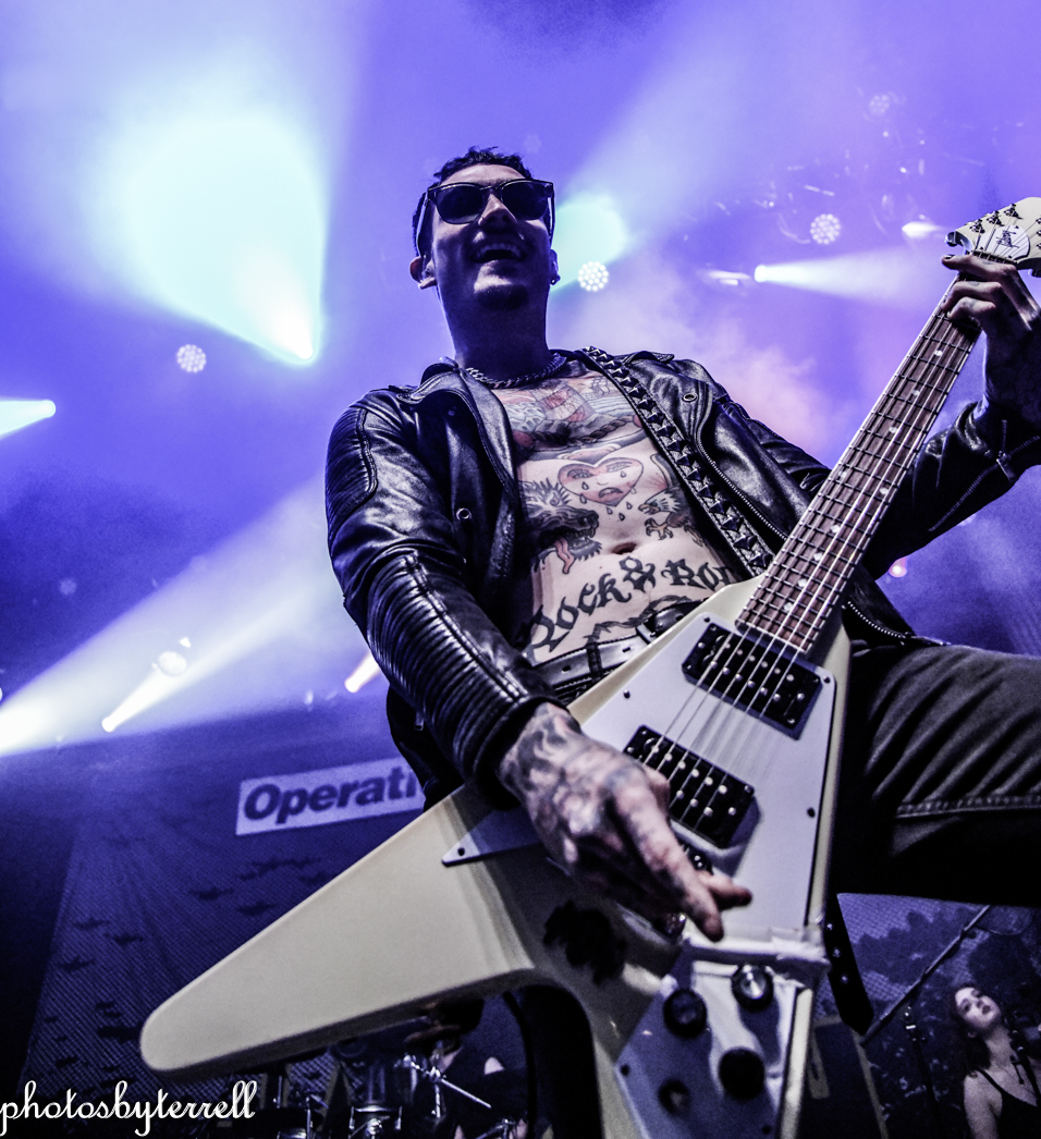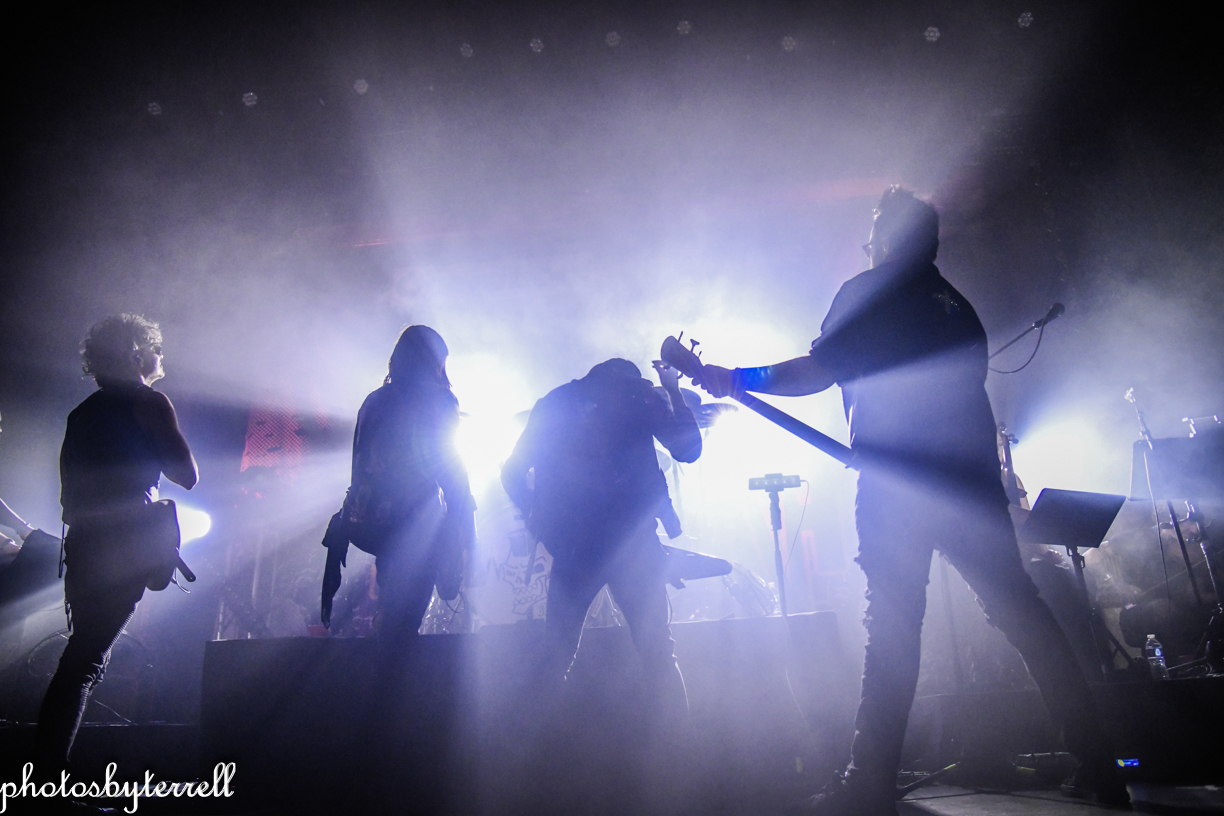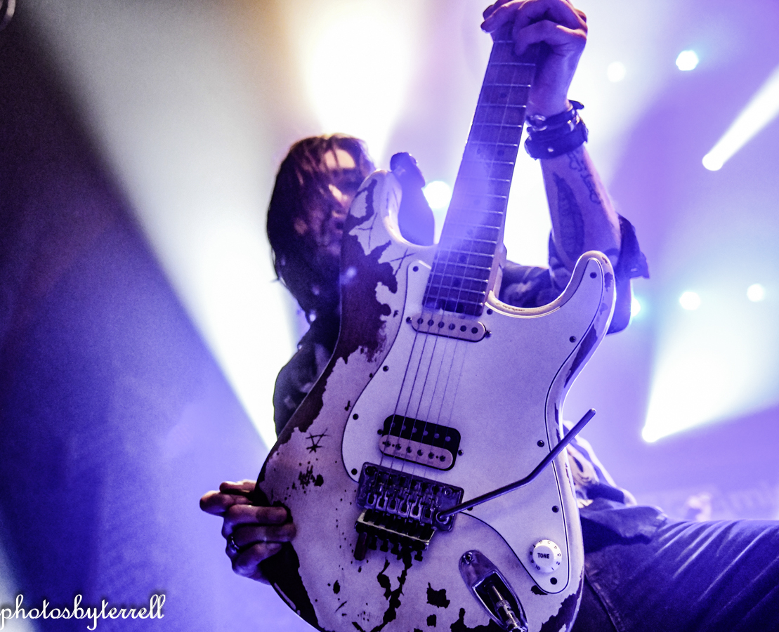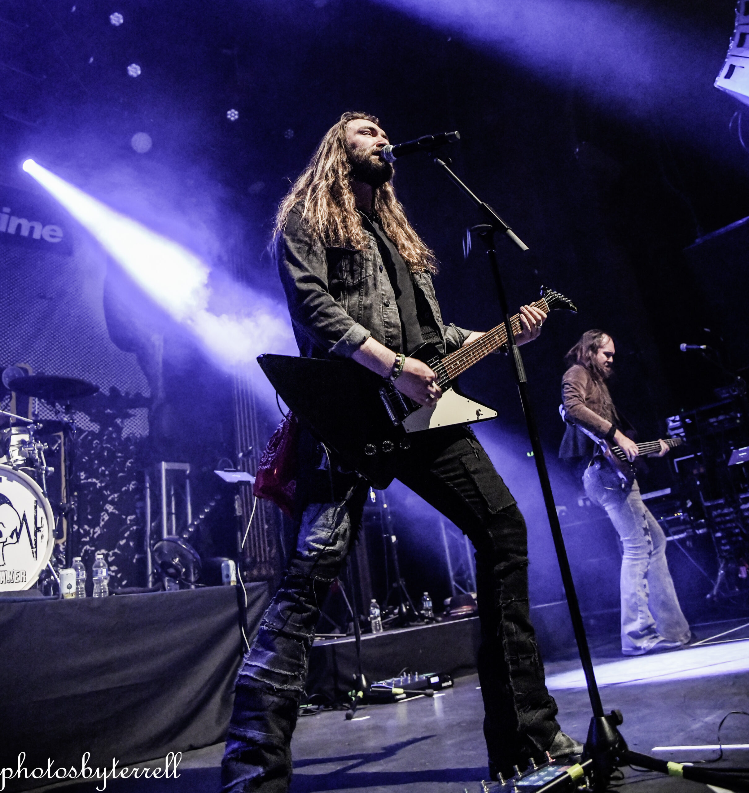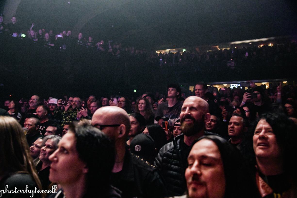 With the stage now set, the clock seemed to slow town. You could feel the anticipation throughout the venue, the fog poured out onto the stage as the wait continued. As the track, “I Remember Now” brought a roar from the crowd as the band members took their place on stage. The guitarists lined up facing the drummer as the fog moved across the stage. And then the explosion into “Anarchy-X”. The guitarists turned and moved to the front of the stage displaying their amazing skills as the crowd was roaring, arms in the air.