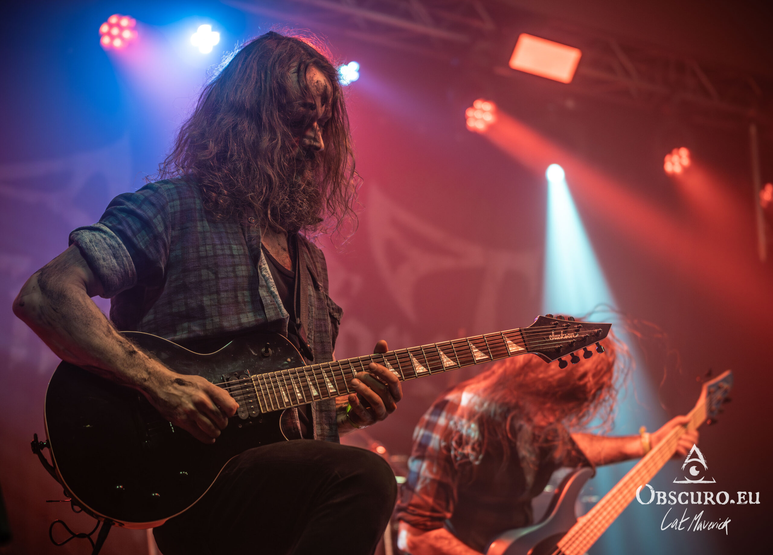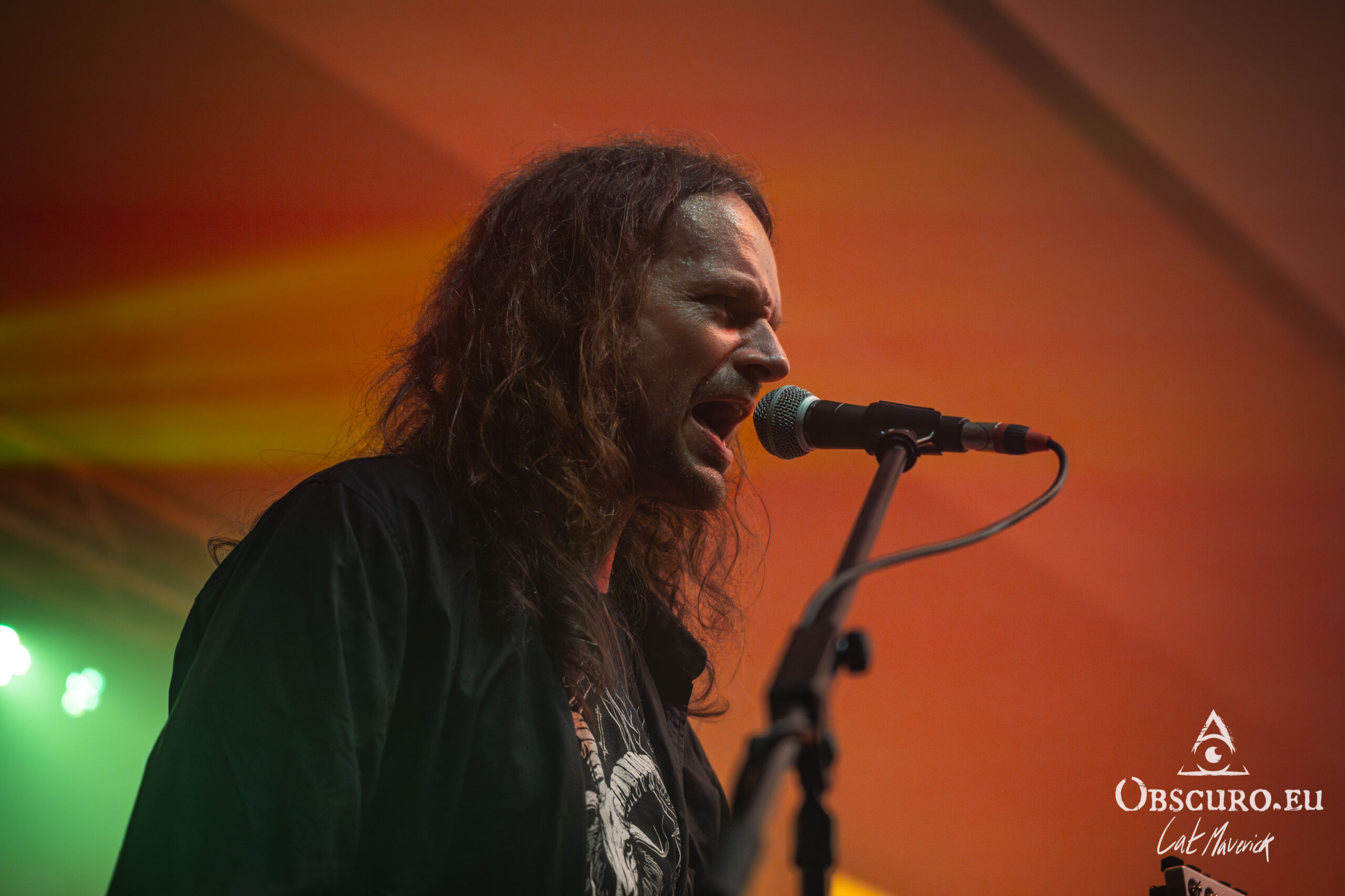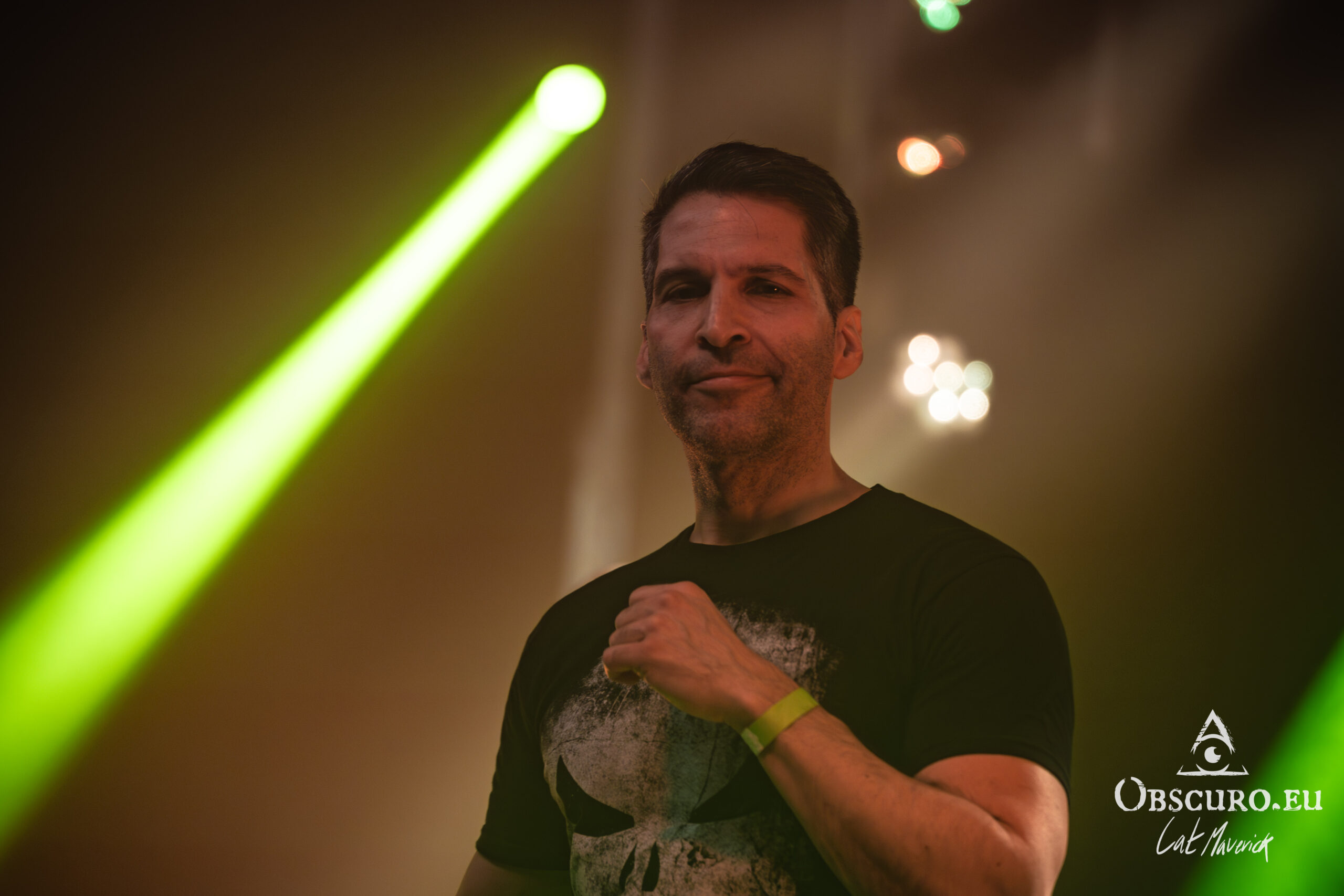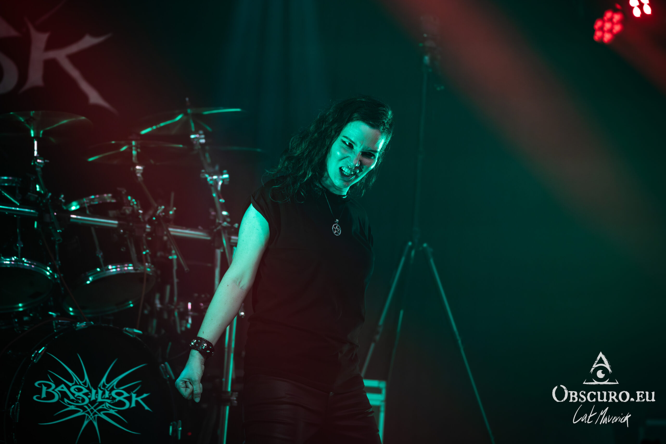 Co-organizer Basilisk follows with their signature mix of hauntingly deep female vocals by Michaela “Ela” Kübler and the guttural growls of keyboardist Thomas “Tommy” Adis. Their set included both German and English songs and even a guest duet with former singer Frank Scheuble. Beyond their music, Basilisk’s presence permeates the event as they tirelessly assist behind the scenes, embodying the local, intimate vibe of Heavy Halloween 2024.
