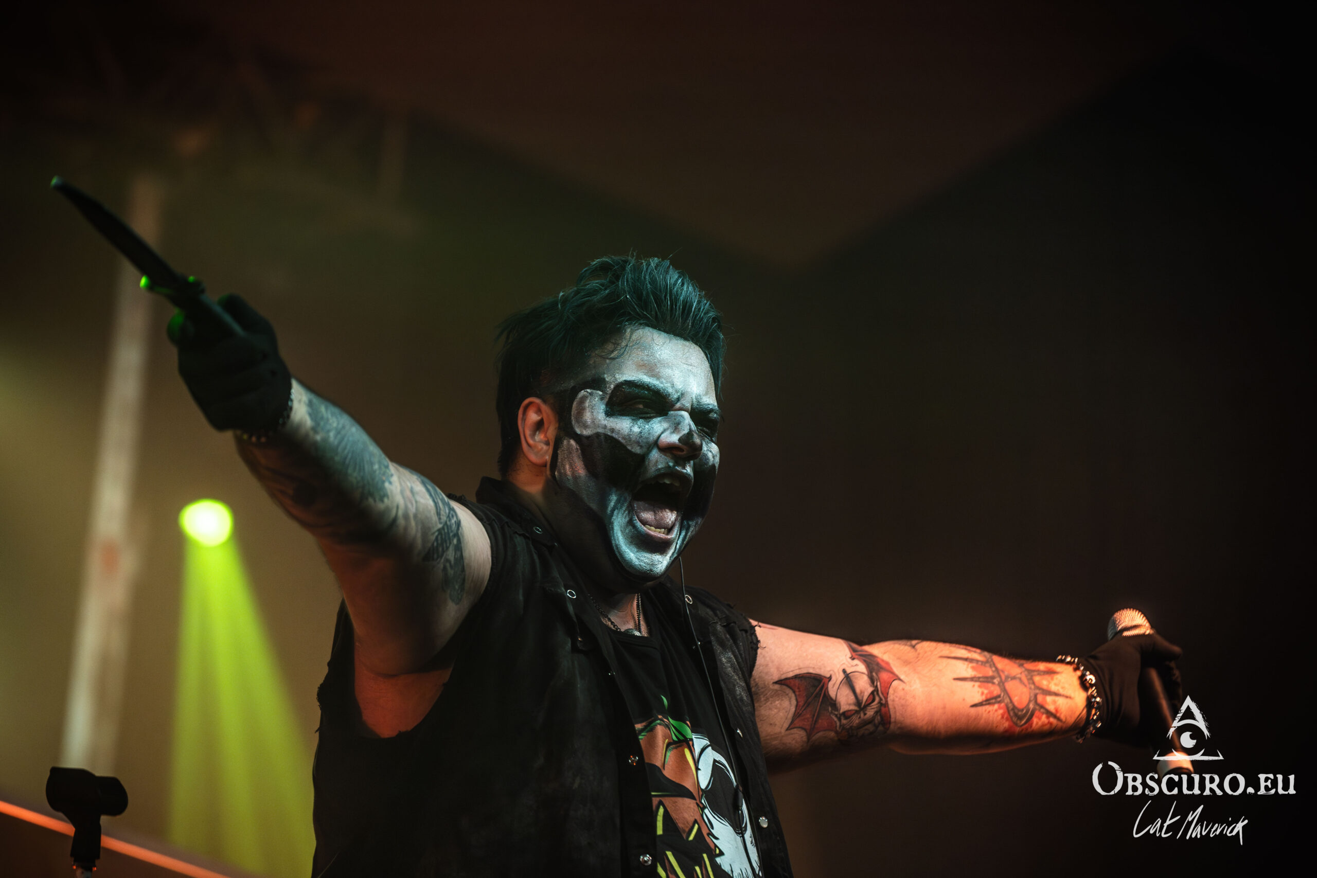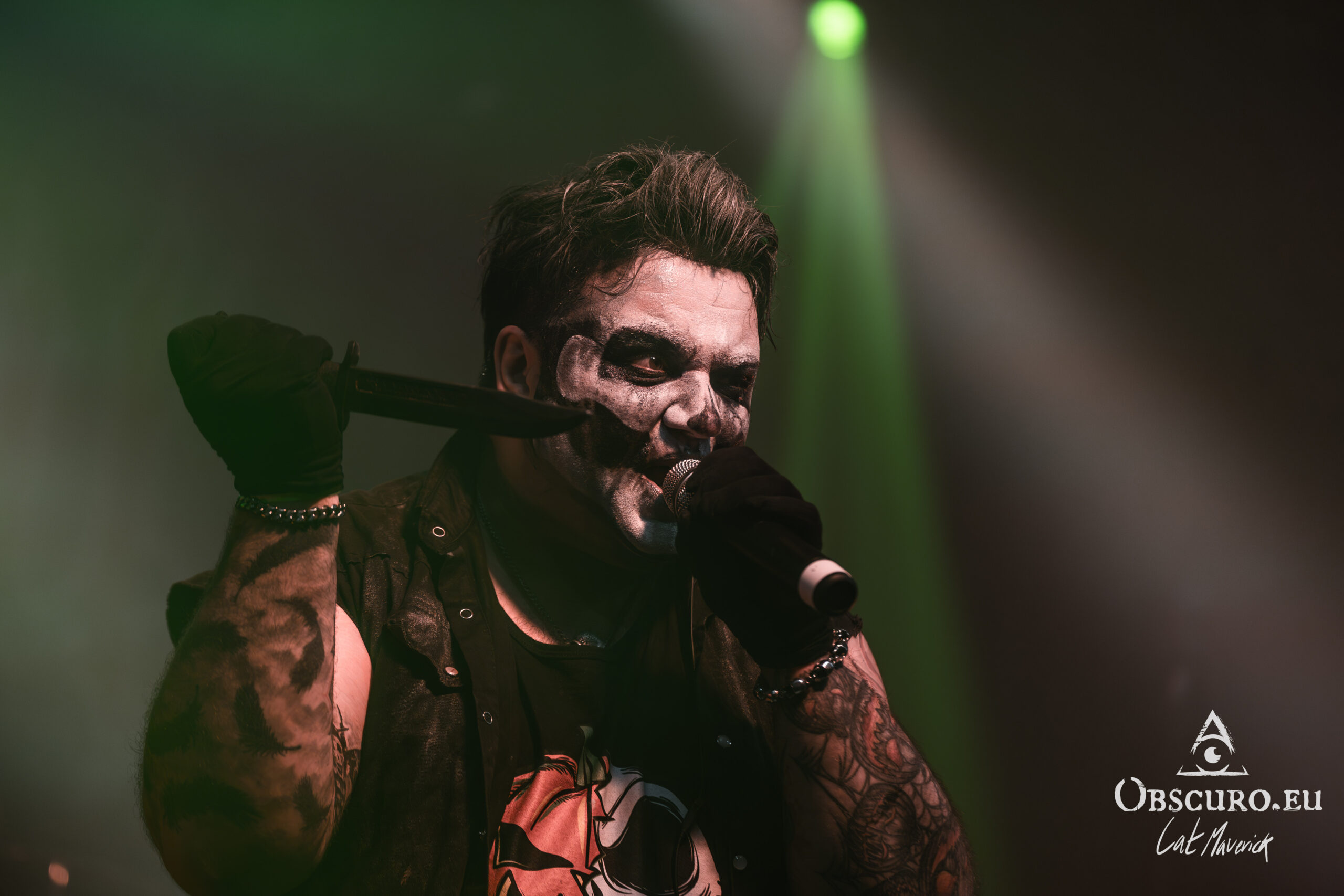 Next, Scarcrow from Donaueschingen channels the spirit of Halloween with theatrical flair. Their set feels like a horror movie brought to life, from Beetlejuice-inspired outfits to haunting skull makeup. The raspy vocals of their frontman echo Lordi and Motörhead, while their crowd interaction—tossing candy to kids—is a heartwarming touch. Songs like “Bat Shit Crazy” and “Welcome To The Family” amp up the spooky ambiance, creating an unforgettable visual and auditory experience.