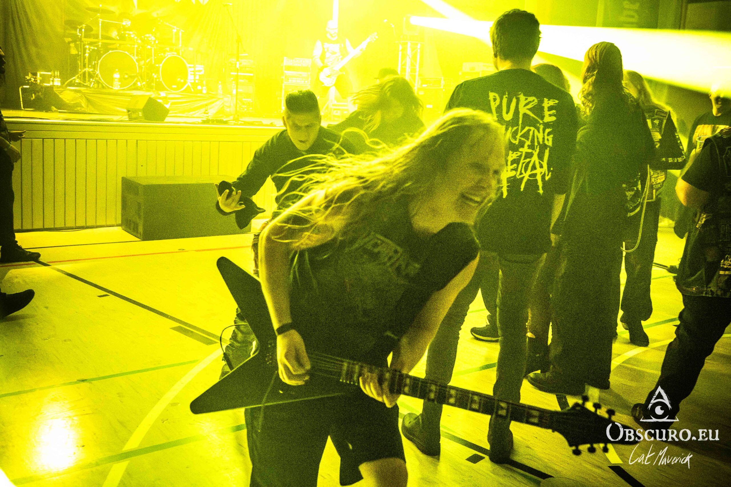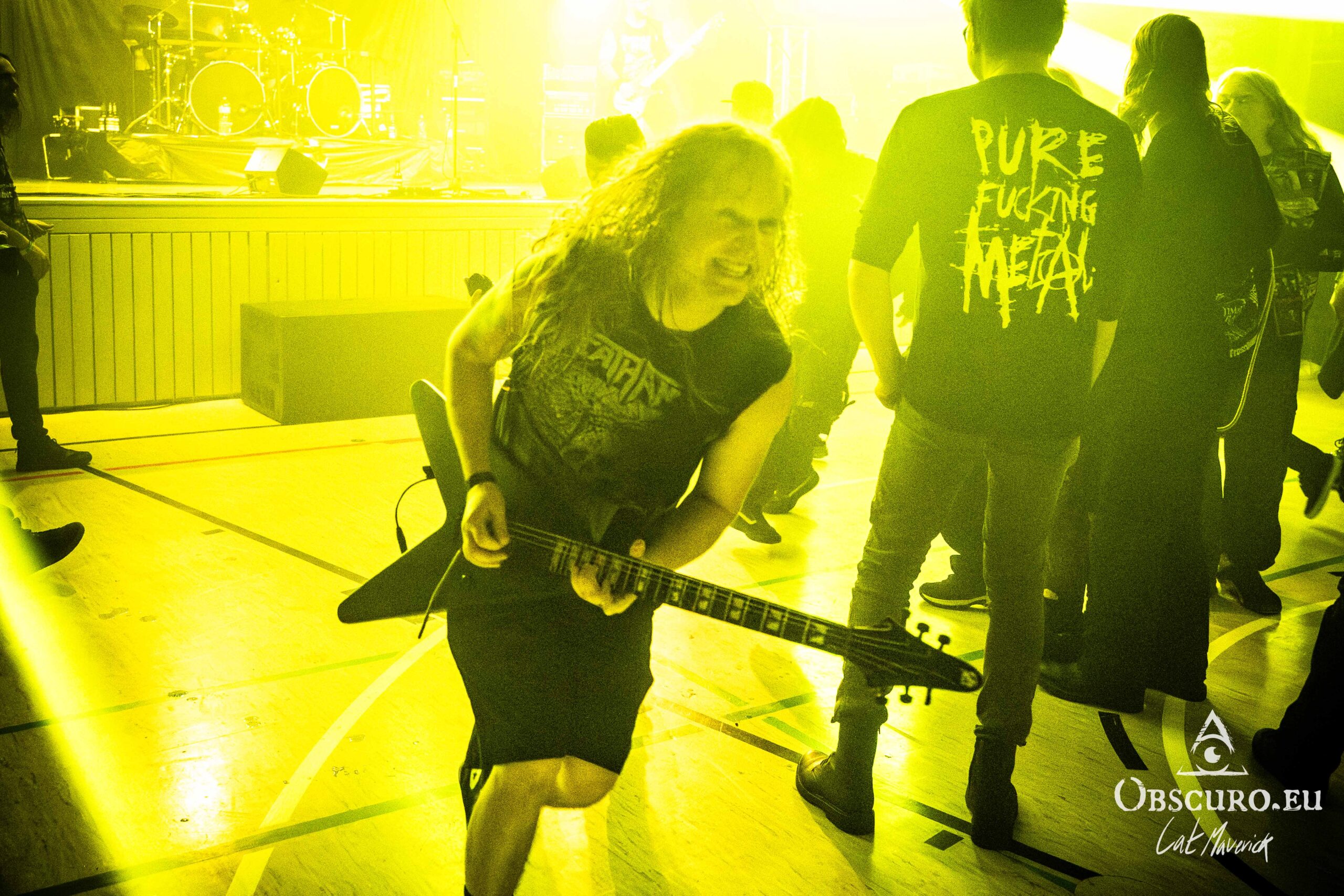 Stepping through the doors, the smell of beer and stage fog hits us instantly — a comforting, familiar welcome. The atmosphere is uniquely “Kirchdorf“: a surreal but perfect mix where denim-clad thrashers headbang alongside locals in full Halloween costume, all under the bright lights of a venue that usually hosts indoor soccer. On It’s loud, it’s sweaty, and it feels like a family reunion where the soundtrack just happens to be heavy metal.