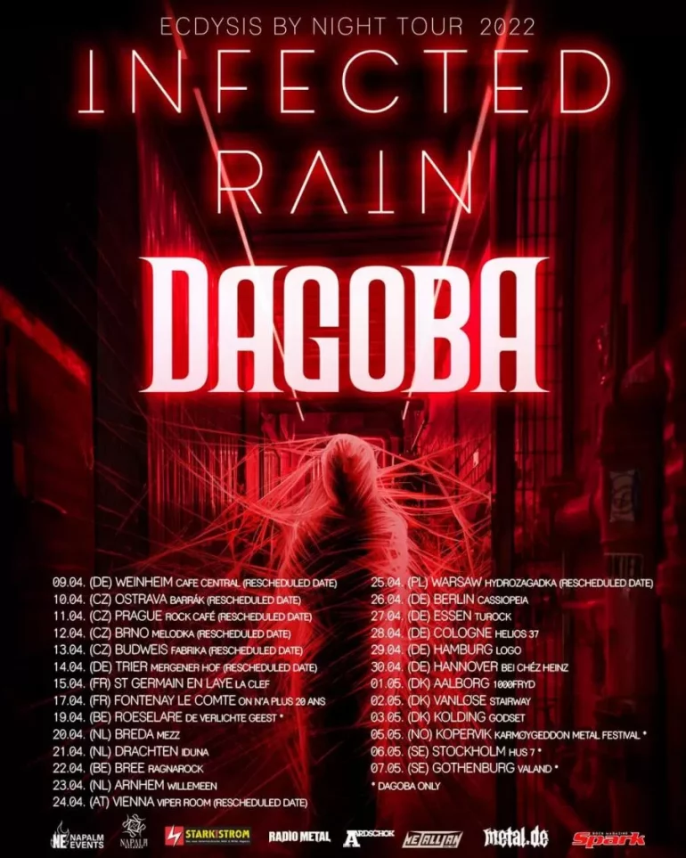 Soon it is time for the second band of the evening, none less than Dagoba. I had them on my “To See-list” for quite a while. Additionally, Jen of Dust In Mind personally recommended them during the interview with me. Being inspired by bands such as Pantera, Machine Head or Fear Factory during their earlier years, Dagoba developed their sound spectrum incorporating more dark, symphonic and industrial elements. The result can hear on their later albums “Black Nova” or the 2022 release “By Night”.