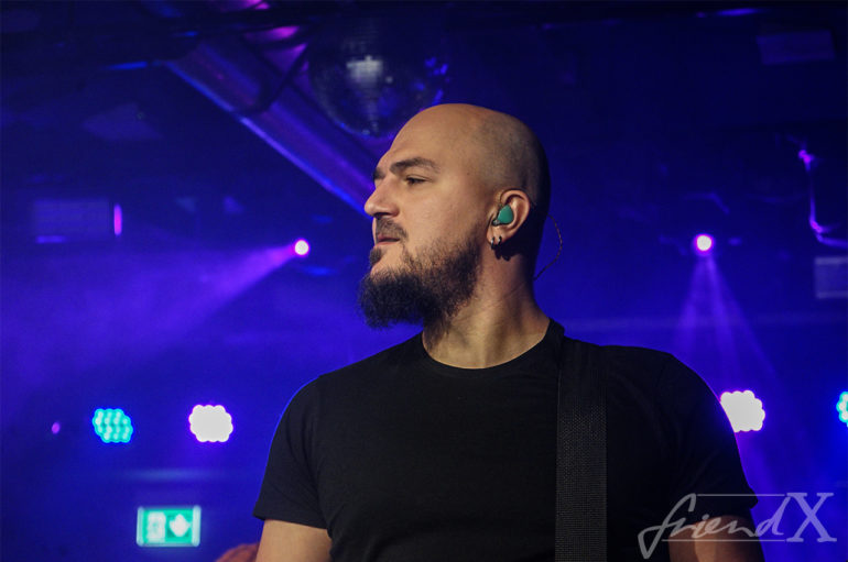 Before the second band of the day I find time to strut around and have a look at the audience. Long haired young metal heads, middle aged silver hairs, men and women, even in business suit make it a cross-section through the generations and society enjoying the metal way of life. I stumble over Simeon Panov. He is a super nice, always friendly guy. I first met him when he was in charge for the sound of Dust In Mind during their tour a month ago. He is the sound wizard of Infected Rain, indeed Dust In Mind wanted him because they were so impressed by him when they toured with Infected Rain. Of course he is busy but nevertheless finds the time for a short talk.