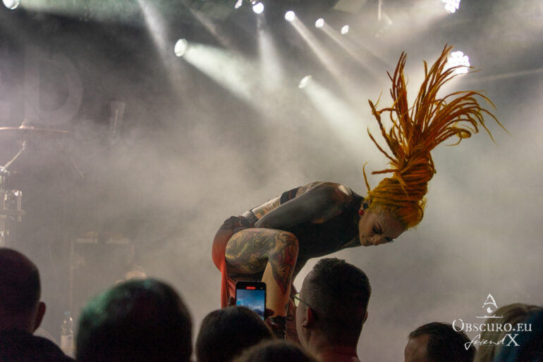 Less than half an hour later it is time for Infected Rain to enter the stage. After the intro they open their show with a song of “Ecdysis”, their release from 2022. By the way, the tour is still going on, so I publish no set-list to avoid spoiling your expectations. But I can guarantee, you will not be disappointed.