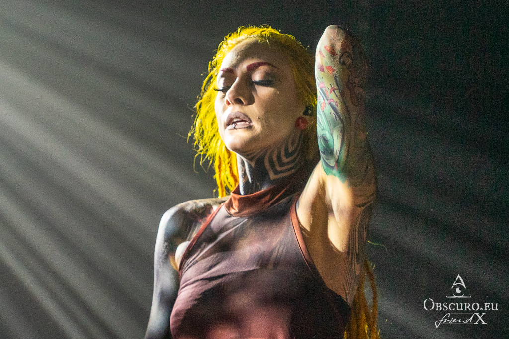 Less than half an hour later it is time for Infected Rain to enter the stage. After the intro they open their show with a song of “Ecdysis”, their release from 2022. By the way, the tour is still going on, so I publish no set-list to avoid spoiling your expectations. But I can guarantee, you will not be disappointed.