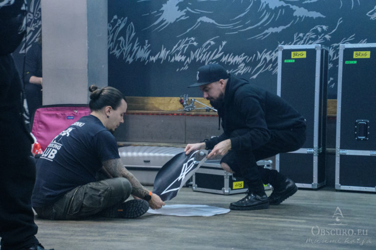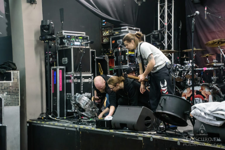 Only minutes before BRHG are to open the show, representatives of Out Of Line music pop up to deliver some additional BRHG merch. A short but warm welcome has to do, a final ‘pit stop’ to wet their long hair and off they go.