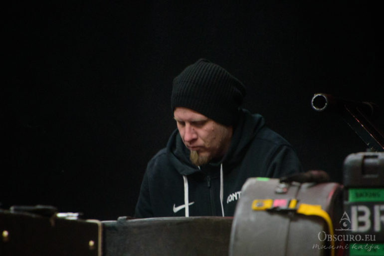 Neither the number of boxes has yet really decreased nor seems the stage much closer to being ready for TK’s sound check. That however should have begun 30 minutes ago. Thus the Frannz crew is getting a tiny little bit nervous. “Shouldn’t the sound check have started?” one of them thinks out loudly. No one replies. Yet, it should. Still no one cares but him. Good news, however, travel on four feet, or climb more precisely the stairs up. The feet in question belong to keyboardist Janne and vocalist Petja. As the stage is nearly set a perfect moment to get up. At least their looks might suggest they have just found way out of their bunks. Interestingly, despite of that they are quite communicative already. Finns and especially Finnish men have the reputation to avoid speaking when possible. The way essential parts of BRHG have defended the backstage couch for the past hour would strongly declares them very Finnish.