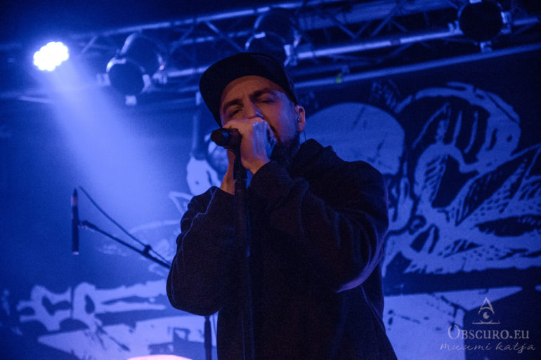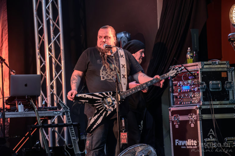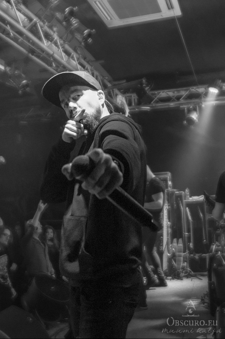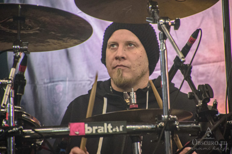 Patrik has been sitting in the gloom at the stage entrance for some time already. He is touring with BRHG as their actual drummer Jarkko Hyvönen fell ill. Patrik is the first to climb on the stage before Jose, Lauri and Joni equipped with their axes follow. With the intro vocalist Jaredi appears on stage too, a wave of enthusiasm roles from the audience to the stage.
