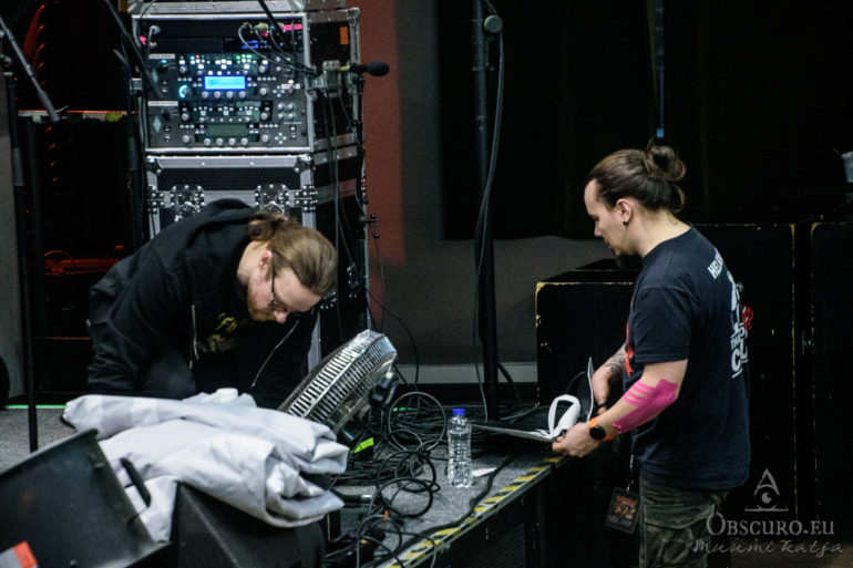 As TK’s vocalist Saku seems to have a moment for a chat, I take my opportunity to ask him about the tour start yesterday in Hamburg. “Everything went really smooth”, he says, adding that it was actually too smooths so now everybody is suspicious. As the afternoon goes by however, we will see that also today things are running as smooth as can be. Saku adds that the Hamburg audience was very welcoming, interactive and decently filling the venue. Today might be different. The legend goes that Berlin is the place in Germany hardest to pull a good crowd. We shall see …