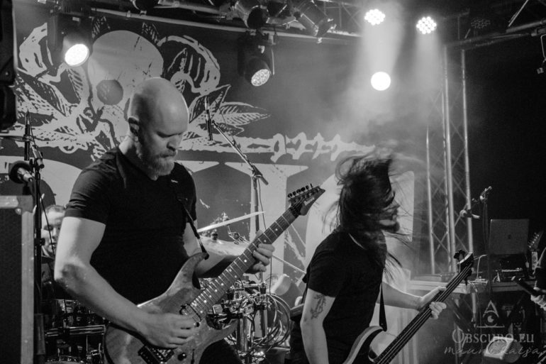 Frenzy rules soon. The crowd is enthusiastic which fuels the musicians. That again enrages the audience even more. Heavy partying, highly active, moshing, banging, jumping. For a moment I wonder if we might have slipped through a magic portal to find ourselves in metal heaven. But if so the entire club has been moved there. Within two songs the air is saturated with sweat and adrenaline.