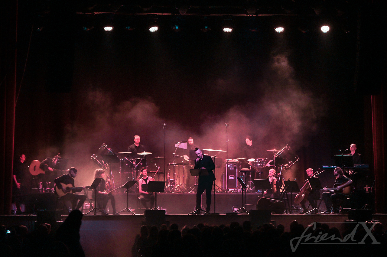 Most songs are more or less well known from the three Swan Songs releases but still sound different, some are rearranged for the Ensemble Tour. Real live instruments of a classical ensemble! No electric guitar or bass but cello and violin rule over the stage. Chris’ remarkable baritone fits in well. Between the songs he is more than happy to talk with the audience. He sadly must report about the Covid19 related dropping out of Corvin on organ, harpsichord, and celeste, which would be an essential part of the music and must now be played by computer, because there is no substitute musician possible. For the same reason Lennard who usually films TV Of The Lost had to cancel his participation but could be replaced.