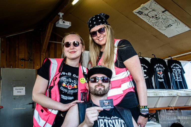Since the first M.I.S.E. Open Air back in 2013, eight more followed. It was a practically a twin birth, that of the M.I.S.E. Heavy Metal Club e.V. and its sibling, the M.I.S.E. Open Air. In case you wonder, no one needs a legal association (e.V.) to meet, enjoy metal or host parties. Running a full-scale festival, however, is another piece of cake. A bunch of metal-loving kids has met here for way before, I hear. “I was sixteen, when I first came here”, Obelix says, “last summer I turned fourty.” Zonk only drops incidental: “I’ve been here since the second M:O:A. I didn’t notice the first one because I wasn’t in the club then, but since the second time I’ve been a full member.” Michelle and Romina count their festival ribbons. “We have eight. In the first year, we had none.” Thus, Michelle has come here from M:O:A day one on and Romina concludes, she has come since 2015. Most people, I speak with, have come here for numerous years at least which leaves Deniz a newbie, working here only the second time.