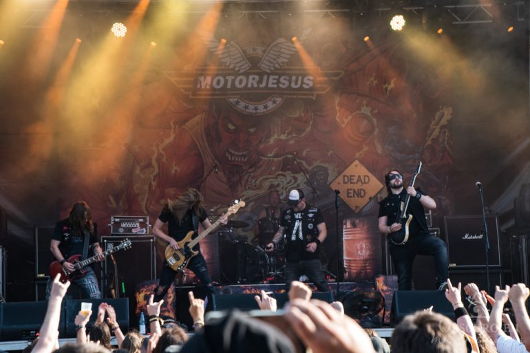 Michelle’s hug from Tankard’s Gerre shows that the great atmosphere is not limited to the crew running the festival and the visitors in the pit. Artists feeling appreciated by their hosts may be a factor often underestimated. When budgets get tighter on either side, bands might favour travelling short distances and a welcoming host over big festival names in far-and-away locations. Quality does not depend on business terms. Professionality is rather an attitude than a matter of accounting. Passion and devotion easily outrun stiff rules of business if there is no personal spirit engaged.