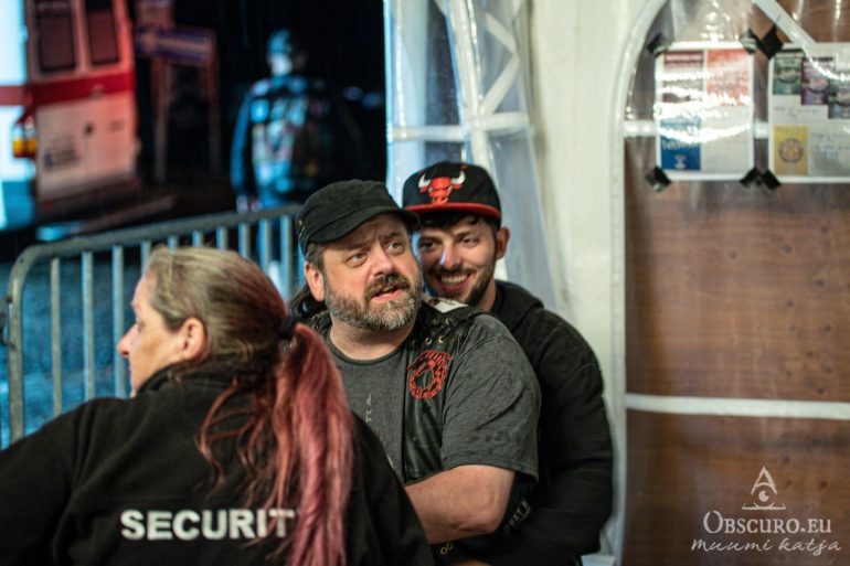 As Marco is too busy running for an interview, I stop by at the back office. The result is pretty much the same. The Busy Bee has hardly a chance to go to the loo next to managing accreditations, seeing bands to their backstage areas and taking care of all the other questions addressed to her. I overhear two crew members discussing if one of them can stay at the office while the actual queen of the realm would attend to her privacies for five minutes. Not a chance. “Off you go. You’re late, too. Look, I have a key and I am willing to use it. It’s as simple as this: Whoever wants something will have to wait”, she calls over than looking at me. Time to speak? Not a chance either.