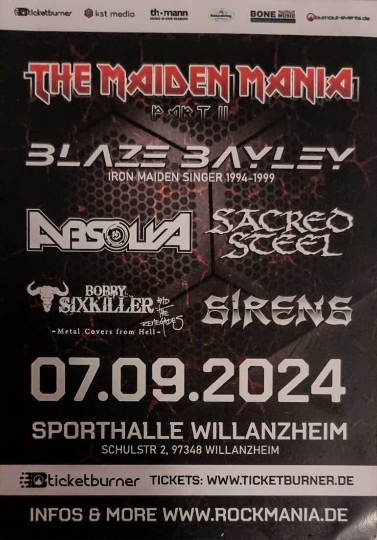 Sirens * Absolva * Blaze Bayley * Sacred Steel * Bobby Sixkiller and the Renegades