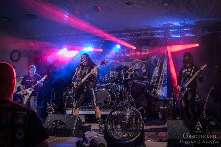 Who could have thought that a September evening in the middle of Germany would still come in subtropical conditions? Even as ABSOLVA took over at 21:00h, outside the temperature was at 28°C. The gym turned into a Roman steam bath fuelled by finest heavy metal made in the UK. ABSOLVA were fantastic. Their music goes direct to the heart, their spirit and chemistry are rousing, and their energy seems unlimited. Their headlining tour is about to start and their show in Willanzheim declared it a must-go (check out their tour dates here)!