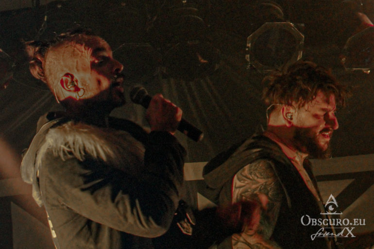 Before the thick air chops off my head, I catch some fresh air outside. Desperately needed! Then it is time for the main act tonight. I already had the pleasure to enjoy Manntra as support of Mono Inc. in spring this year. The nearly finished tour is their first as headliner in Germany. As the previous band Manntra make use of an additional musician, the masked guitarist. So again five musicians share the small stage. Manntra open their set with “Heathens”. Of course Manntra present the songs of their recent album Kreatura as “Tanz” or “Königsmord”, wasn’t there something with chopping heads off during Storm Seeker’s set? Well, not only pirates might have lost their heads but some kings in England and France too. “Not Guilty” turns into an anti-war song and is dedicated to peace in the world. No more war!