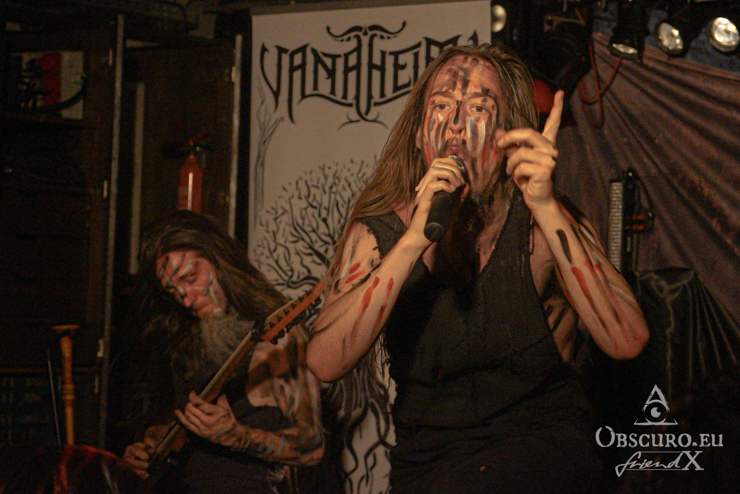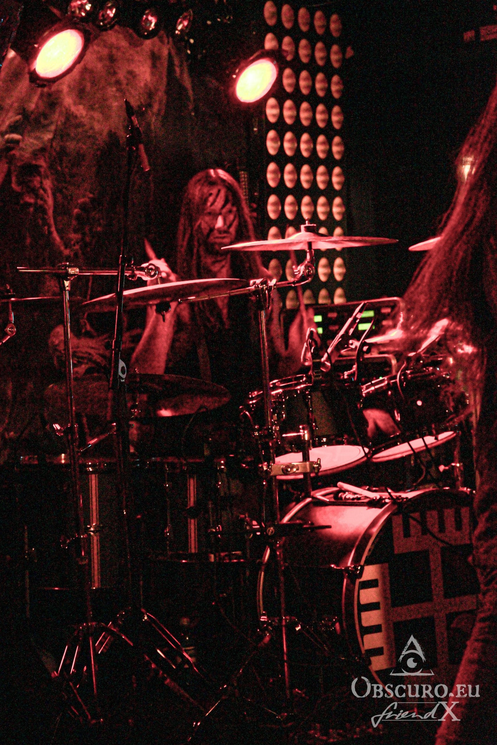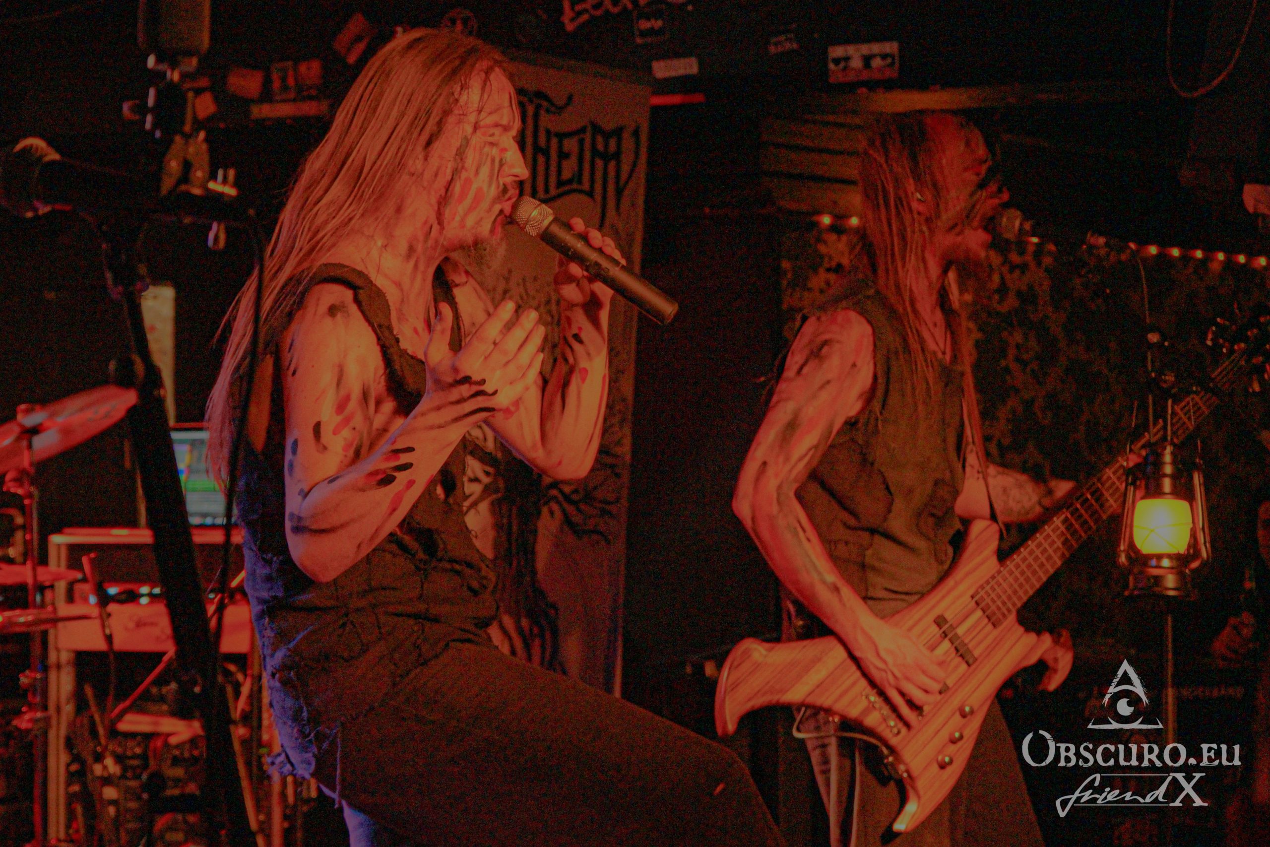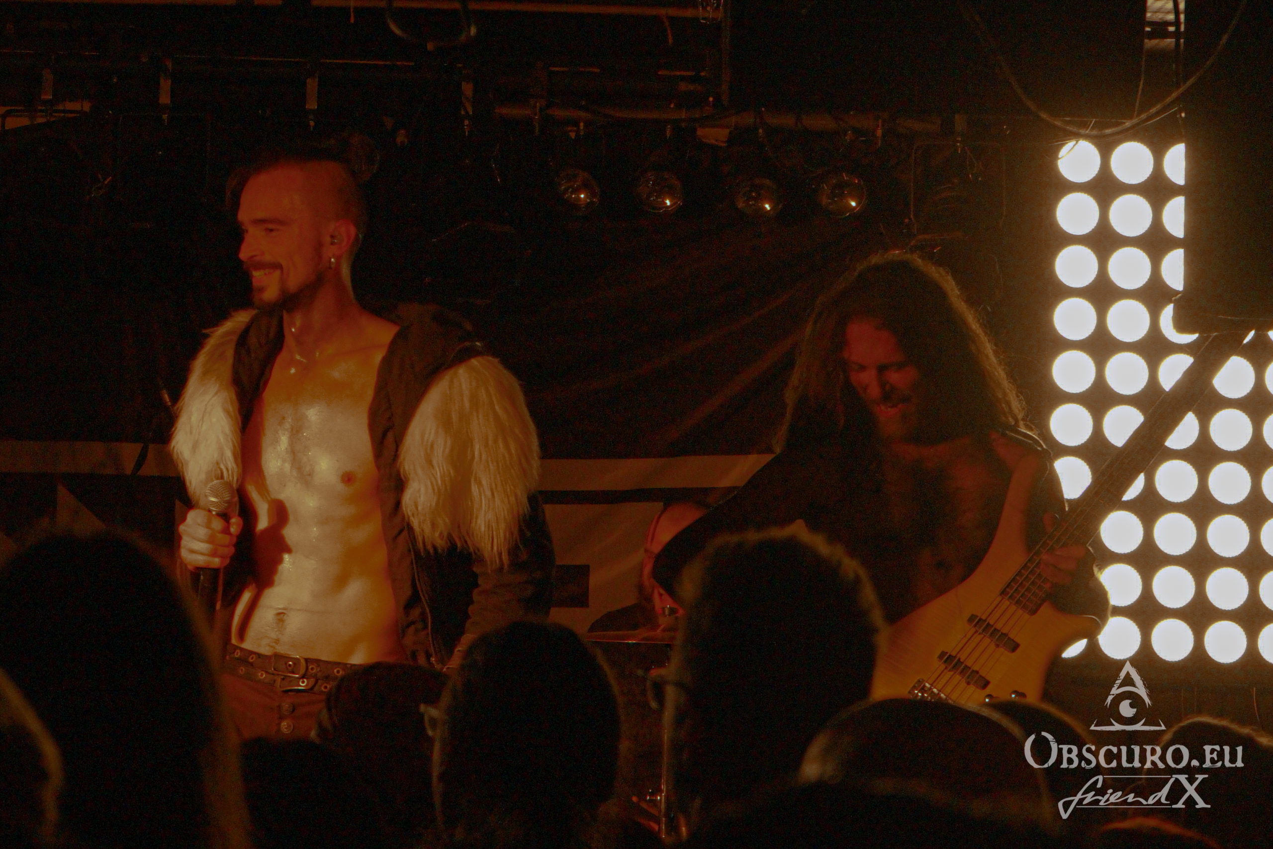 I’m still right in time for the official beginning at 19:00 nevertheless Vanaheim started playing far earlier. So I miss a good part of their slot but what I experience is promising. The Dutch four-piece band describes itself as pagan/folk metal which mixes raging primal violence alternates with danceable, heavy and uplifting melodies. Like it or not but Vanahaeim’s recipe of pagan plus catchy folk makes you want to move! And that is exactly what we can enjoy tonight. Surprisingly, rather the air condition than Vanaheim is to blame for Roman spa-like atmosphere in front of the stage. But once your virtual machete cut a way through the thick air you can have a beer at the fridge-cold bar.