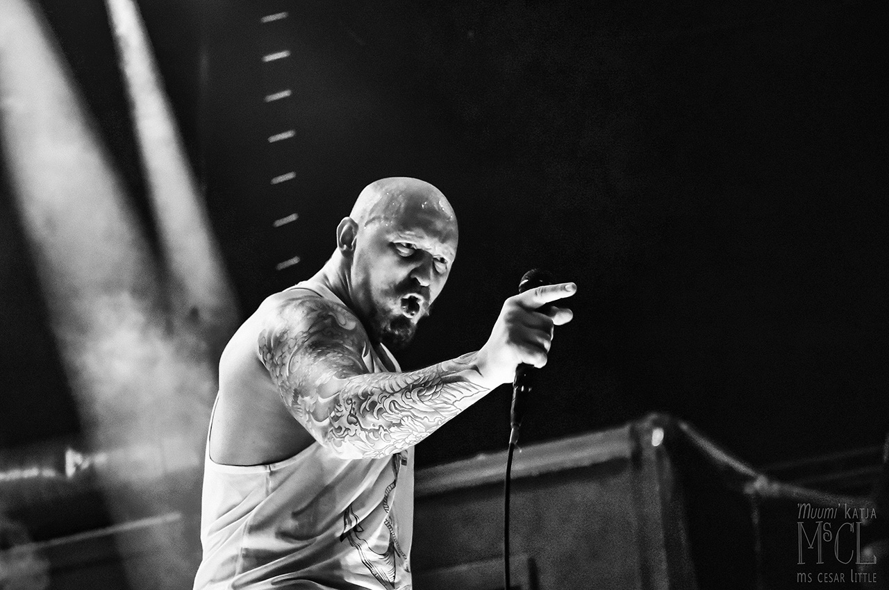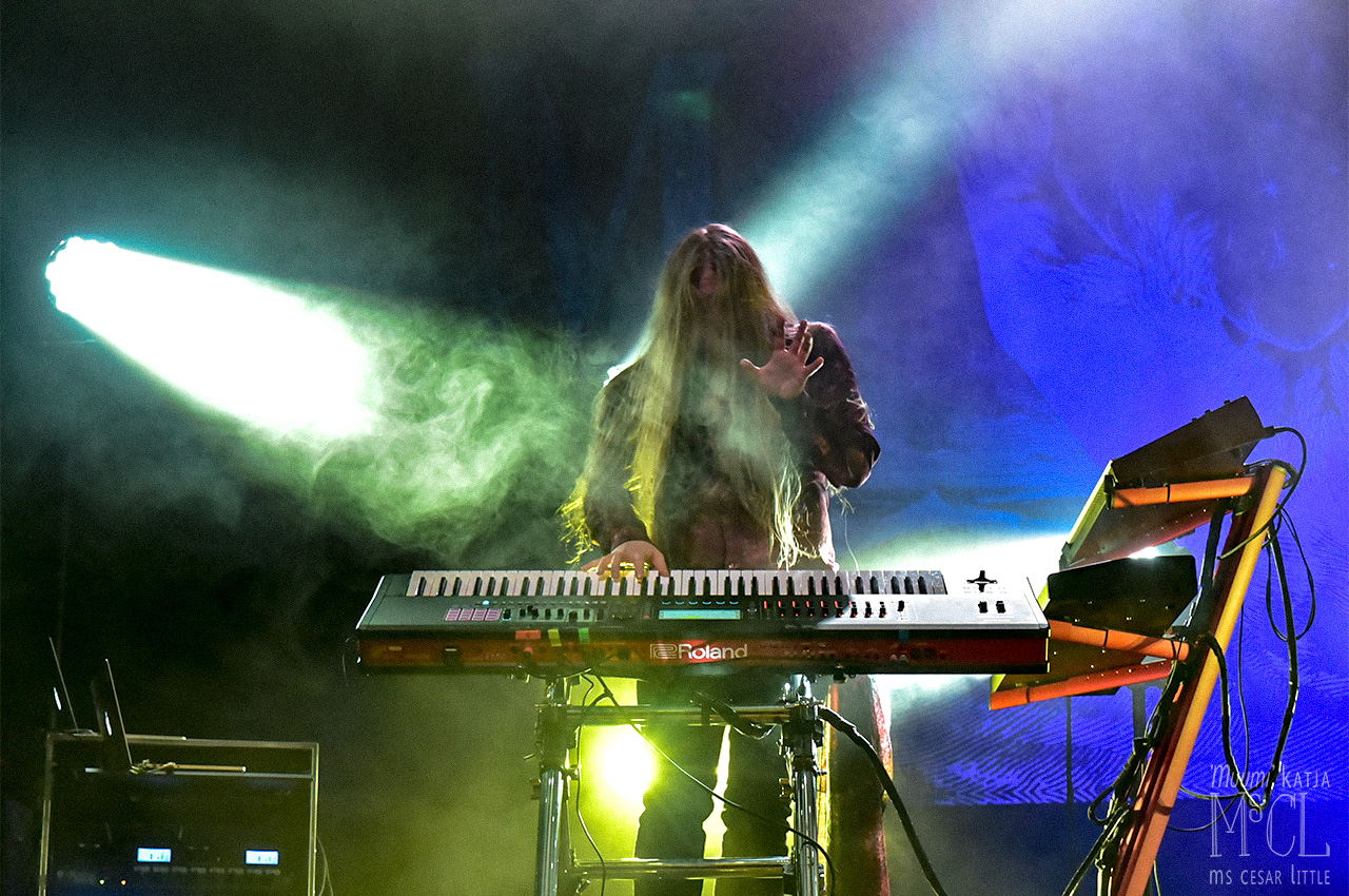 Marko said in our interview that he was beyond metal nowadays, that metal was more sort of his basis, what he has come from. Listening to the “Pyre Of The Black Heart” album, matches these words. But what the audience get in Z7 tonight is metal – musically as much as spirit-wise. He loves to perform – very obviously they all do. He loves to be on stage. And as he is on stage now, metal is pouring out of every cell of his body while he wields the bass strings and shatters glass with his voice. “I am The Way” offers quite some opportunities to experience this full power of Marko’s voice which is a unique sensation, all the more if you open yourself to this massive flow of energy .