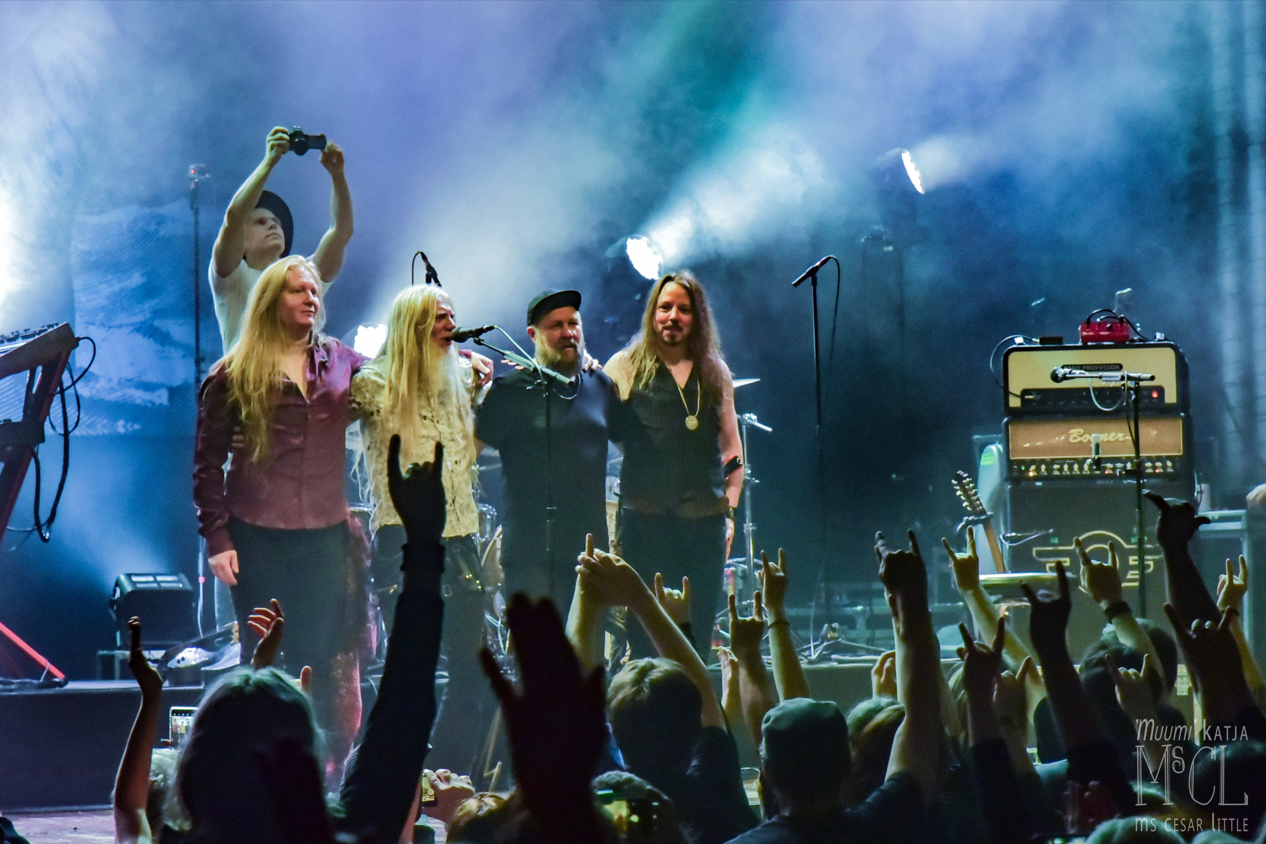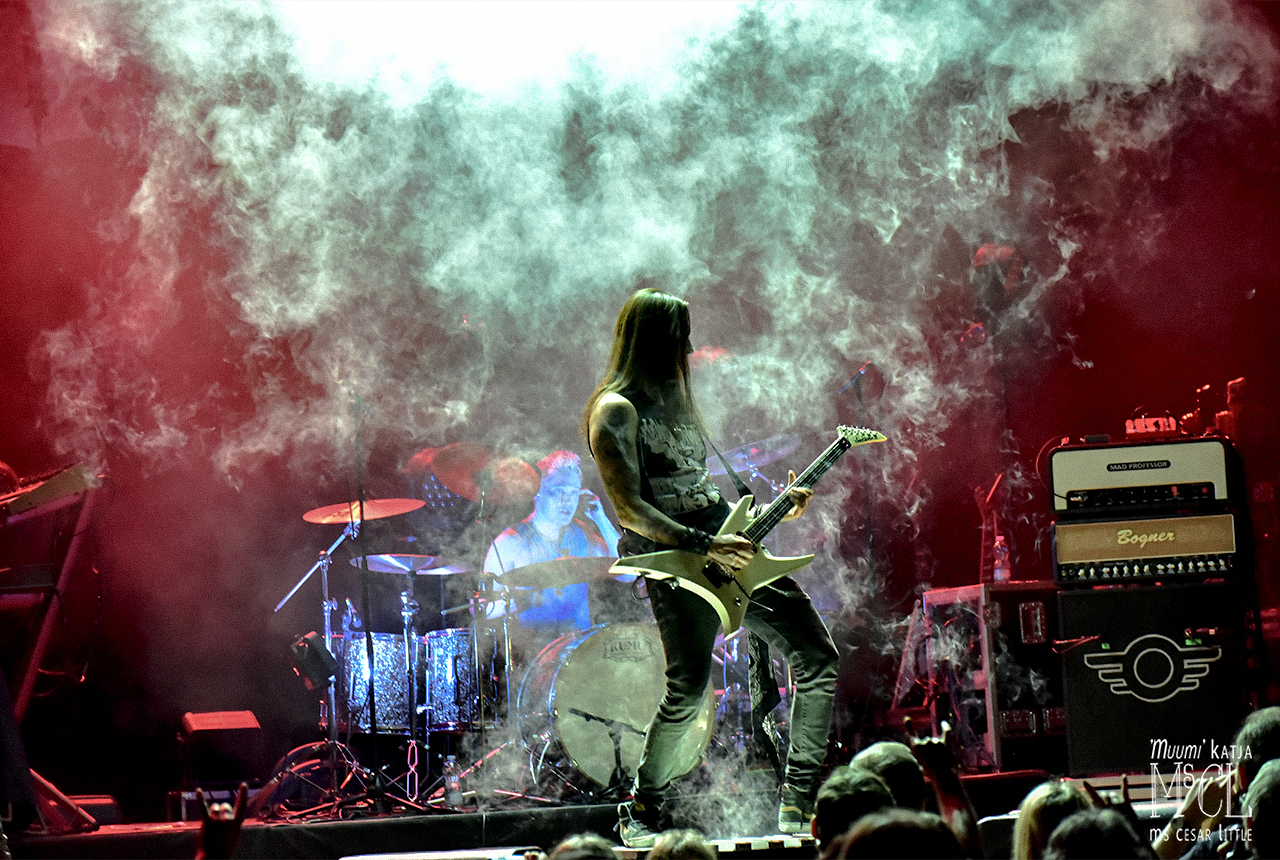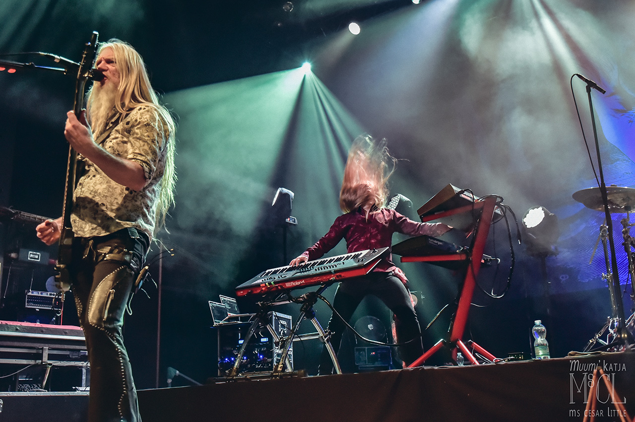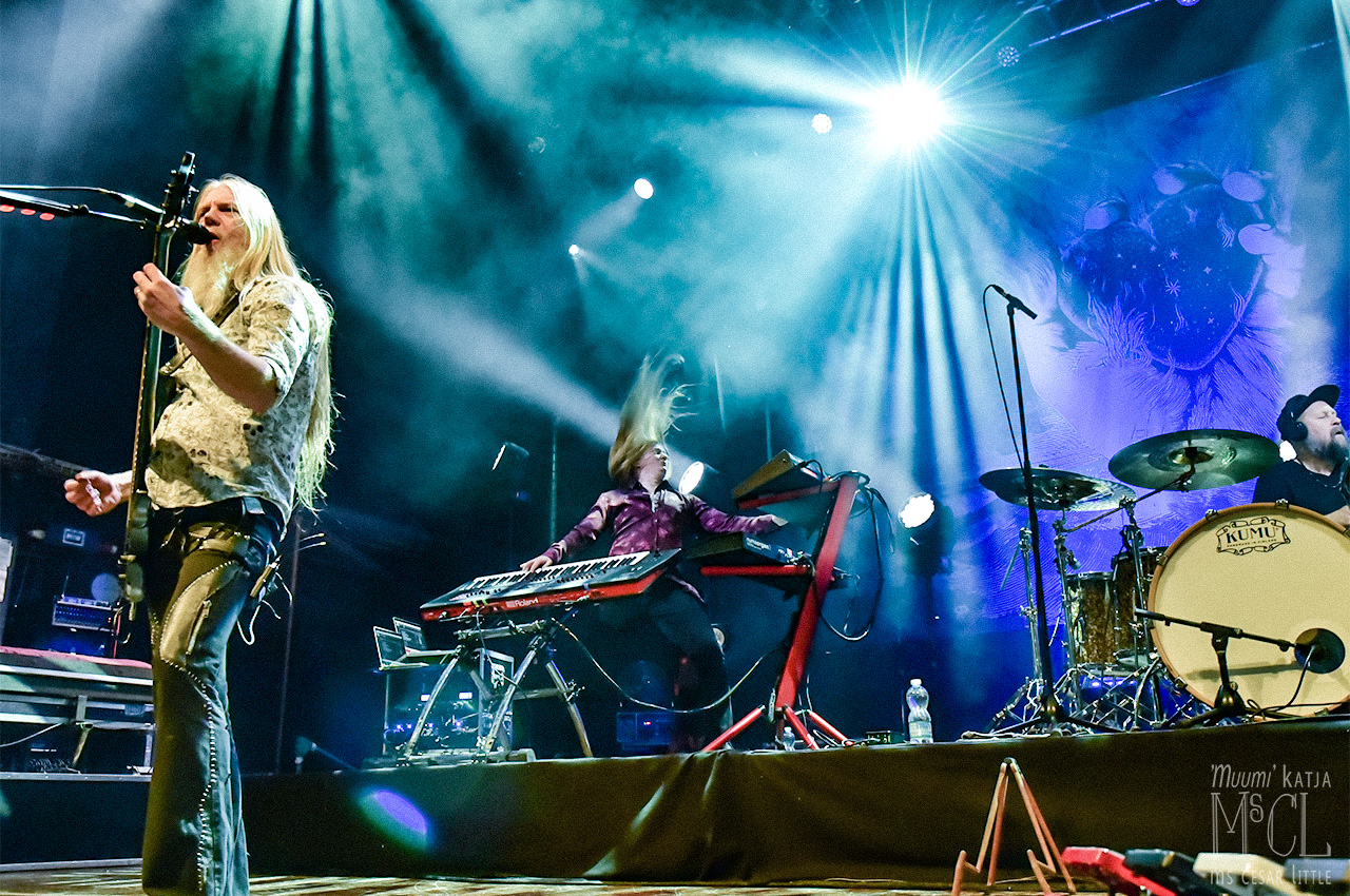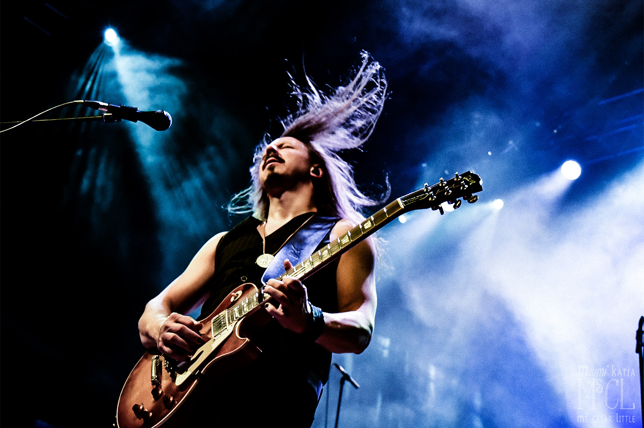 Marko Hietala’s history with Anssi Nykänen, Tuomas Wäinölä and Vili Robert Ollila goes many years back. Tuomas and Vili have been with him in Raskasta Joulua for well over one decade and played some of the few Northern Kings’ gigs, too – unforgettable show acts, both! Tuomas is a one of these string wizards who simply ignores the term “genre” although he might have a focus on metal, rock and jazz. He also sings, such as when touring with his former band mate Timo Kotipelto (Stratovarius) as acoustic duo – simply breath-taking, by the way. Vili is no less of a witchmaster at the keys (although more active behind the curtain) or as Marko put it that night: captain of the Enterprise, the keyboards being his command station. I have always wondered how he can play with his massive hair flying all over and then – this without hitting his forehead on his instruments! His dedication is overwhelming and compared to him, Marko and even Anssi, the drummer, appear sort of static on stage. Anssi Nykänen (formerly also playing with Raskasta Joulua and Timo Kotipelto) makes the beating heart of the show. In a most impressive solo, he finds the space to prove himself and to receive the crowd’s thundering enthusiasm as he deserves!